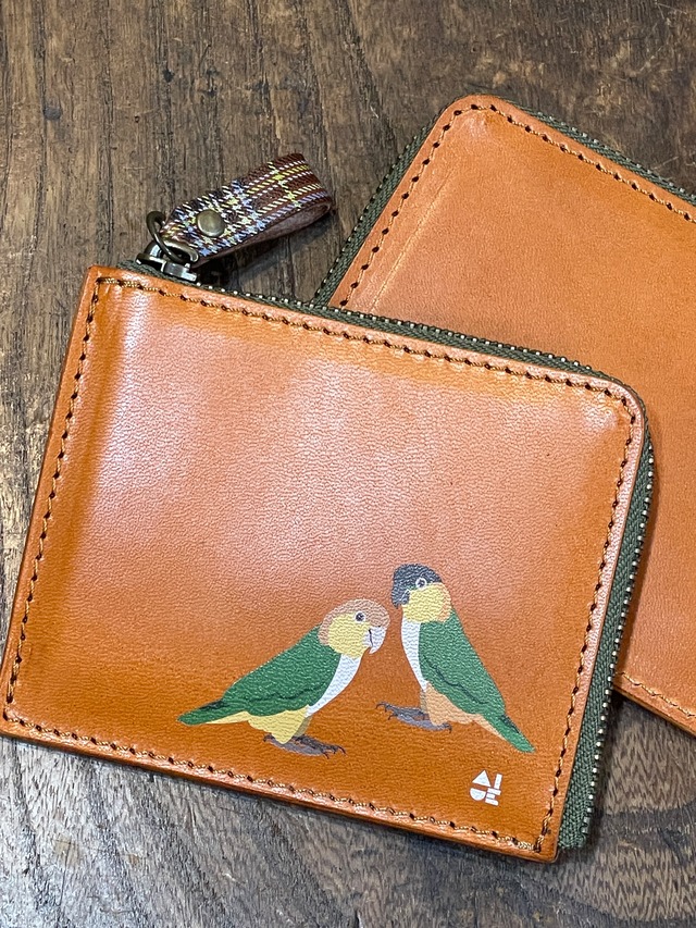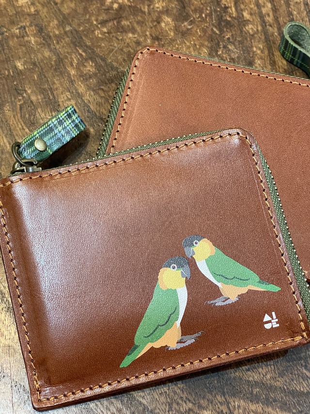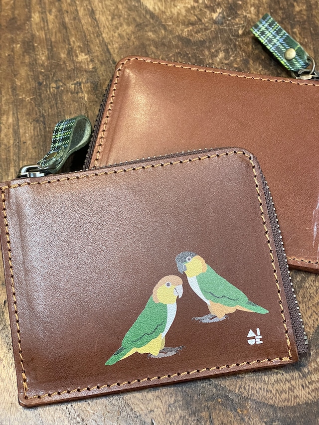 【送料無料】 L字ファスナー財布 ブラウン ズグロシロハラインコ 2羽 Brown 財布 ずぐろしろはらいんこ 栃木レザー
