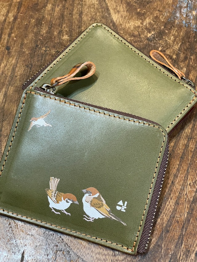 【送料無料】 L字ファスナー財布 グリーン スズメ 財布 すずめ 雀 栃木レザー