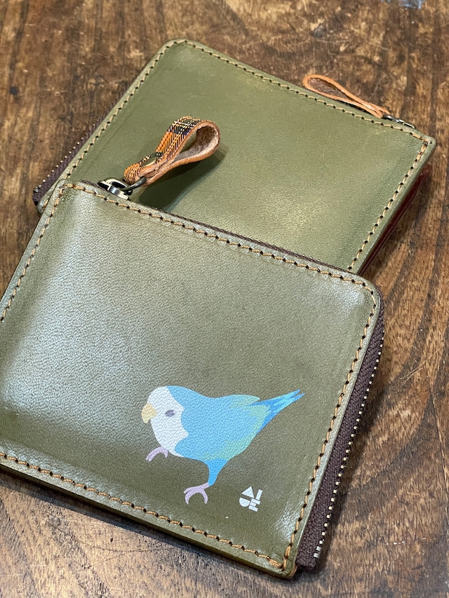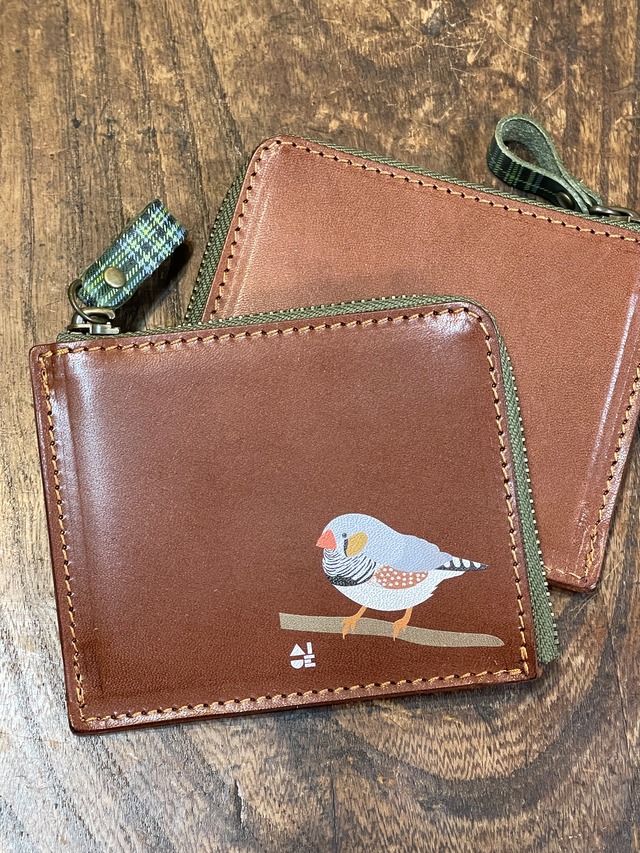 【送料無料】 L字ファスナー財布 ブラウン シロハラインコ 2羽 Brown 財布 しろはらいんこ 栃木レザー