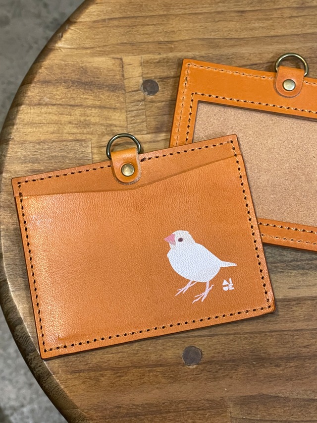 IDカードホルダー いっぱいの文鳥 キャメル (ストラップなし) ぶんちょう ブンチョウ 文鳥 栃木レザー