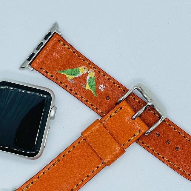 Apple Watch バンド シロハラインコ × ズグロシロハラインコ キャメル CAMEL アップルウォッチバンド 時計ベルト AppleWatch 対応 バンド シリーズ9 SE2023 8 SE2 7 6 SE 5 4 3 2 1に対応