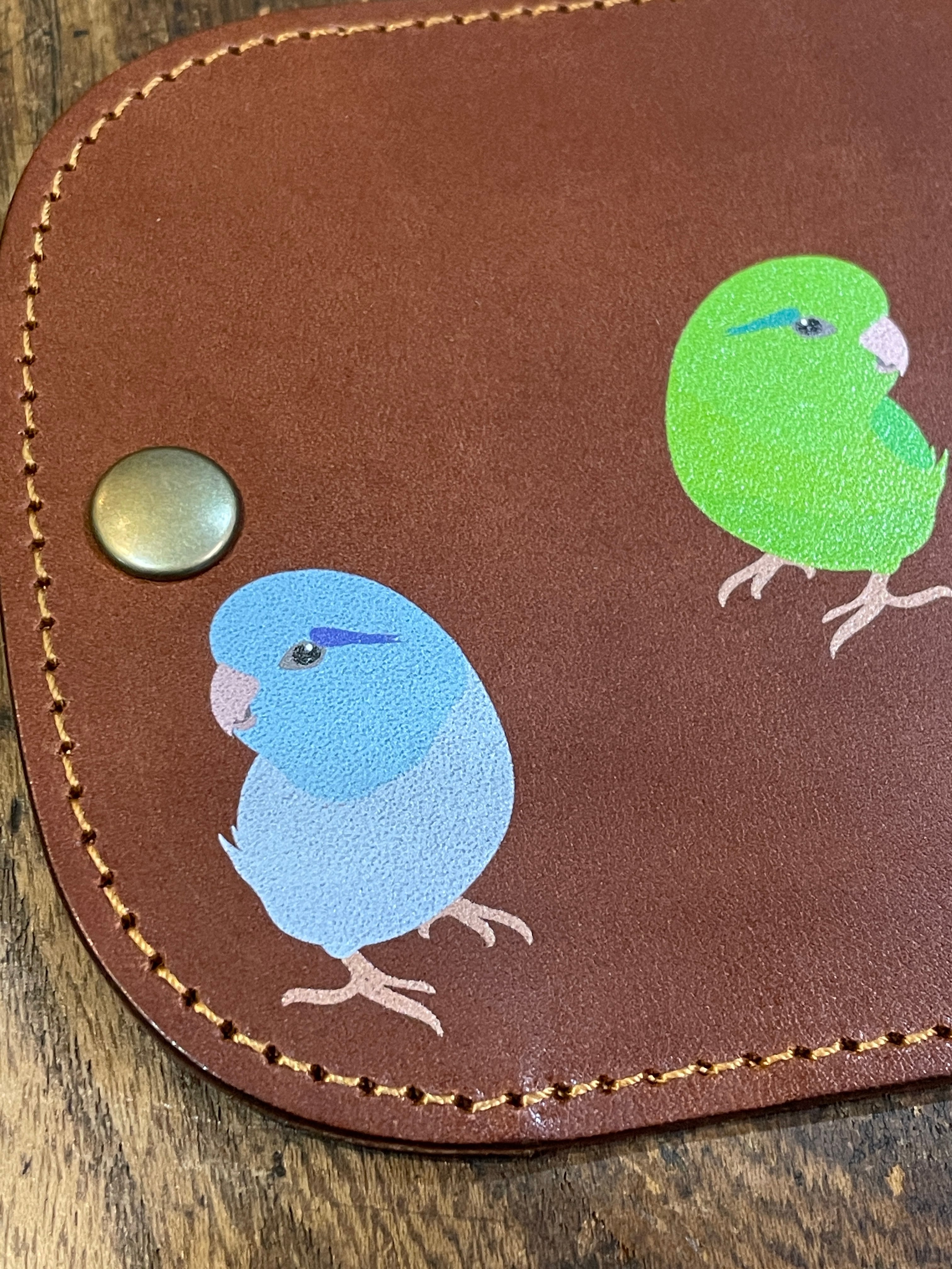あいうえ堂オリジナルのイラストはインクのはがれにくいUV印刷にて印刷をしています。イラストの色は、何年もほぼ褪せることもなくそのままお愉しみいただきつつ、イラストの部分以外は本革の素材感をそのまま感じていただけます。