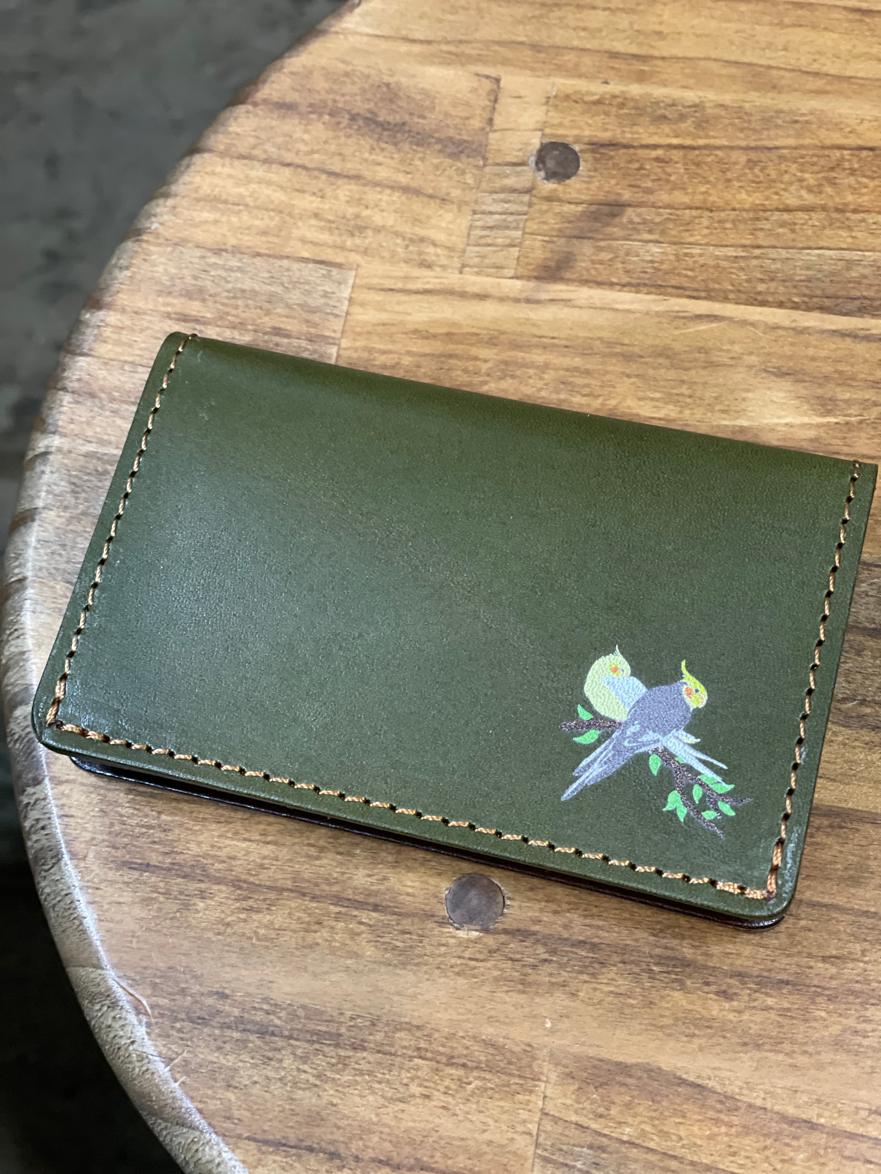 どうぞ可愛いイラストと同時に本革の経年変化をお愉しみください。
