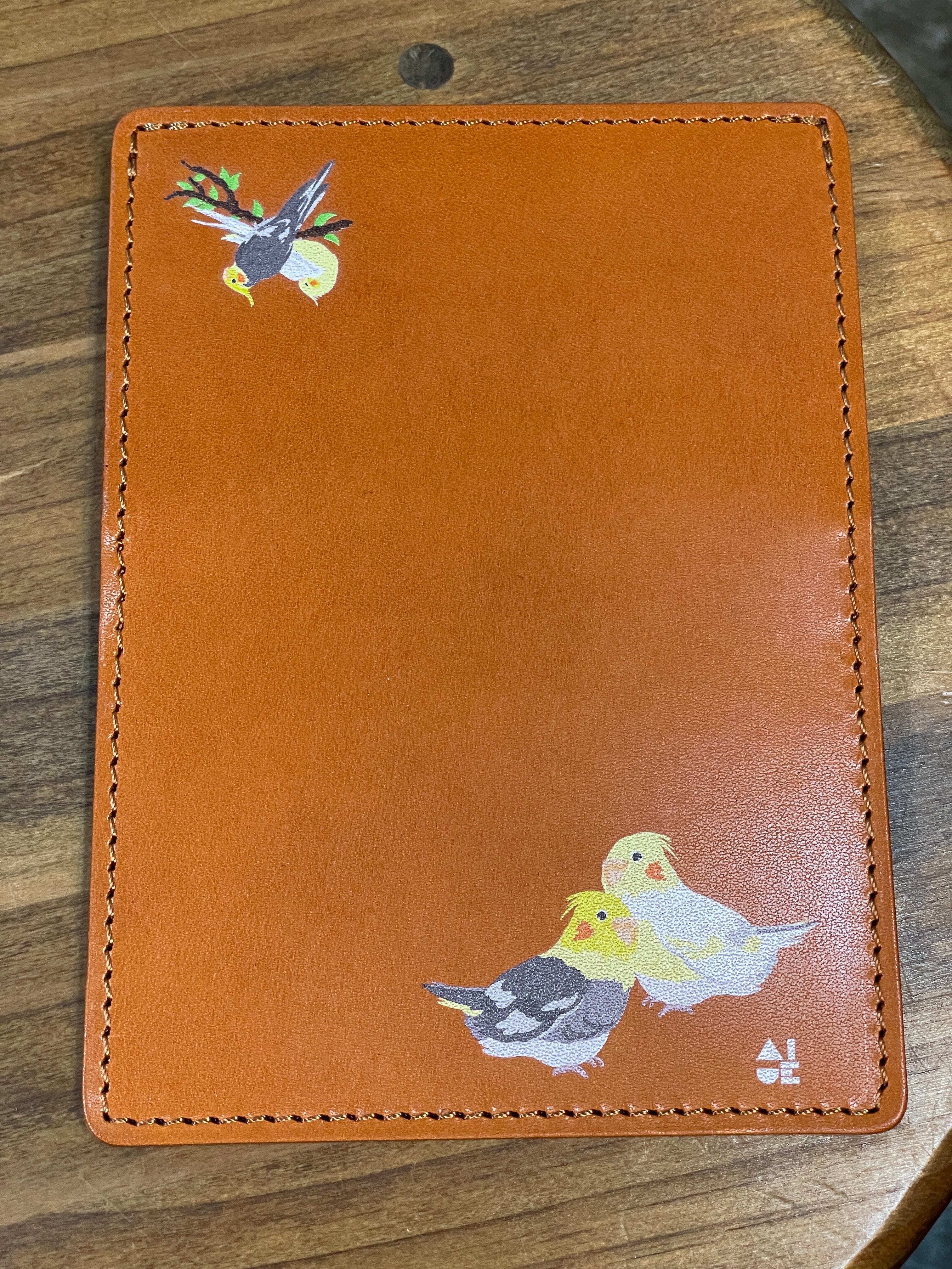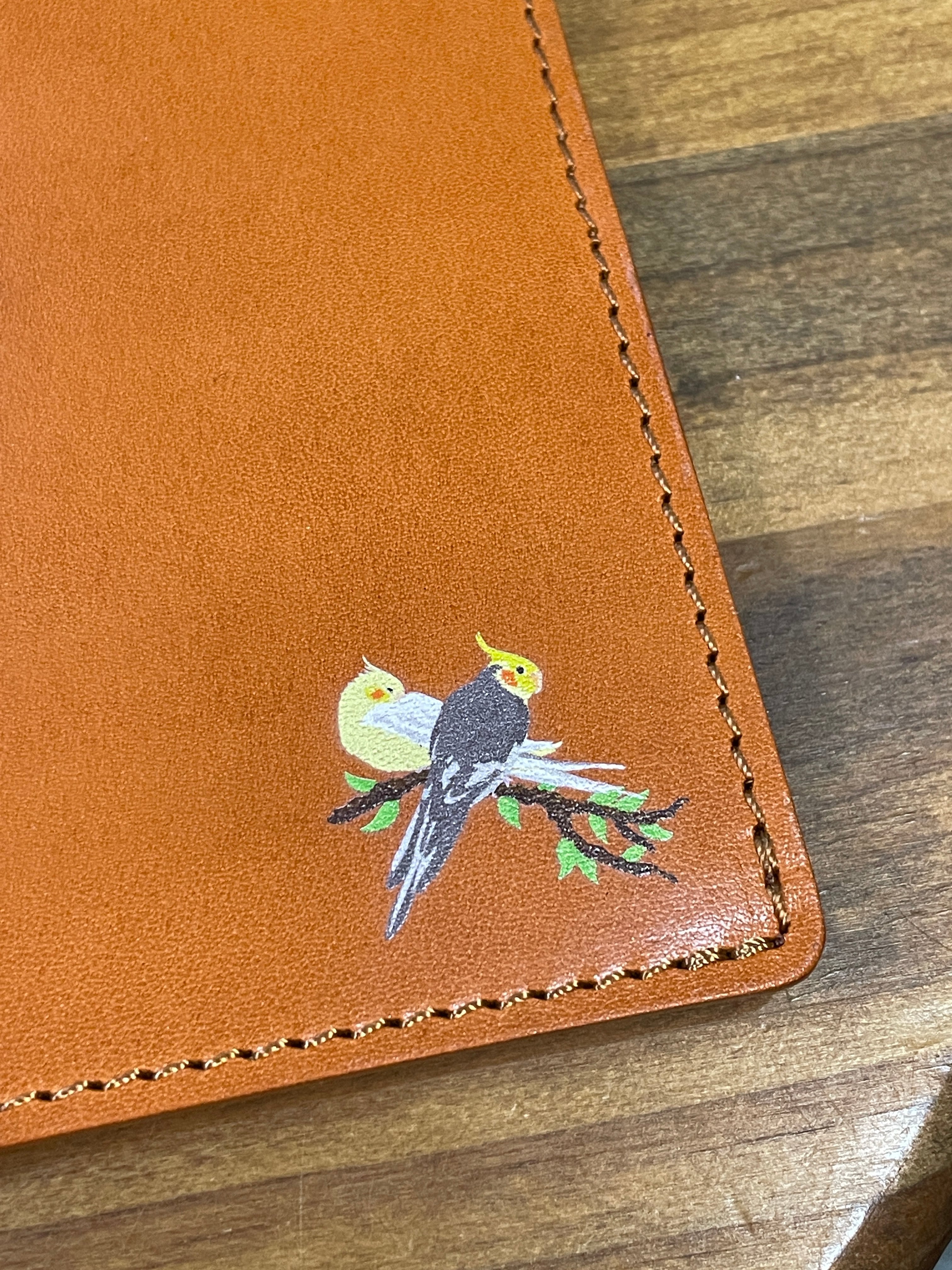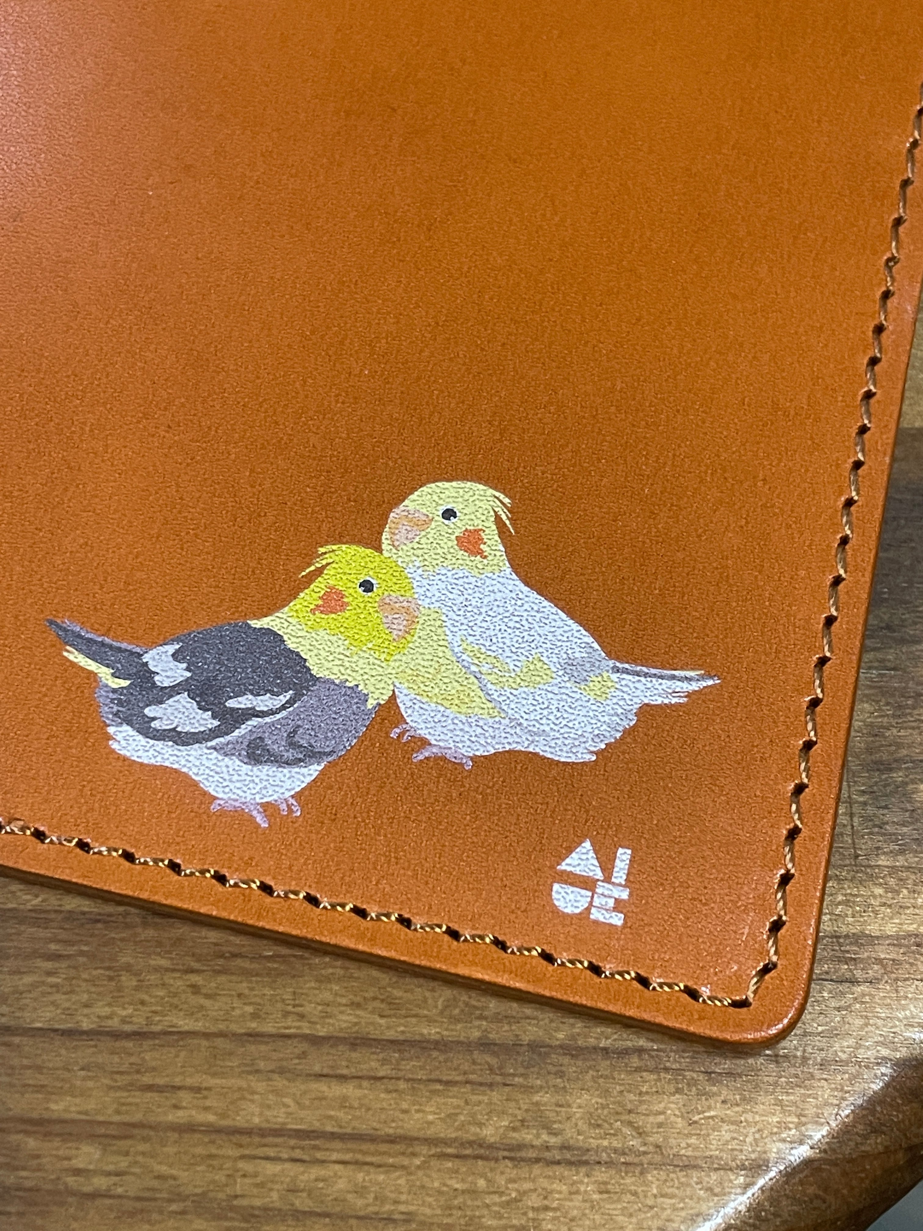 あいうえ堂オリジナルのイラストは、インクのはがれにくいUV印刷にて印刷をしています。イラストの色は、何年もほぼ褪せることもなくそのままお愉しみいただきつつ、イラストの部分以外は本革の素材感をそのまま感じていただけます。どうぞ経年変化をお愉しみください。