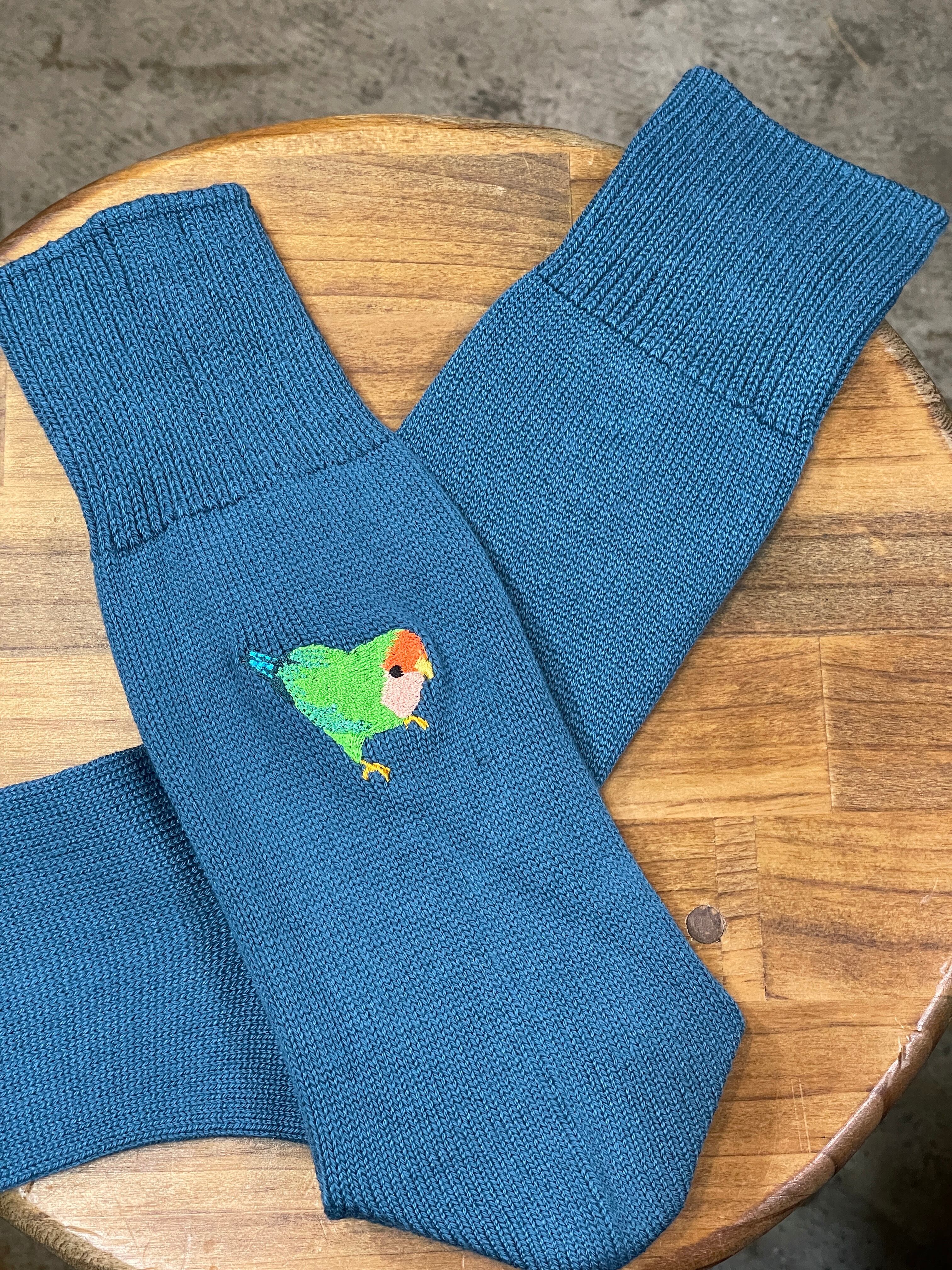 靴下 ブルー コザクラインコ 日本製 刺繍 奈良の靴下 くつした こざくらいんこ
