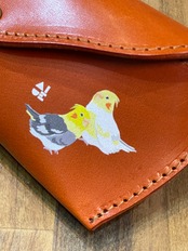 どうぞ可愛いイラストと同時に本革の経年変化をお愉しみください。