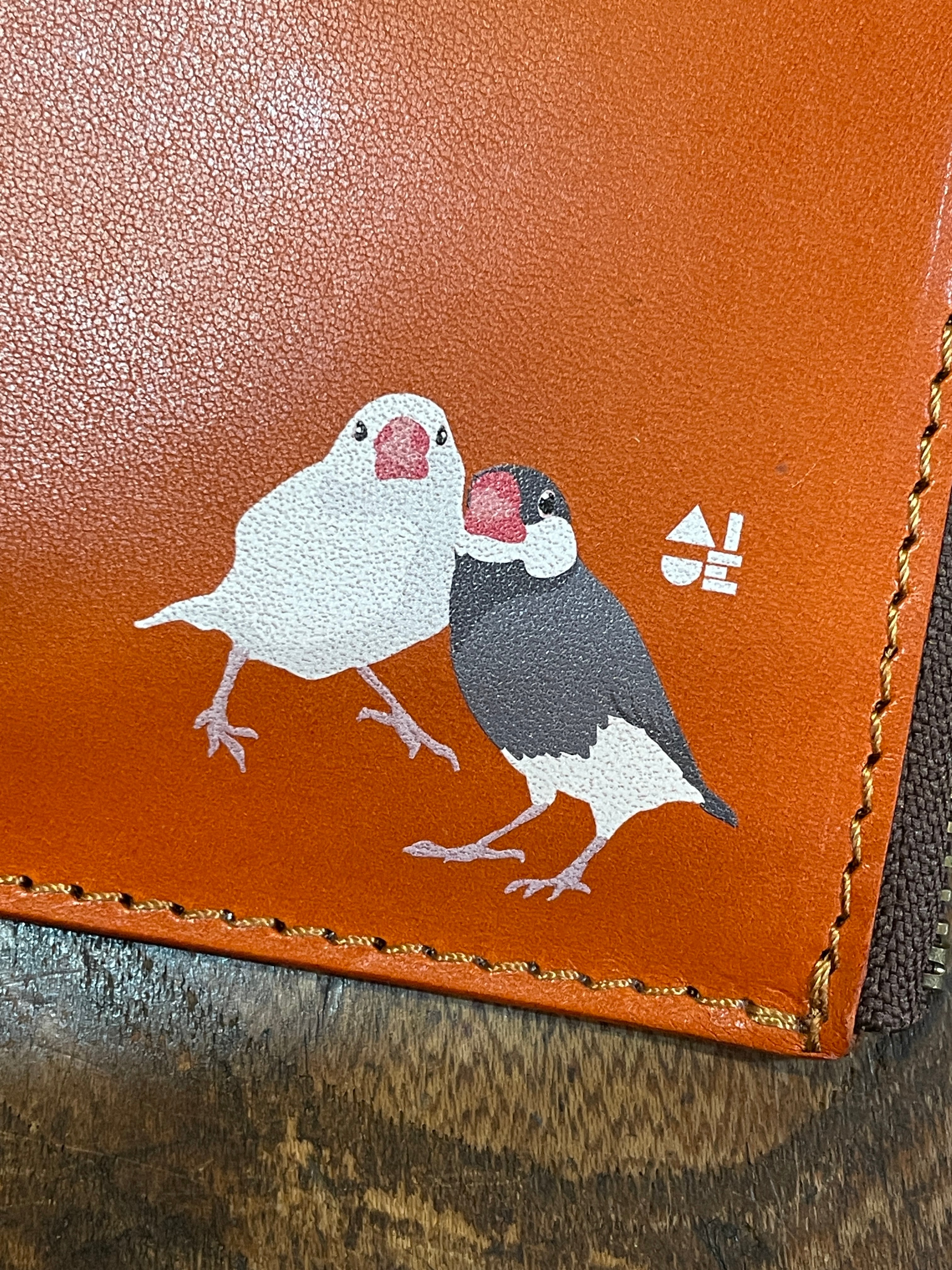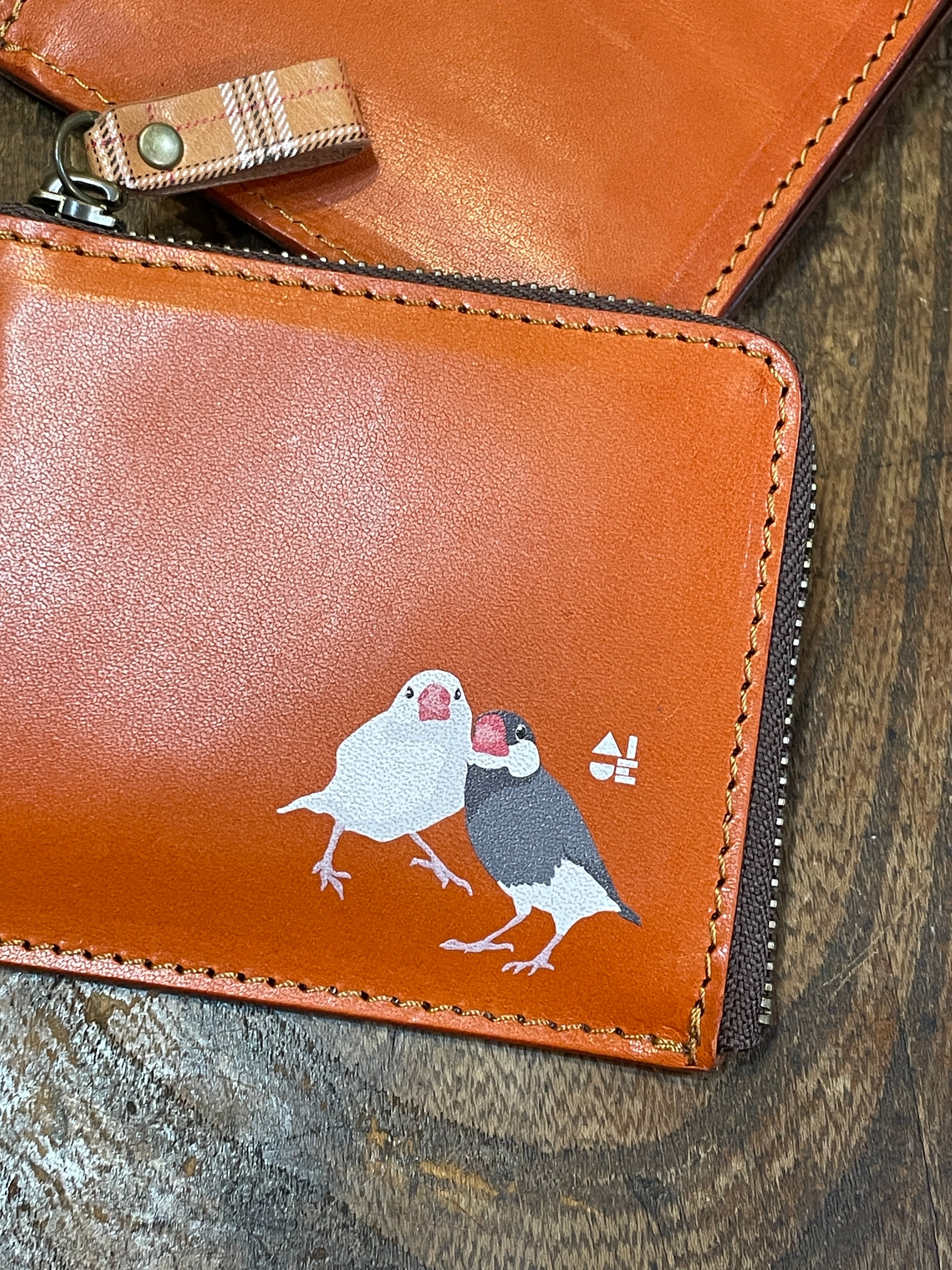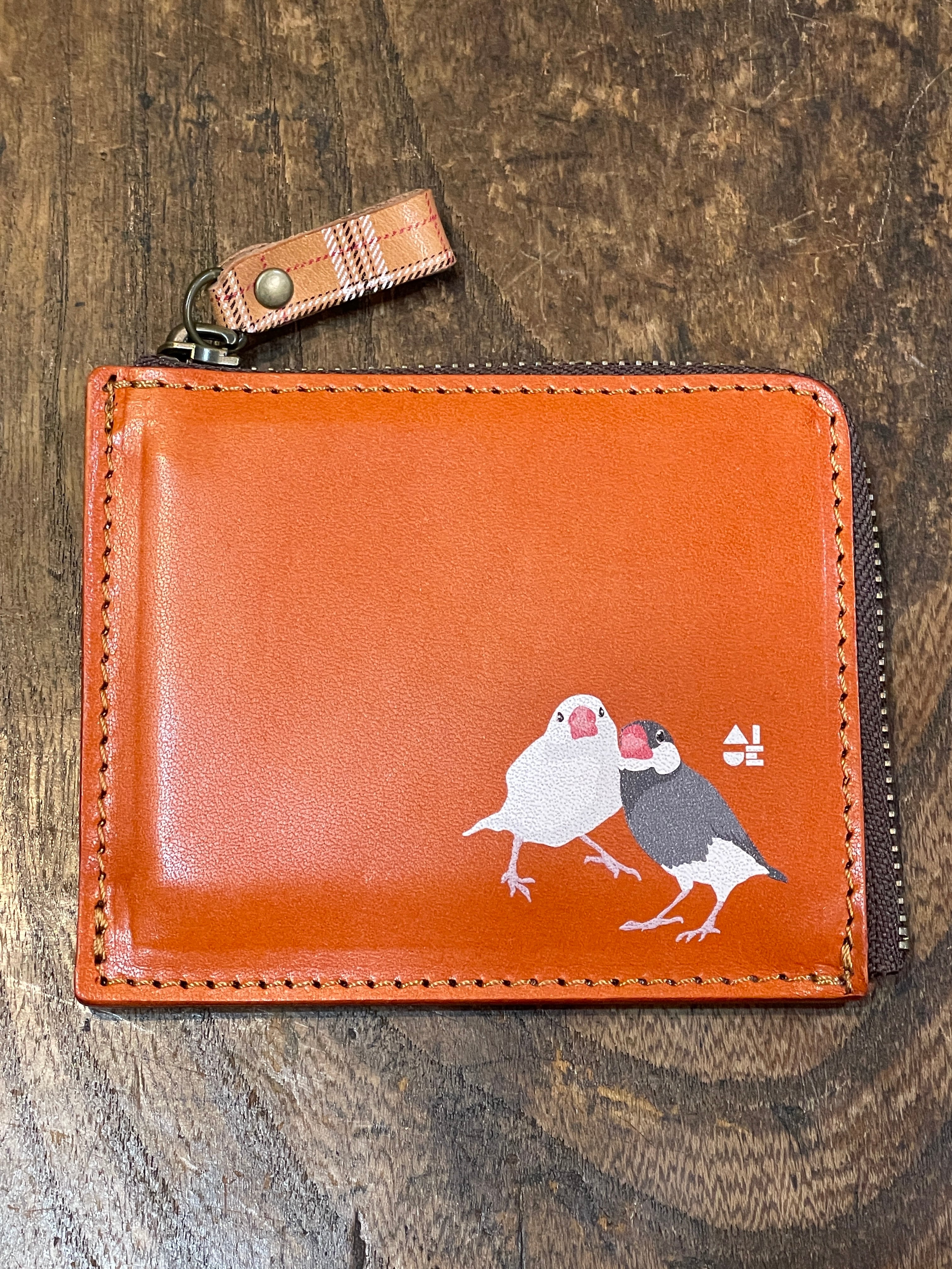 【送料無料】 L字ファスナー財布 文鳥 2羽 RedBrown レッドブラウン 桜文鳥 白文鳥 財布