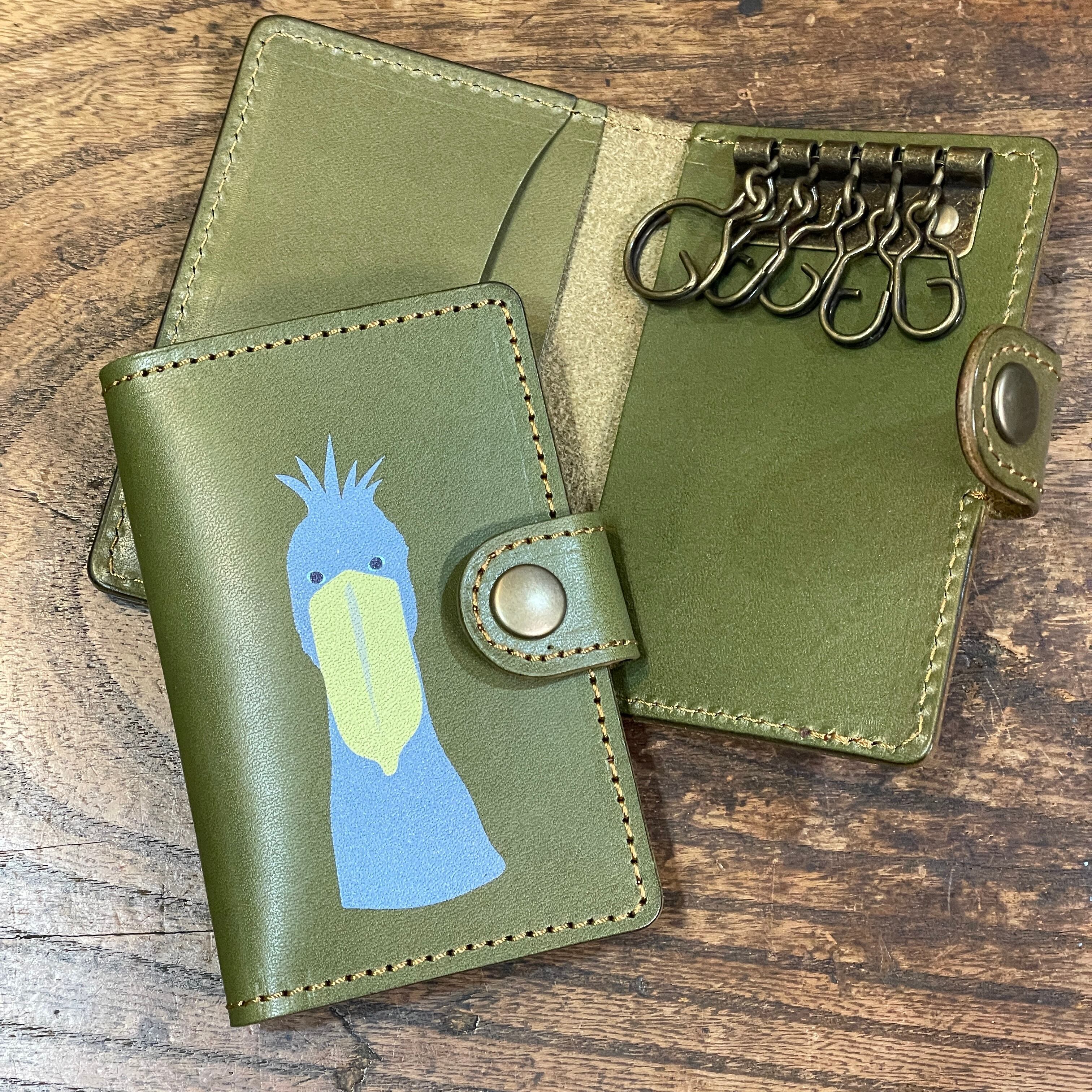 カード&キーケース ハシビロコウ グリーン キーケース カードケース 栃木レザー
