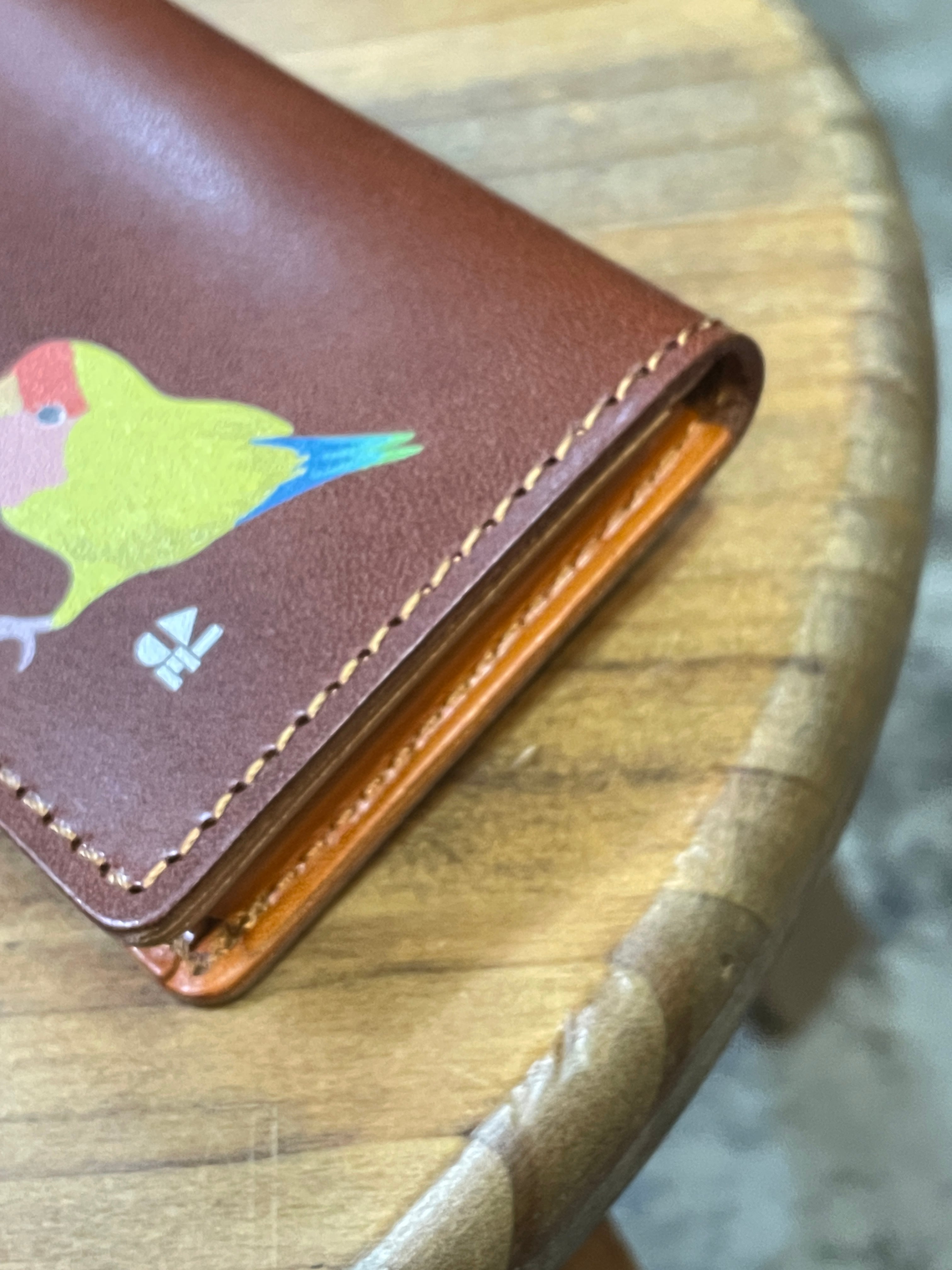 どうぞ可愛いイラストと同時に本革の経年変化をお愉しみください。