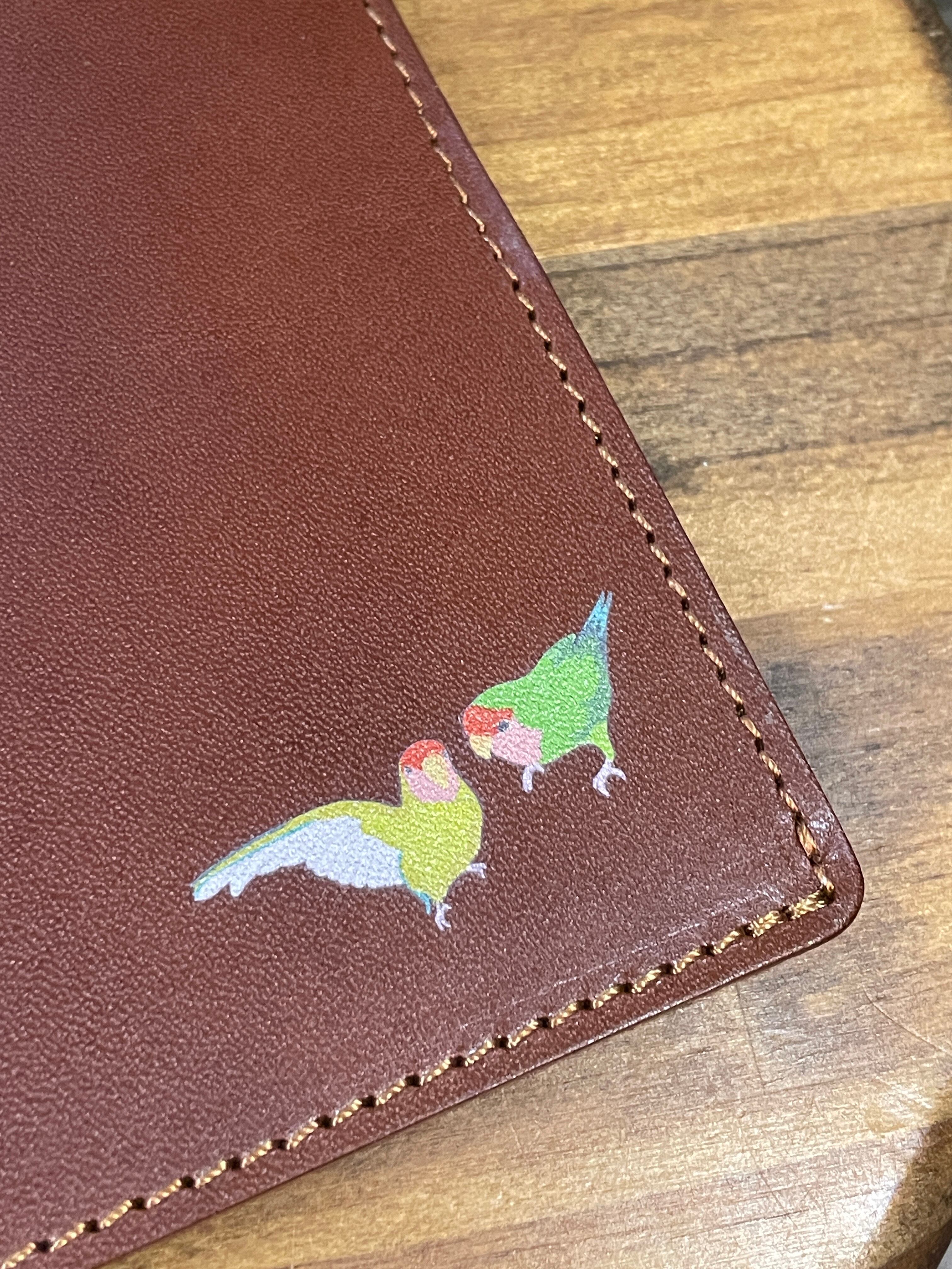 あいうえ堂オリジナルのイラストは、インクのはがれにくいUV印刷にてプリントをしています。そのイラスト部分以外は、本革の素材感をそのまま感じていただけます。