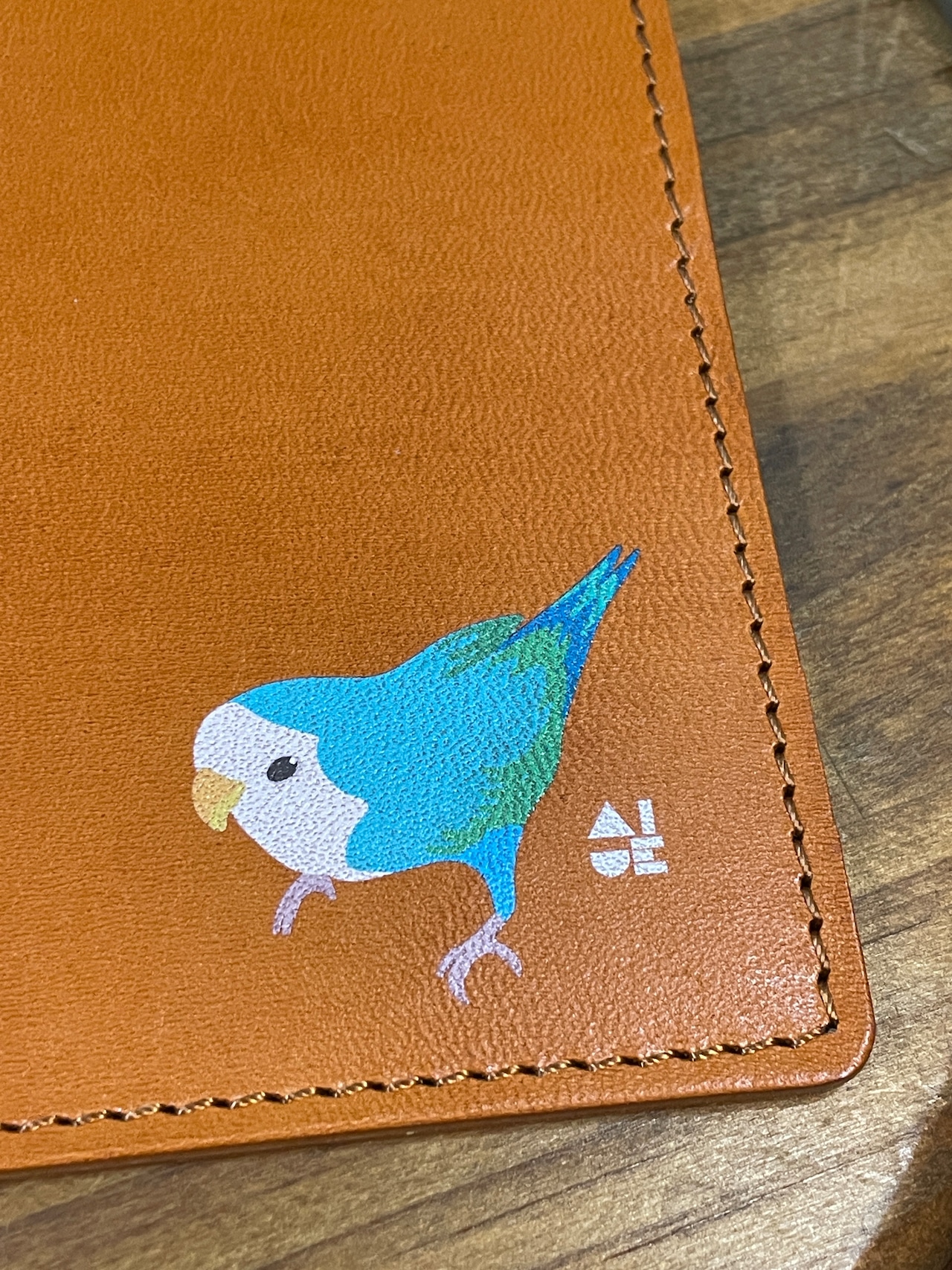 あいうえ堂オリジナルのイラストは、インクのはがれにくいUV印刷にてプリントをしています。そのイラスト部分以外は、本革の素材感をそのまま感じていただけます。