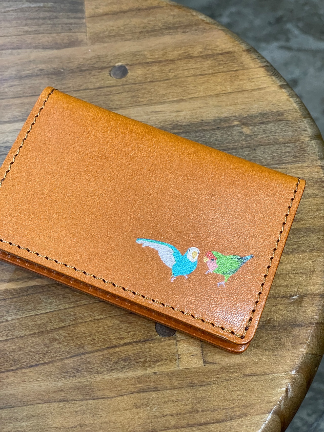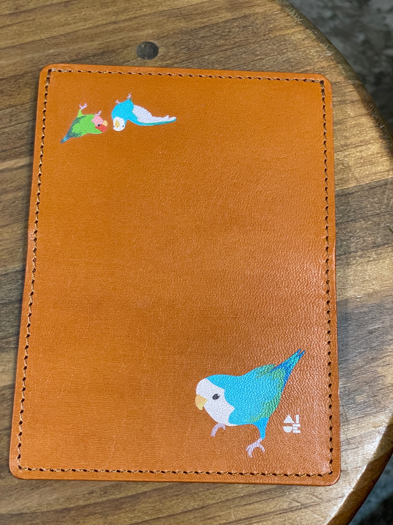 どうぞ可愛いイラストと同時に本革の経年変化をお愉しみください。