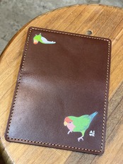 どうぞ可愛いイラストと同時に本革の経年変化をお愉しみください。