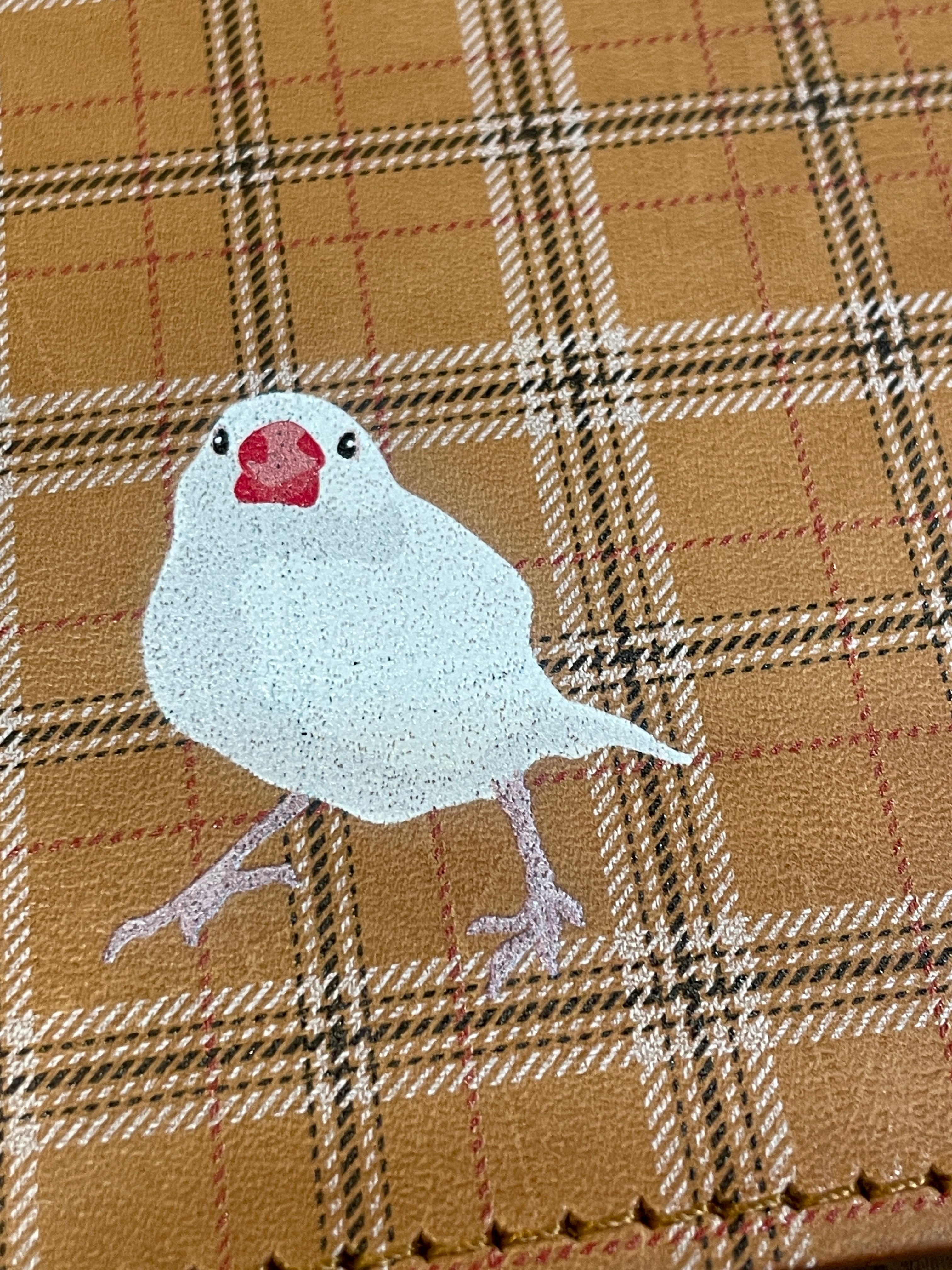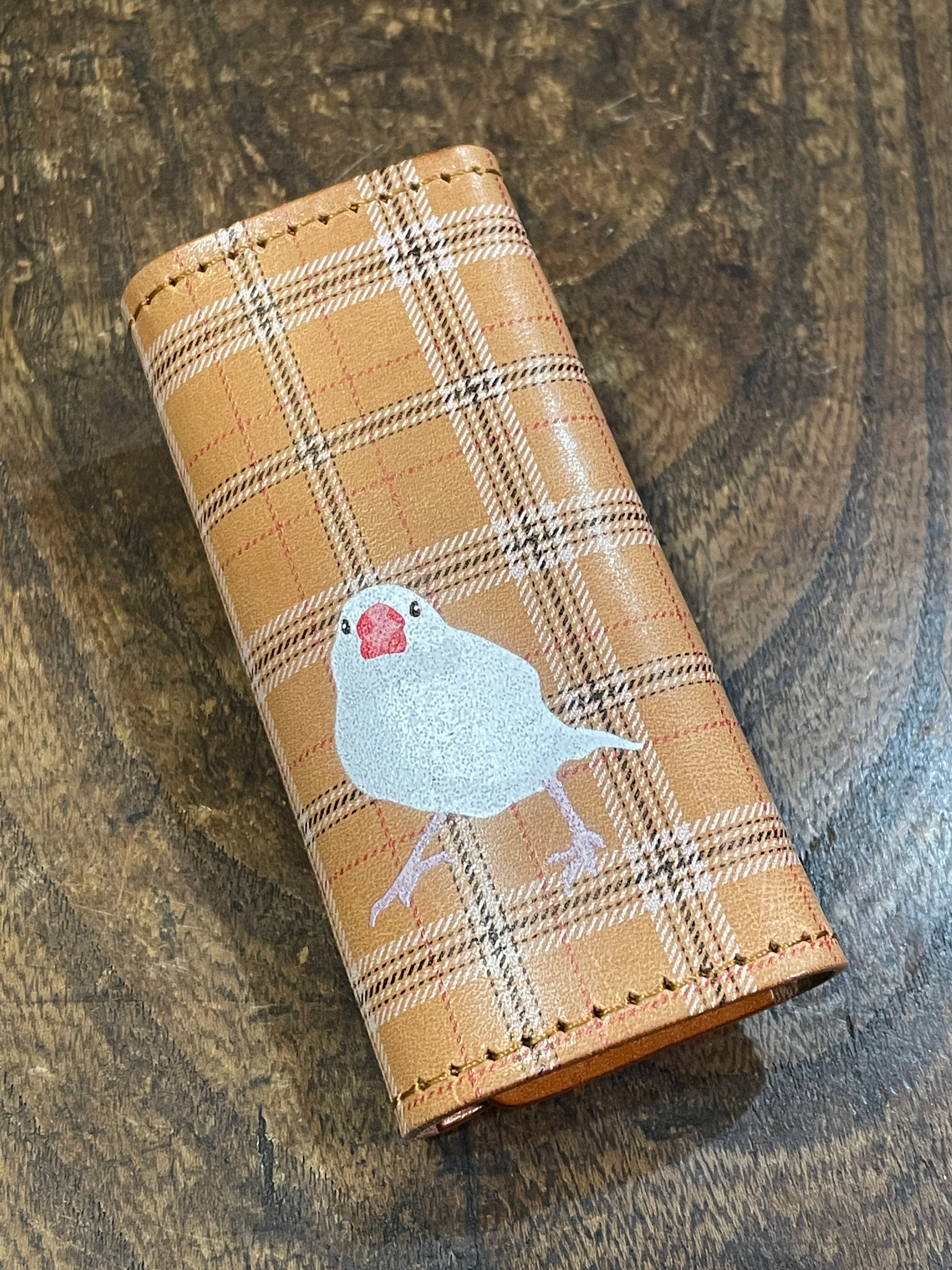 スリムキーケース 桜文鳥 & 白文鳥 ベージュ タータンチェック 文鳥 ぶんちょう ブンチョウ