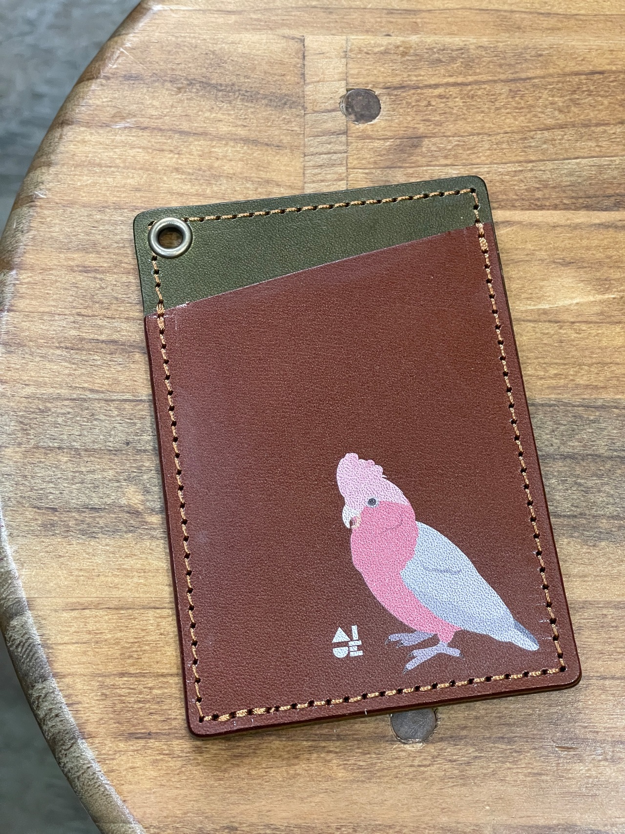 パスケース モモイロインコ ブラウン グリーン ももいろいんこ 栃木レザー
