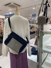 軽くて強くて撥水加工されてて自立するのに手触り最高でお手入れ簡単という、こだわり強めの私が一目惚れした小松マテーレさんが開発したKONBUという名前の新素材生地でつくったショルダーバッグです。