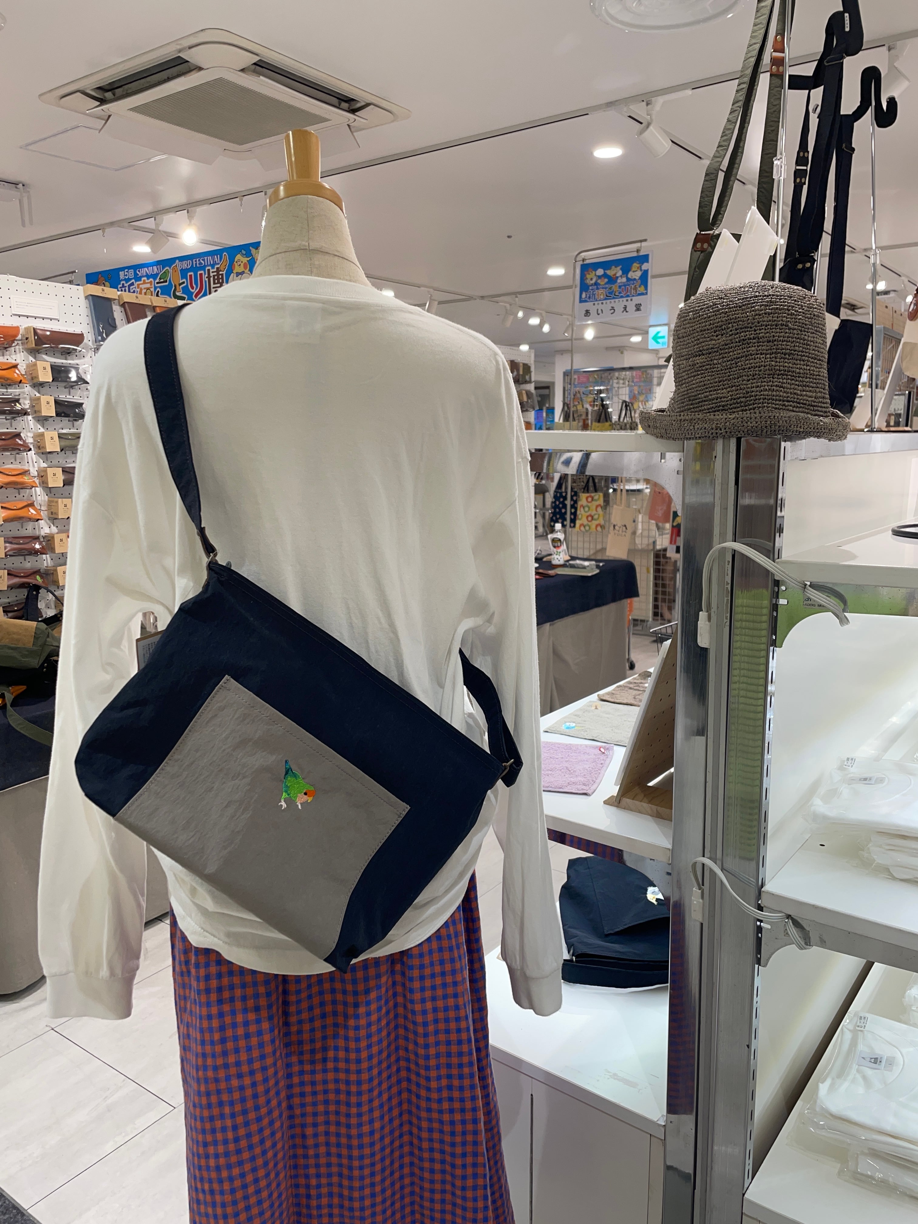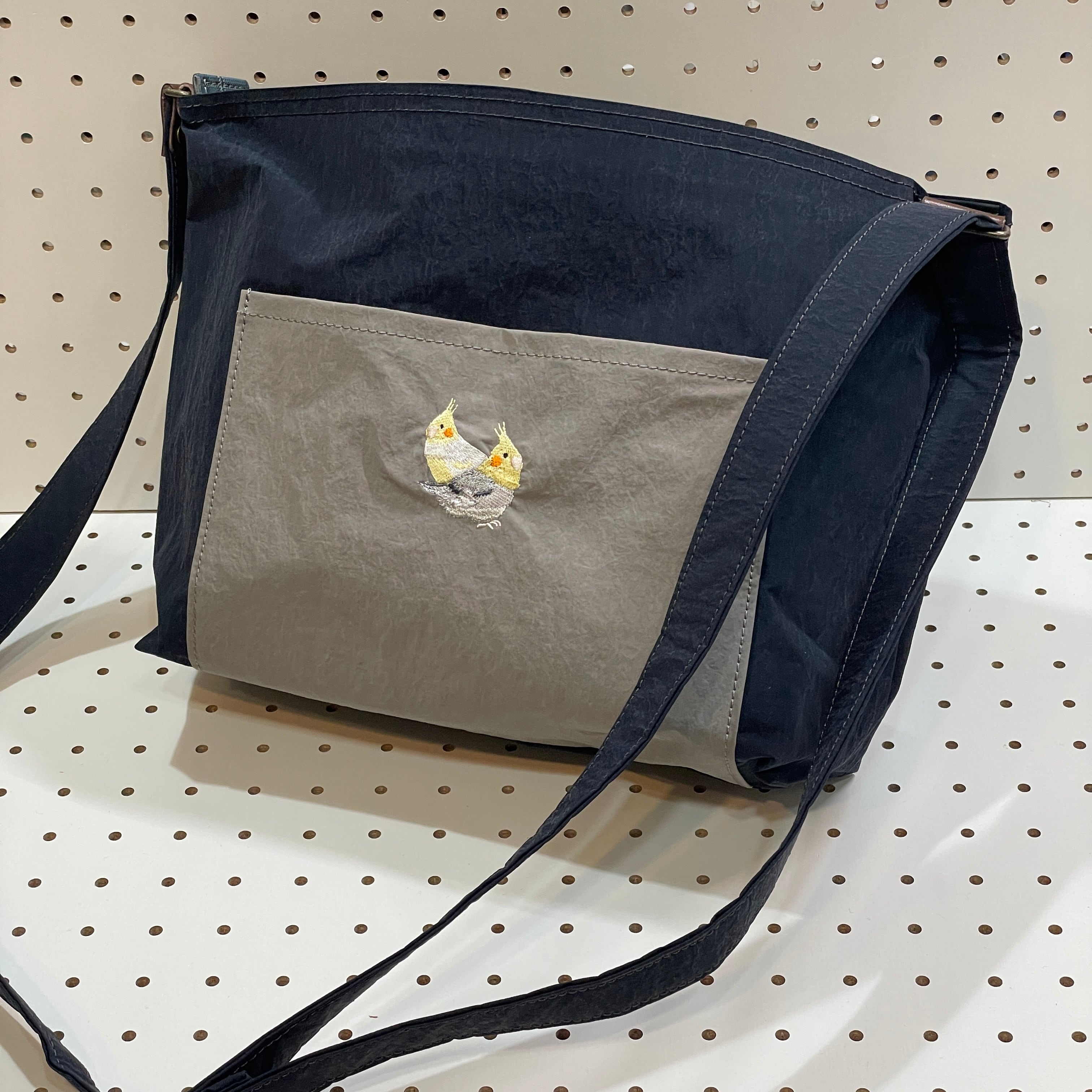 【送料無料】 KONBU ショルダーバッグ オカメインコ ネイビー (ポケット:グレー)