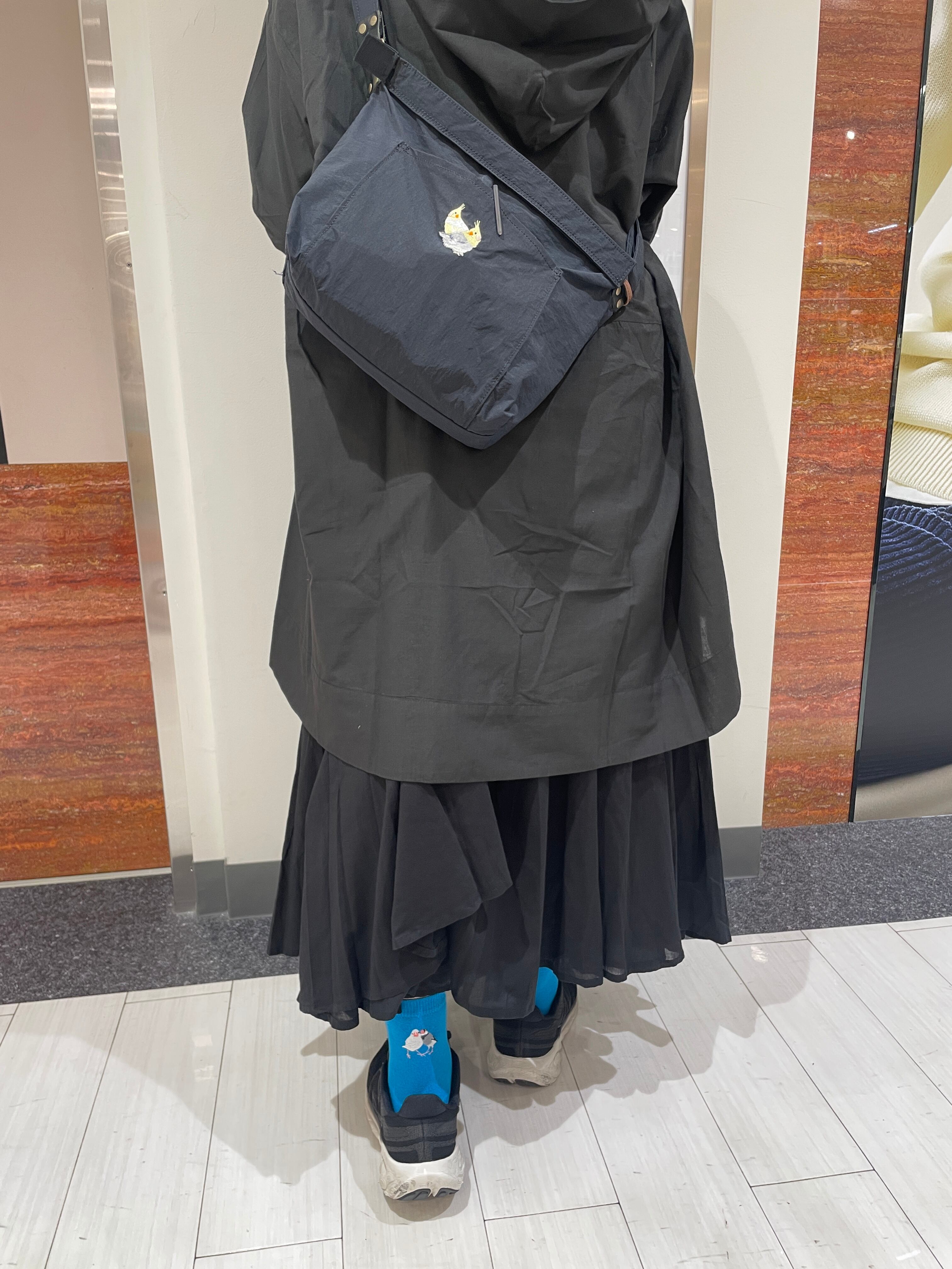 軽くて強くて撥水加工されてて自立するのに手触り最高でお手入れ簡単という、こだわり強めの私が一目惚れした小松マテーレさんが開発したKONBUという名前の新素材生地でつくったショルダーバッグです。