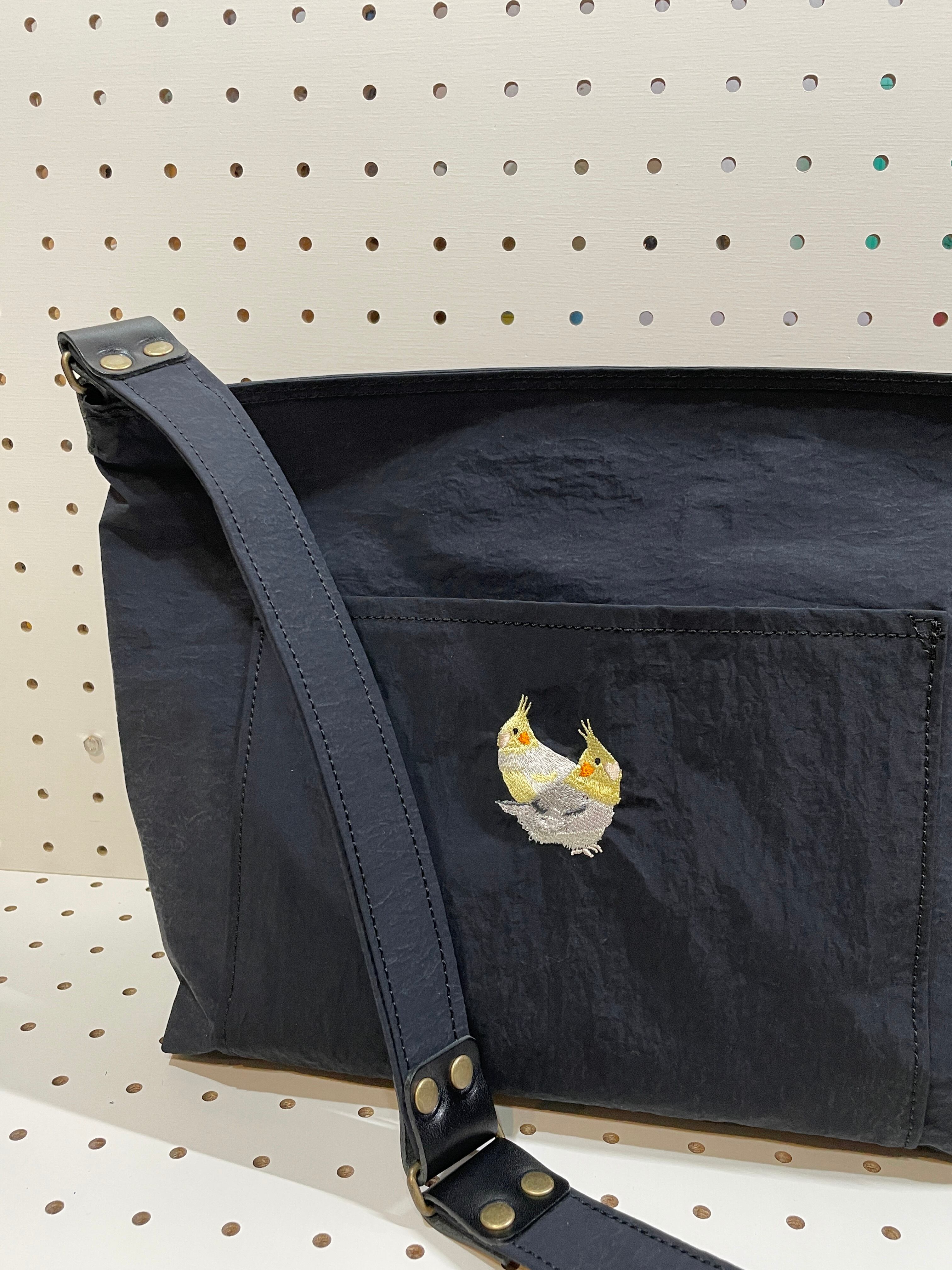 軽くて強くて撥水加工されてて自立するのに手触り最高でお手入れ簡単という、こだわり強めの私が一目惚れした小松マテーレさんが開発したKONBUという名前の新素材生地でつくったショルダーバッグです。
