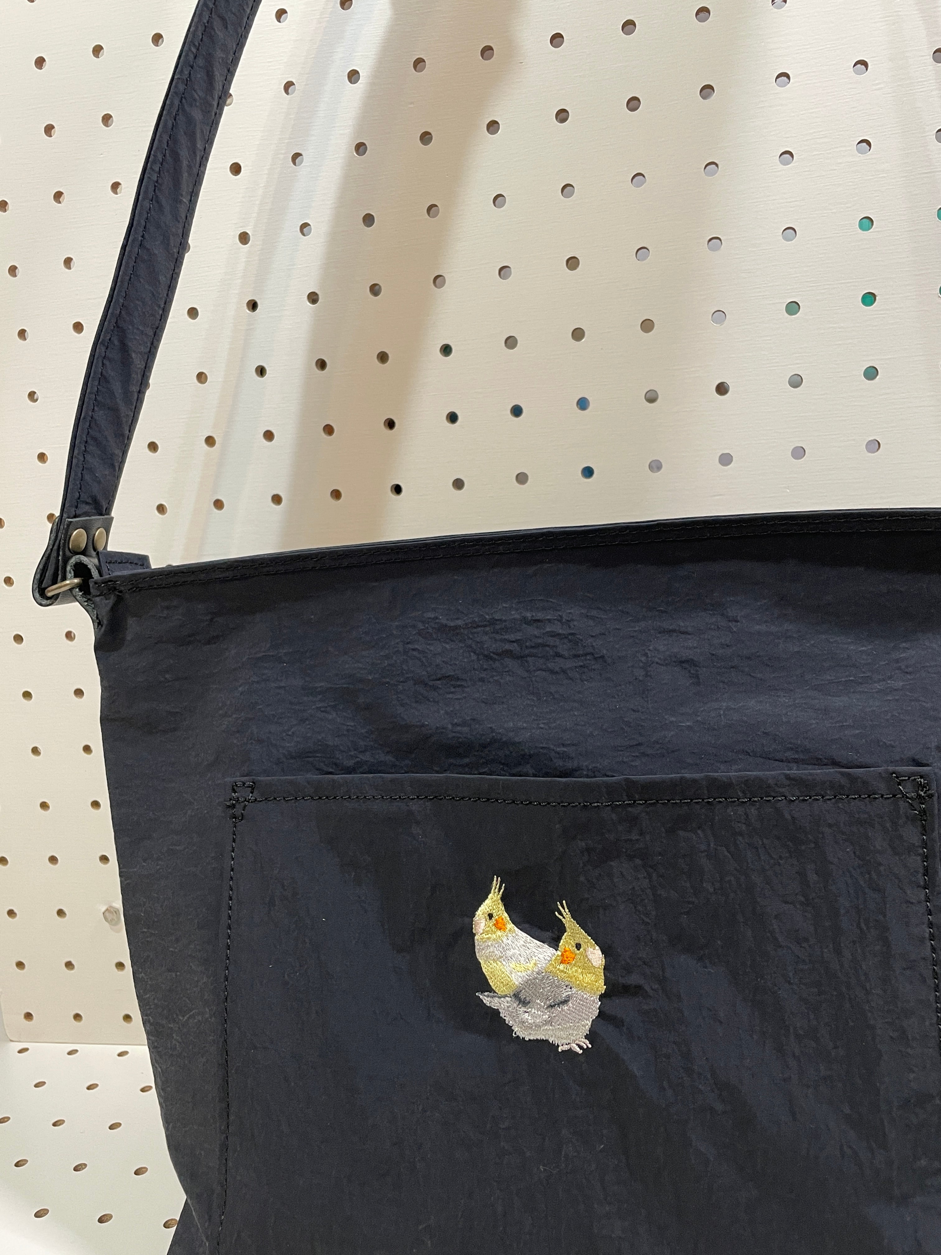【送料無料】 KONBU ショルダーバッグ オカメインコ ブラック (ポケット:ブラック)