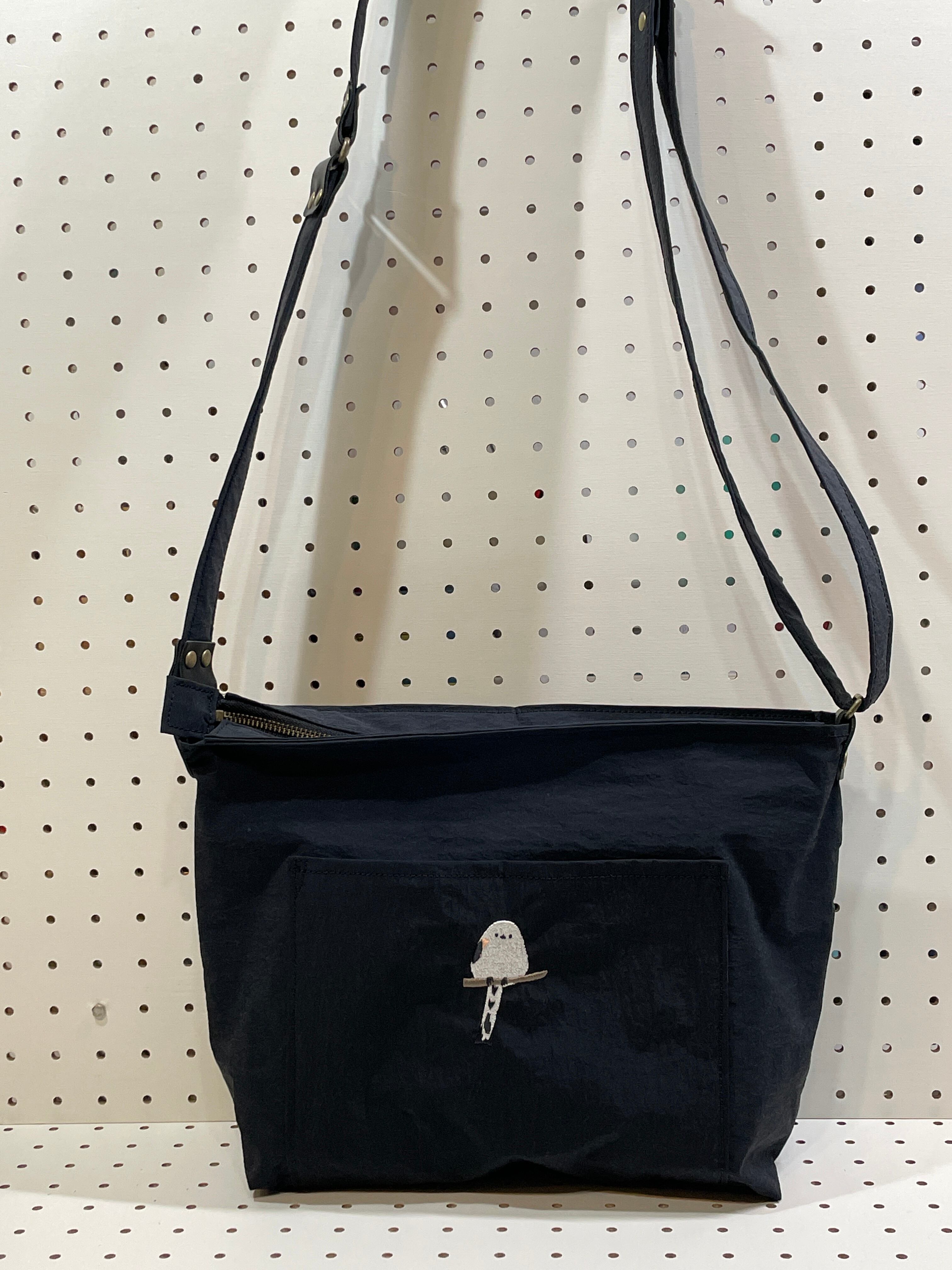 【送料無料】 KONBU ショルダーバッグ シマエナガ ブラック (ポケット:ブラック)