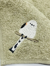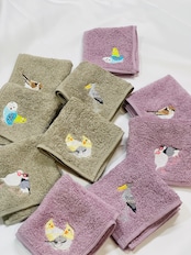 なめらかでふんわりとした肌触りな愛媛県今治市の品質基準に合格した高品質タオルに、あいうえ堂オリジナルの小鳥の刺繍を施しました。