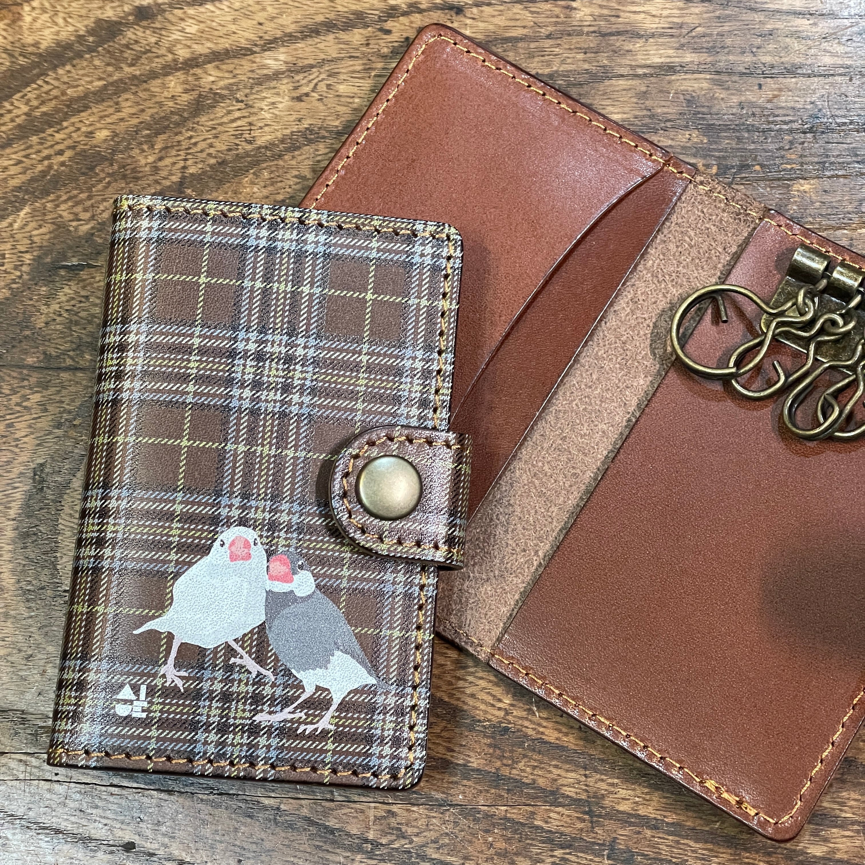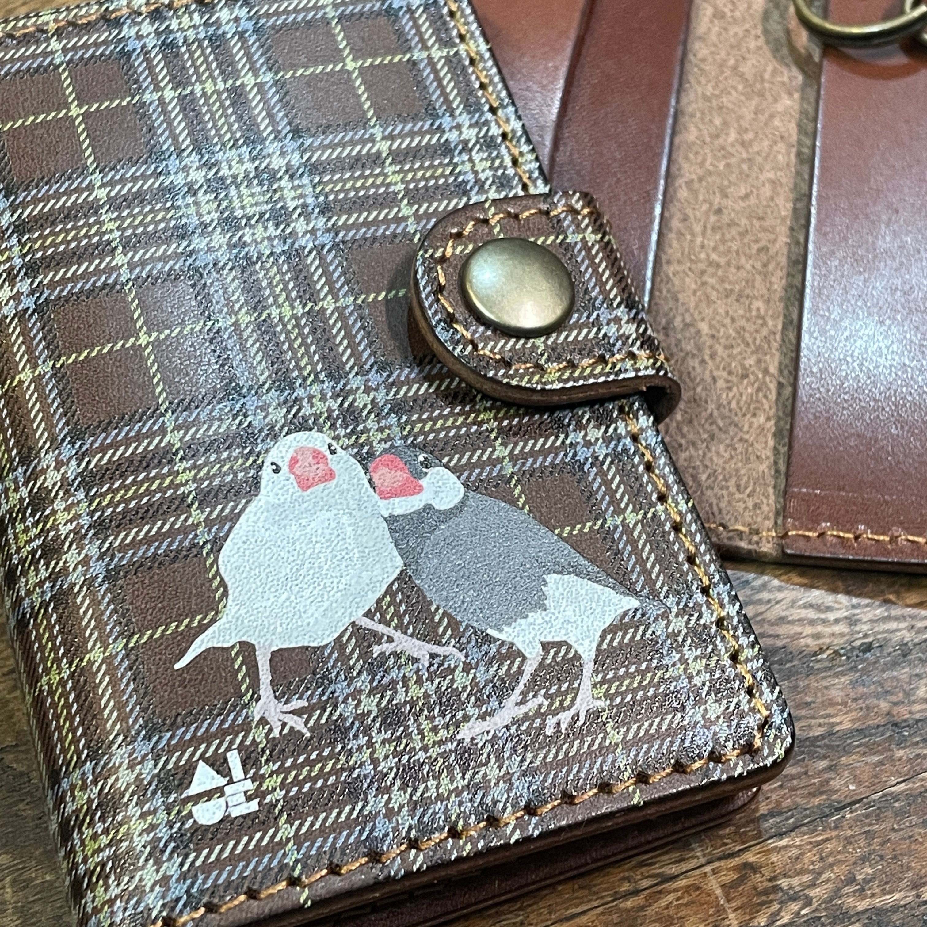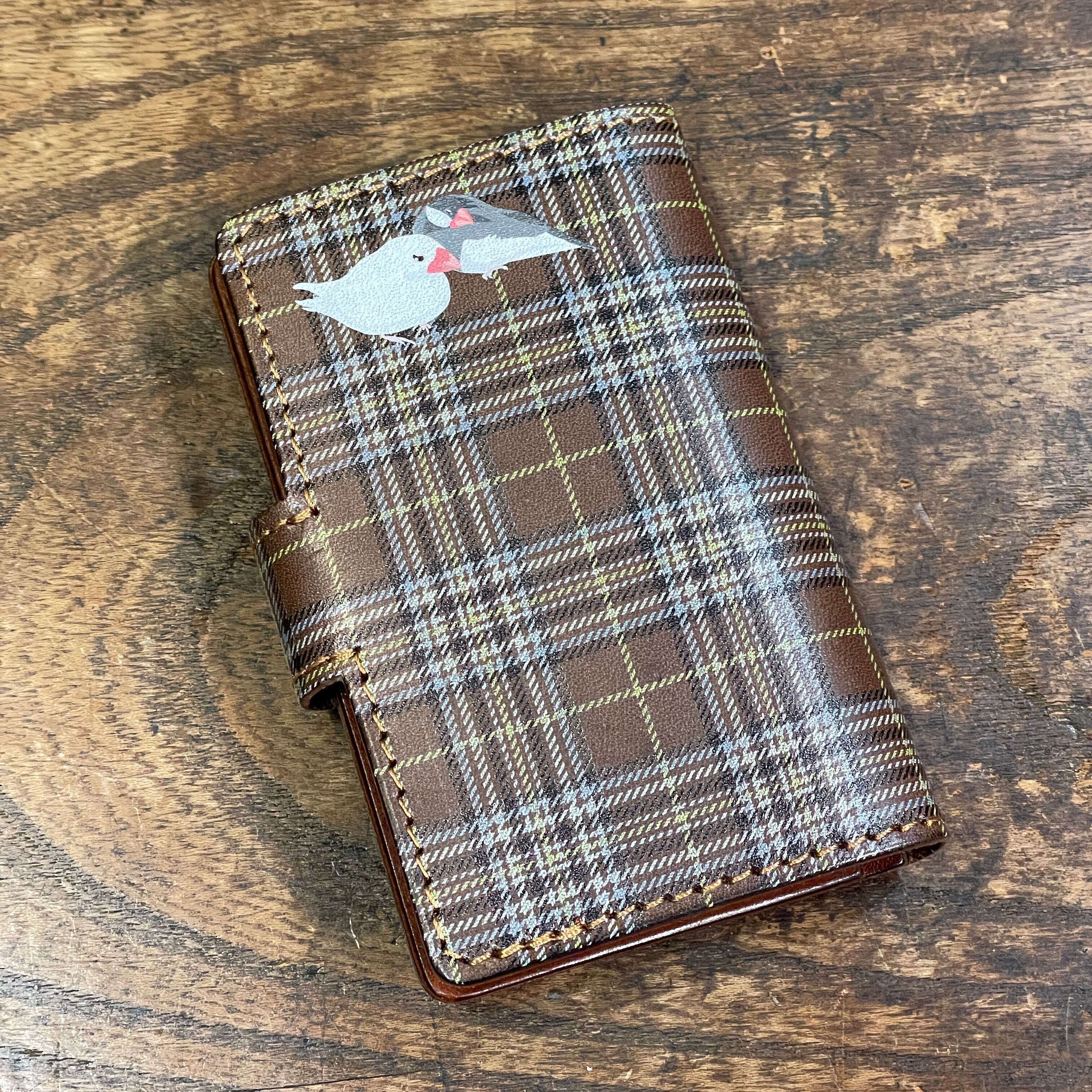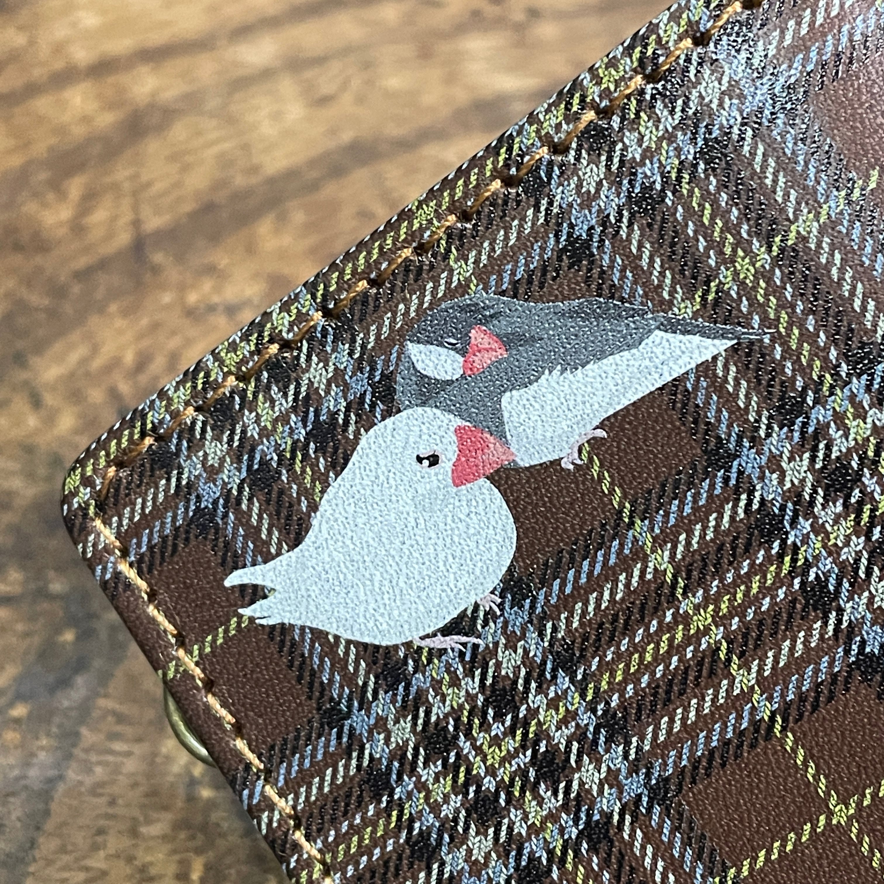 カード&キーケース 白文鳥 と 桜文鳥 Dark Brown tartancheck 文鳥 ダークブラウン タータンチェック キーケース カードケース 栃木レザー | sasatte STORE|ささってストア