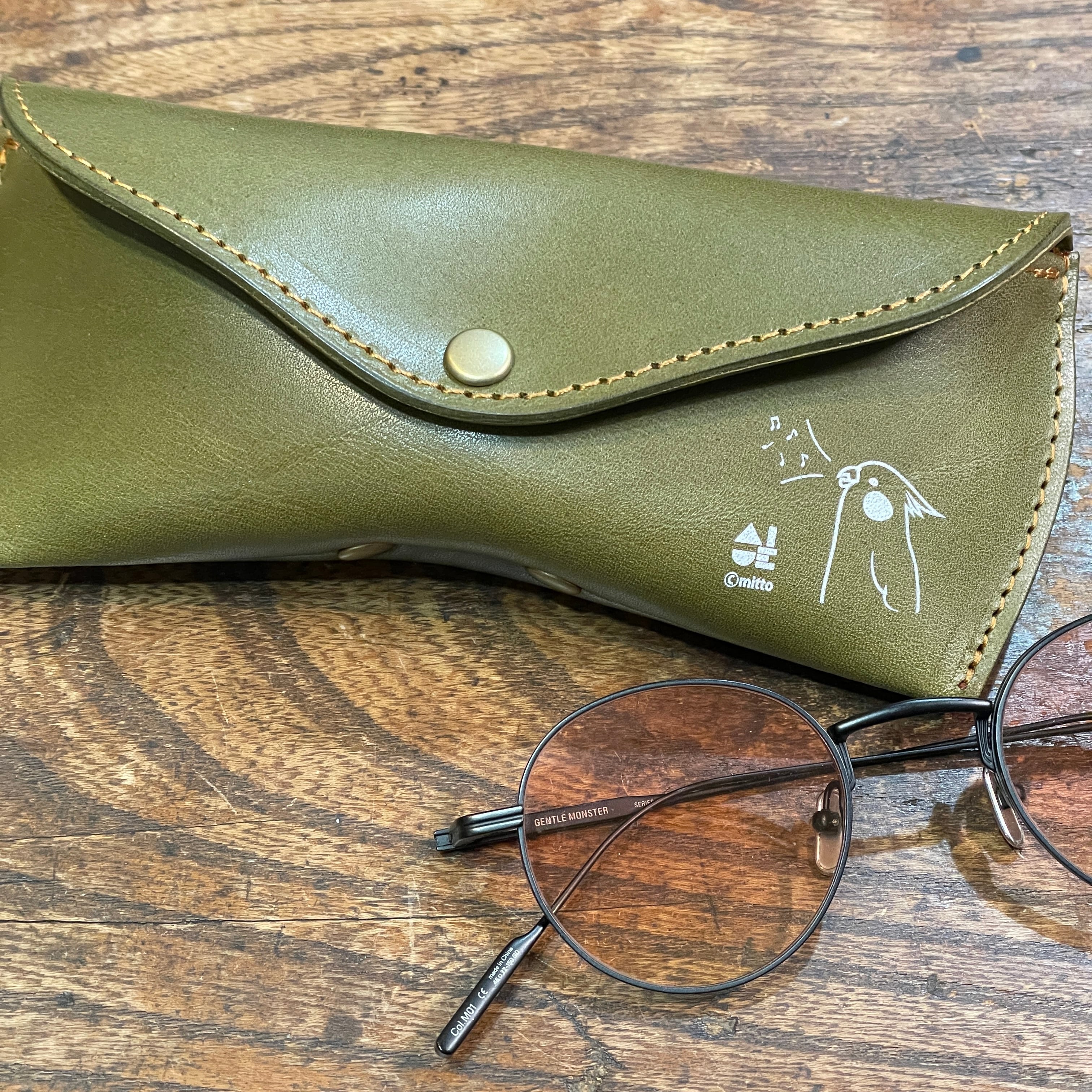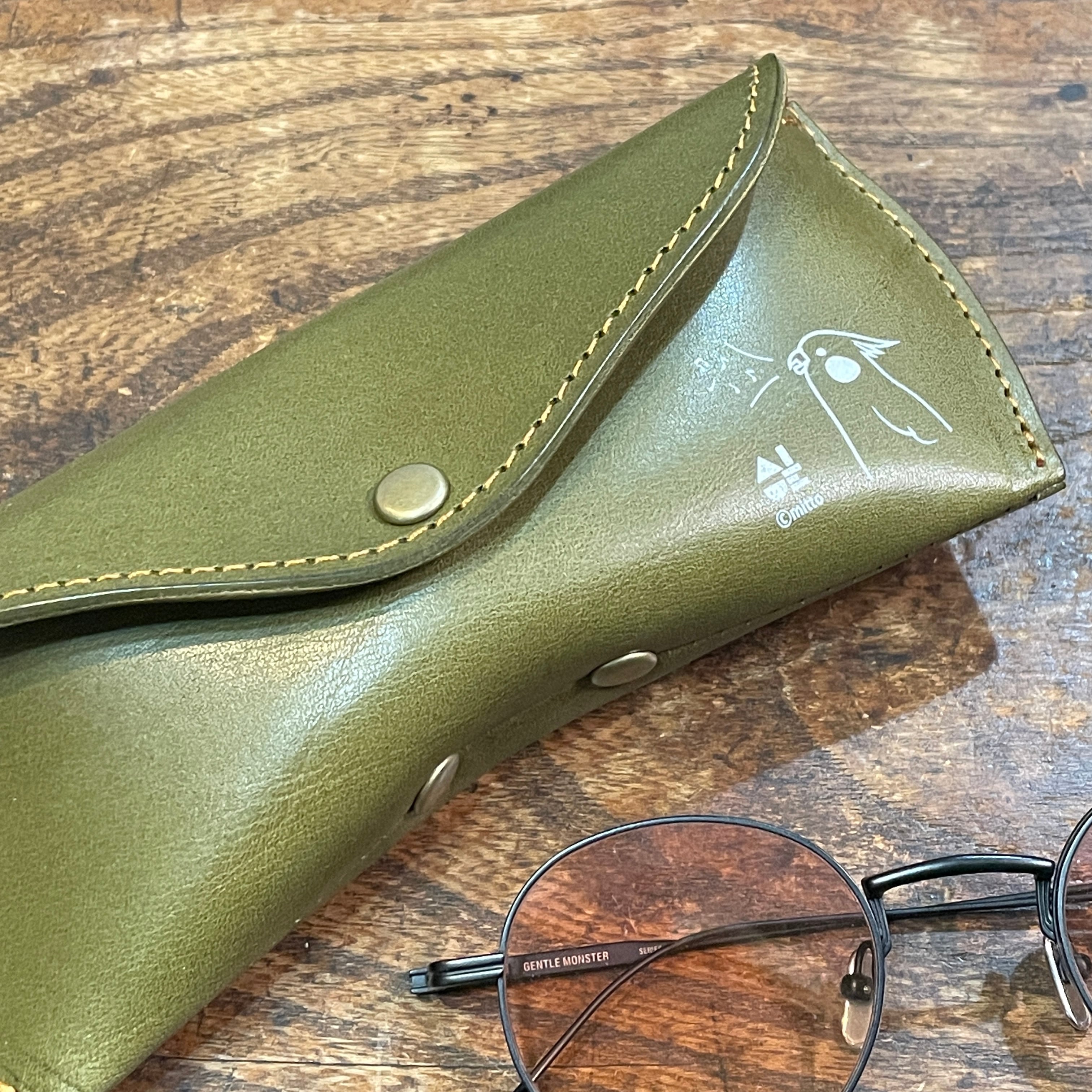 【送料無料】メガネケース 歌うおかめちゃん オカメインコ Green グリーン おかめいんこ 栃木レザー
