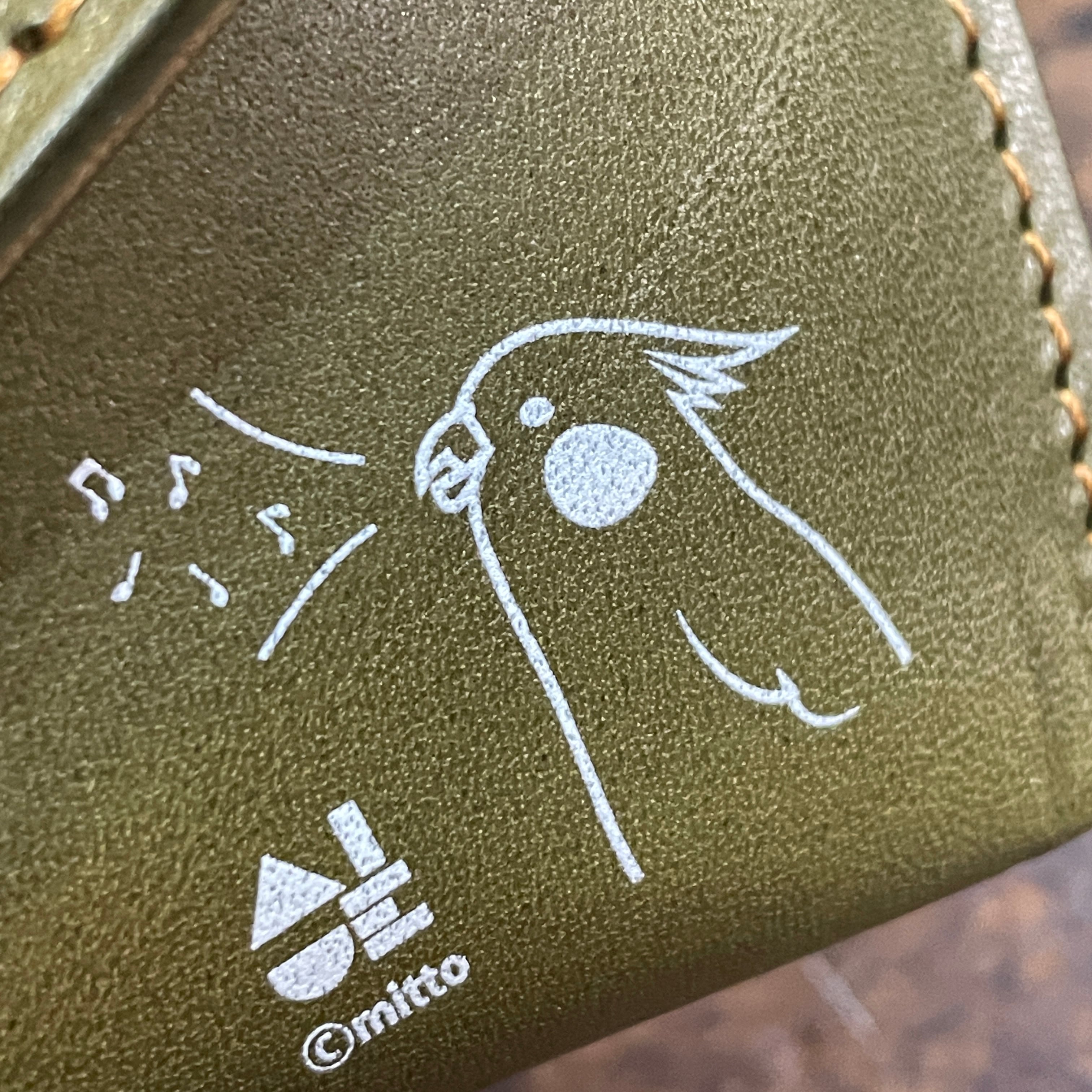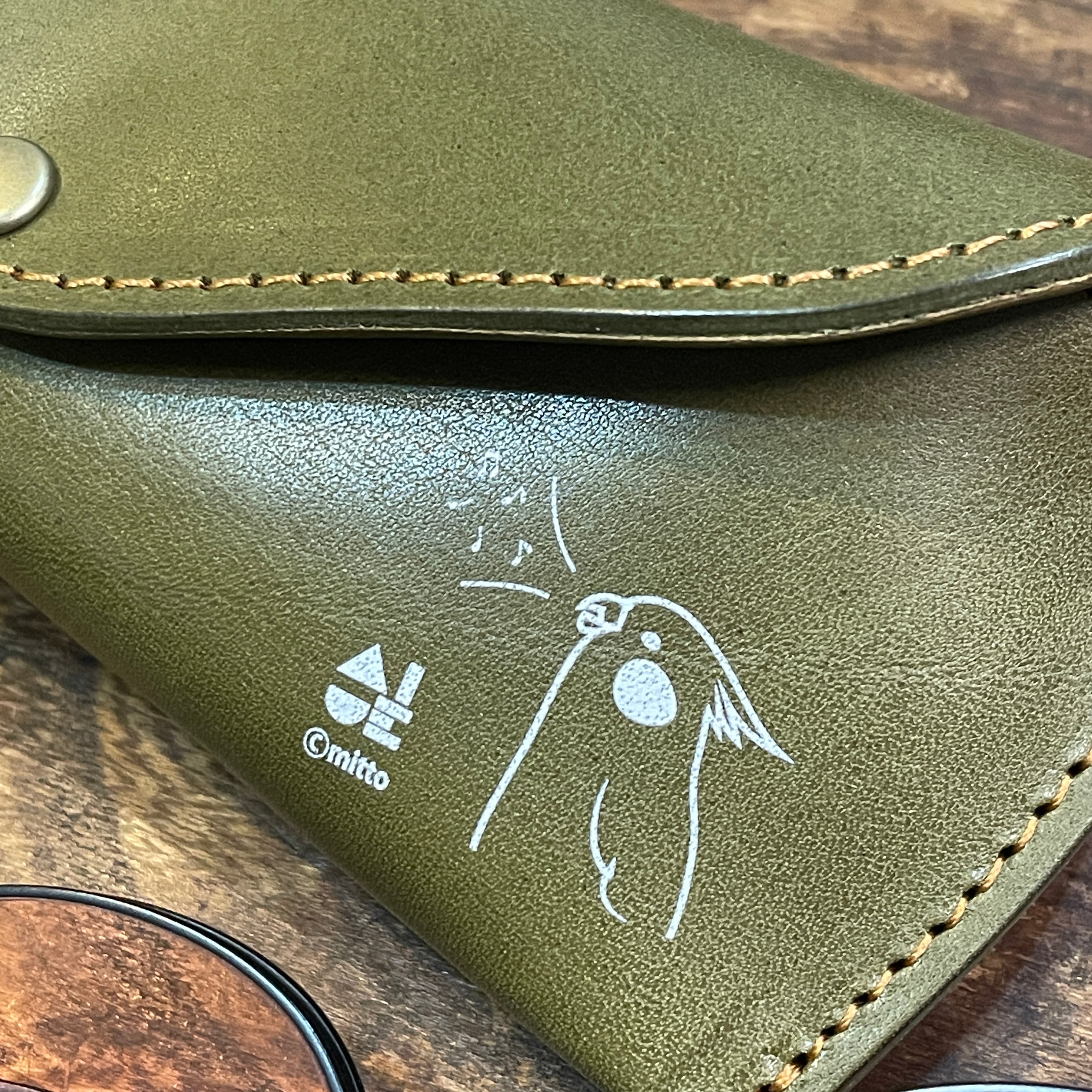 どうぞ可愛いイラストと同時に本革の経年変化をお愉しみください。