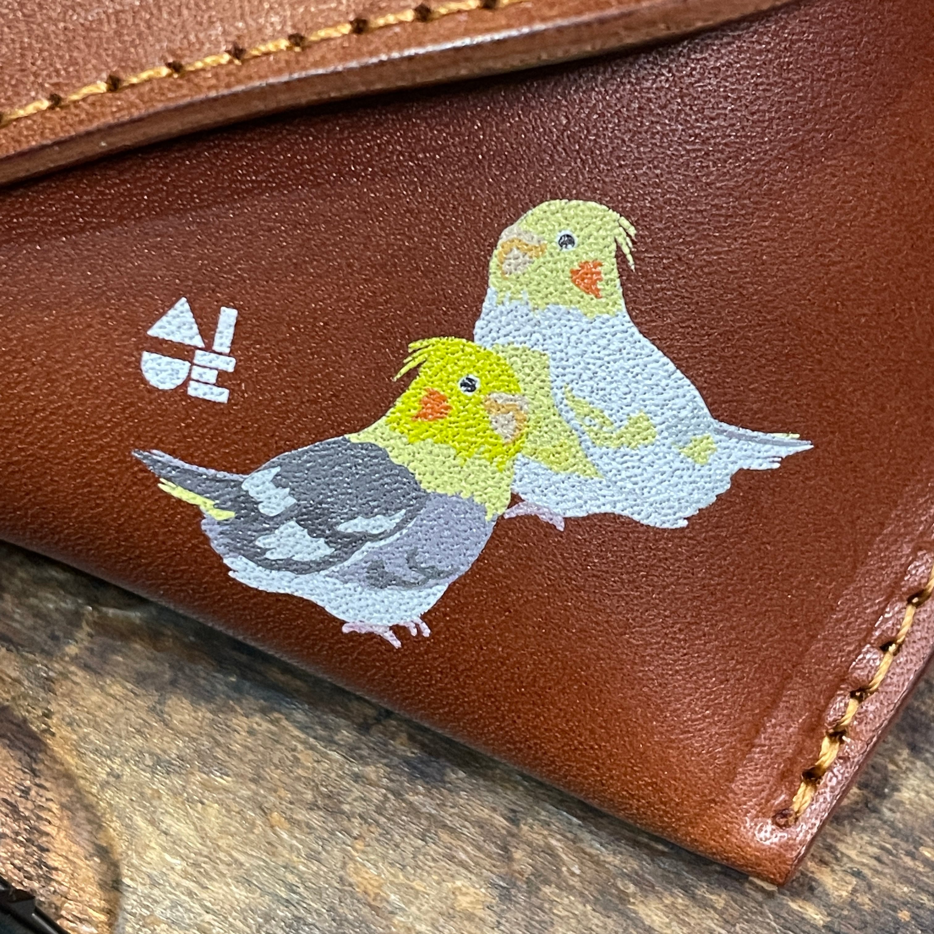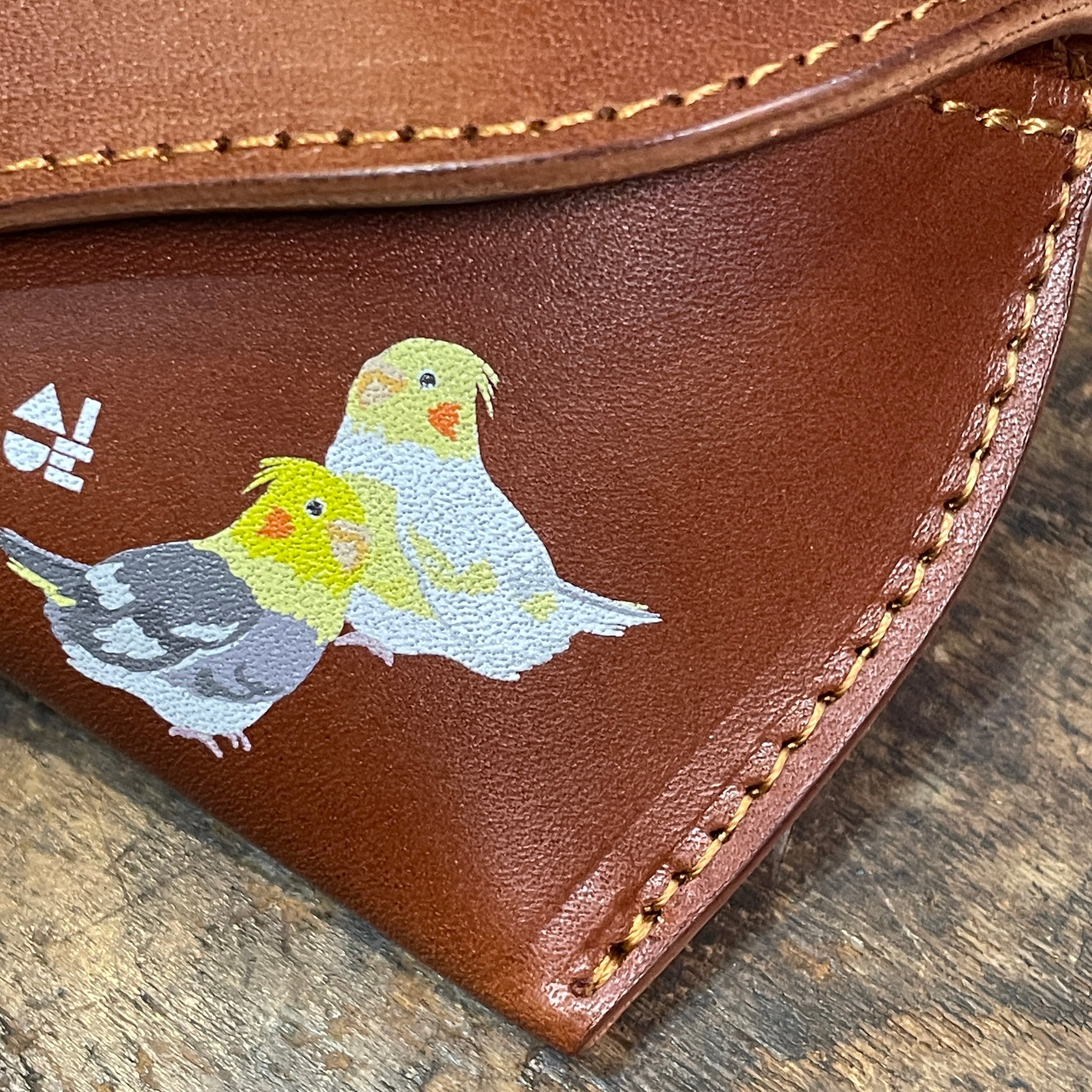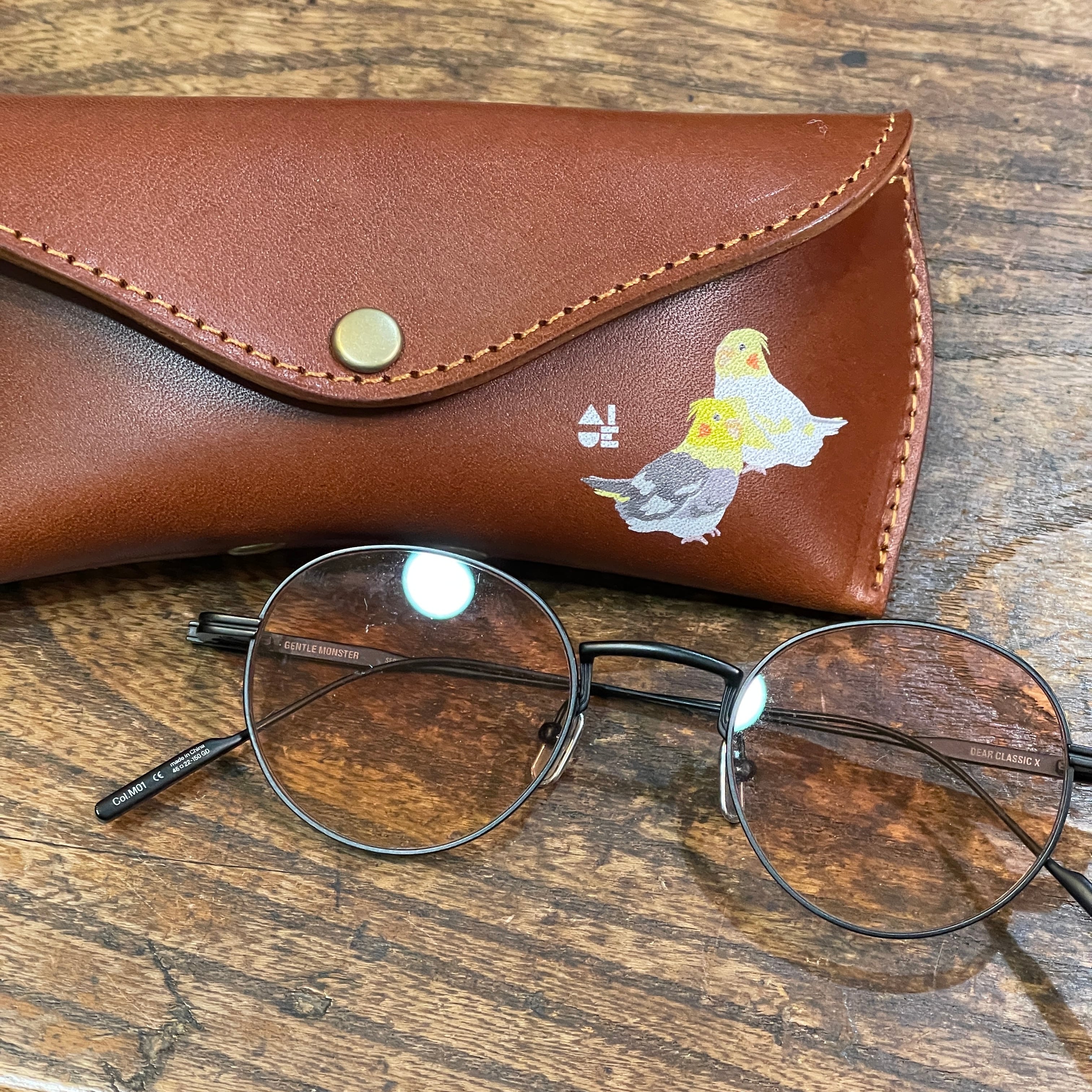 【送料無料】メガネケース オカメインコ 2羽 Brown ブラウン おかめいんこ 栃木レザー