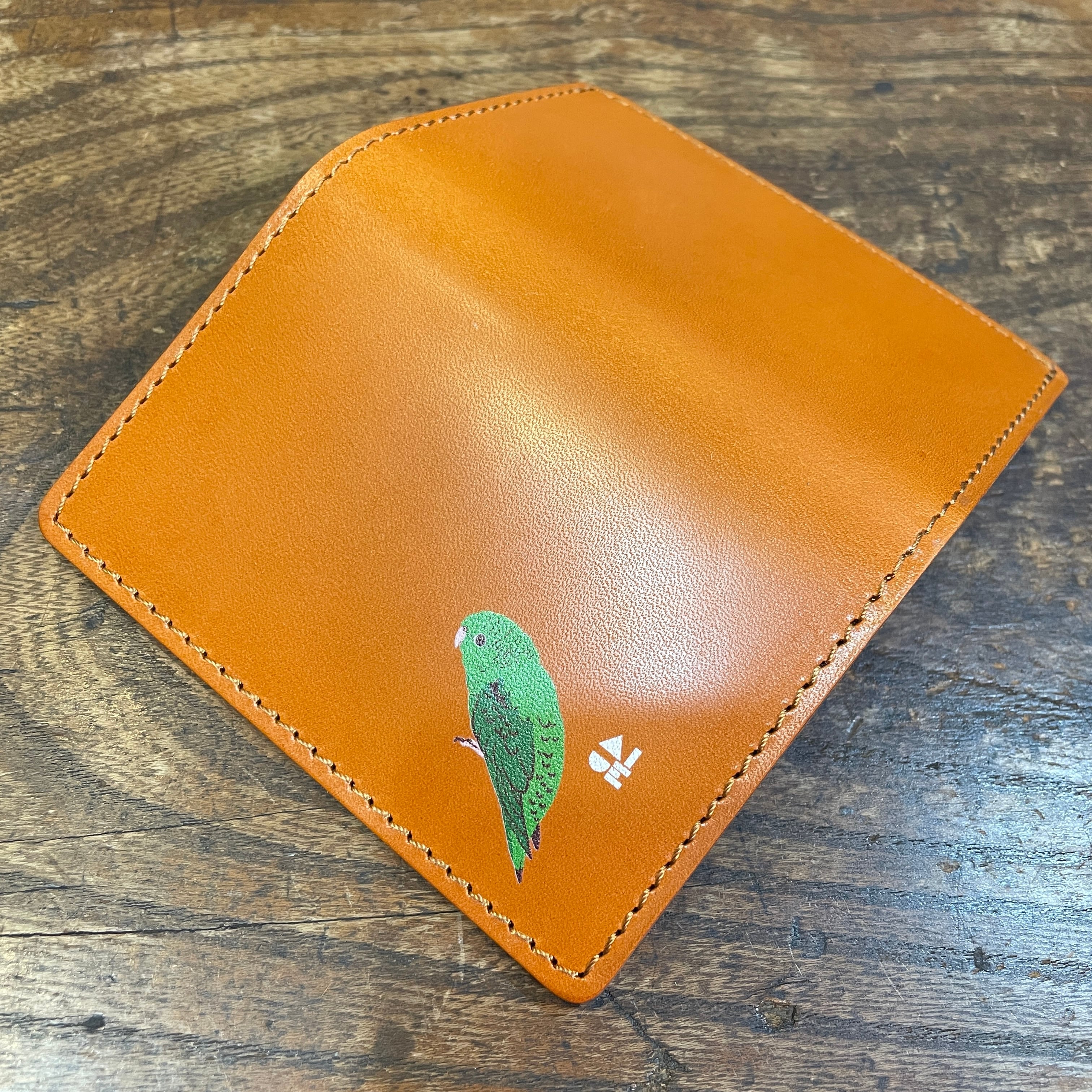 どうぞ可愛いイラストと同時に本革の経年変化をお愉しみください。