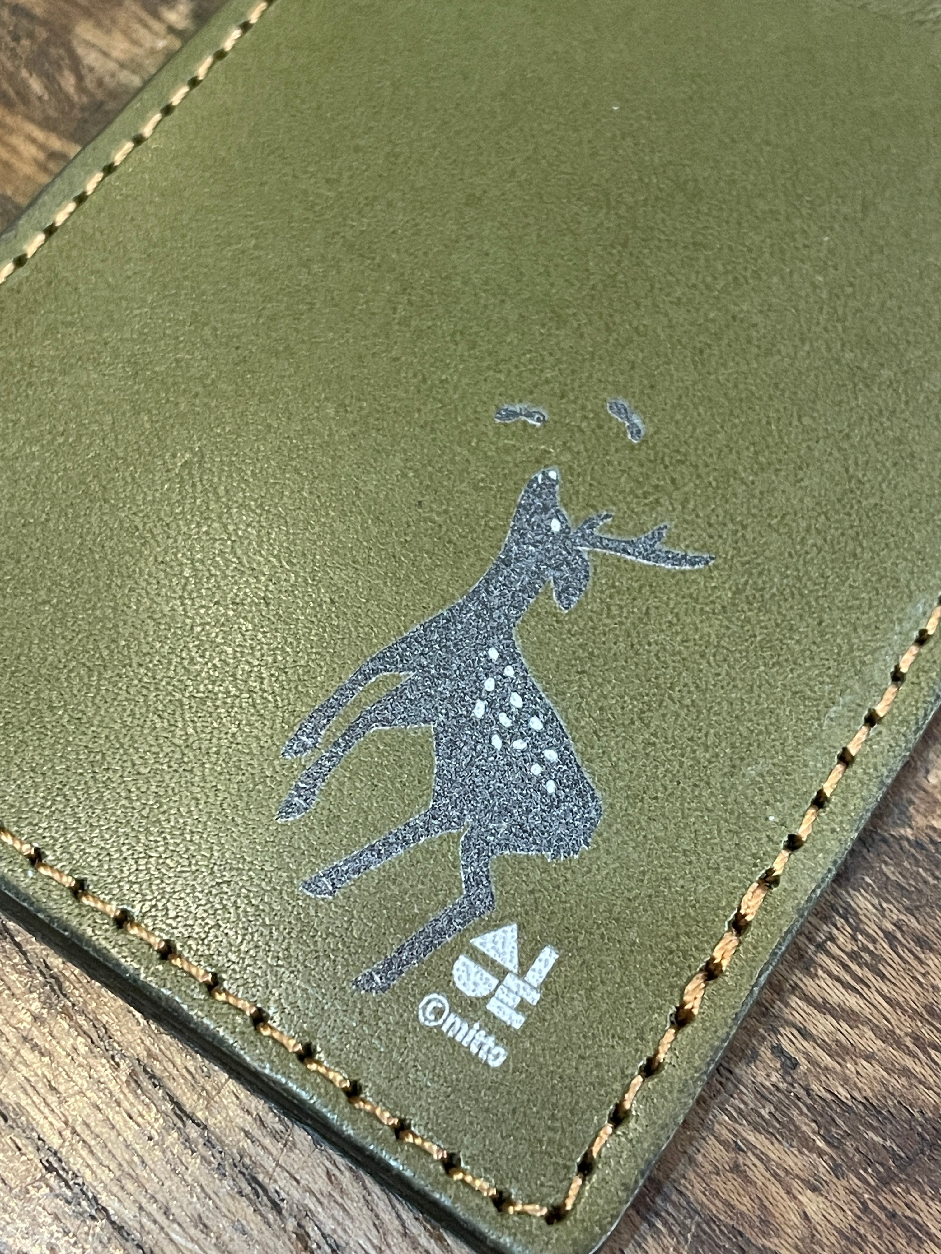 あいうえ堂オリジナルのイラストは、インクのはがれにくいUV印刷にて印刷をしています。イラストの色は、何年もほぼ褪せることもなくそのままお愉しみいただきつつ、イラストの部分以外は本革の素材感をそのまま感じていただけます。どうぞ経年変化をお愉しみください。