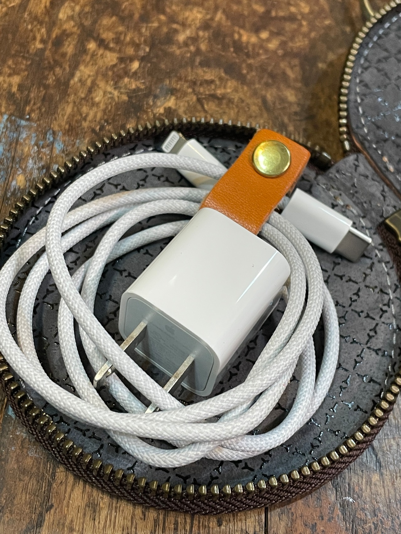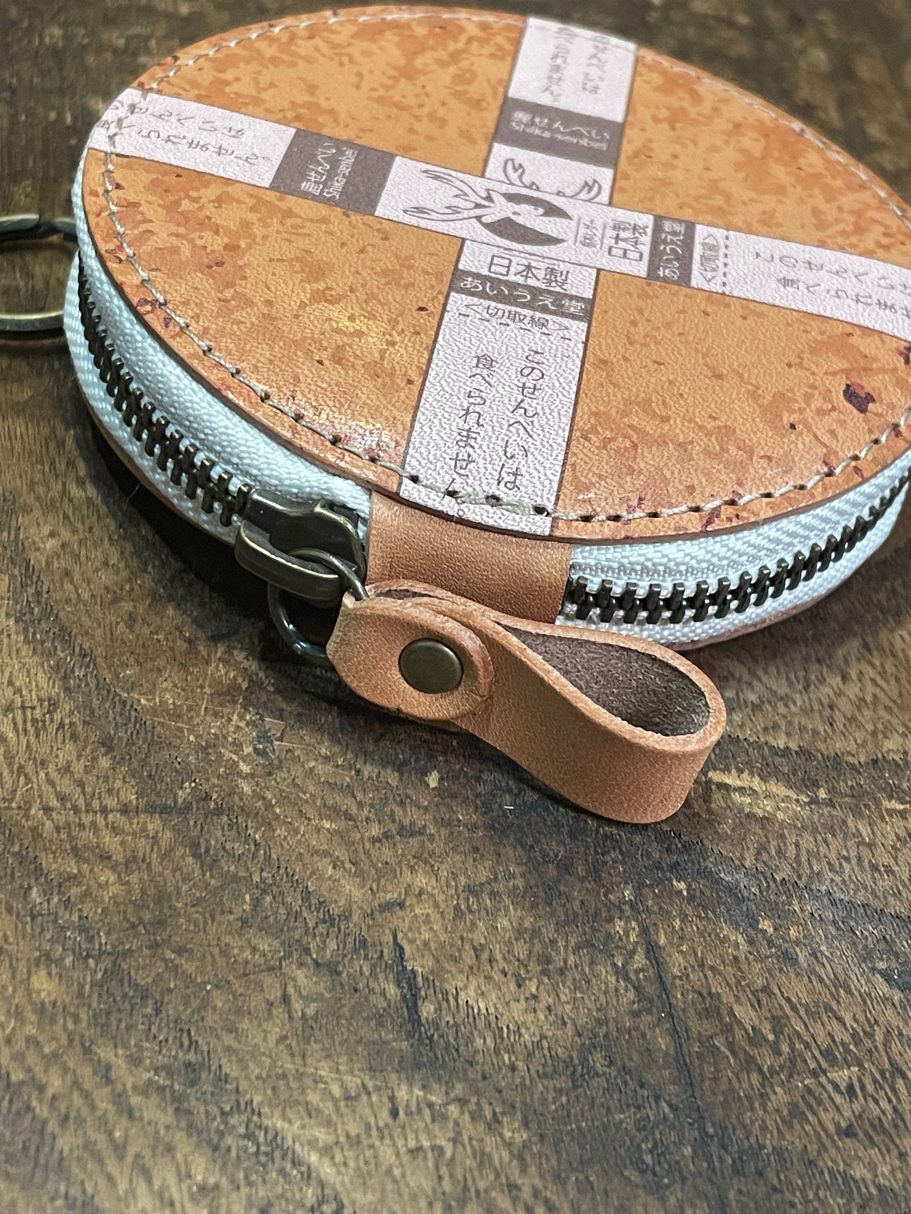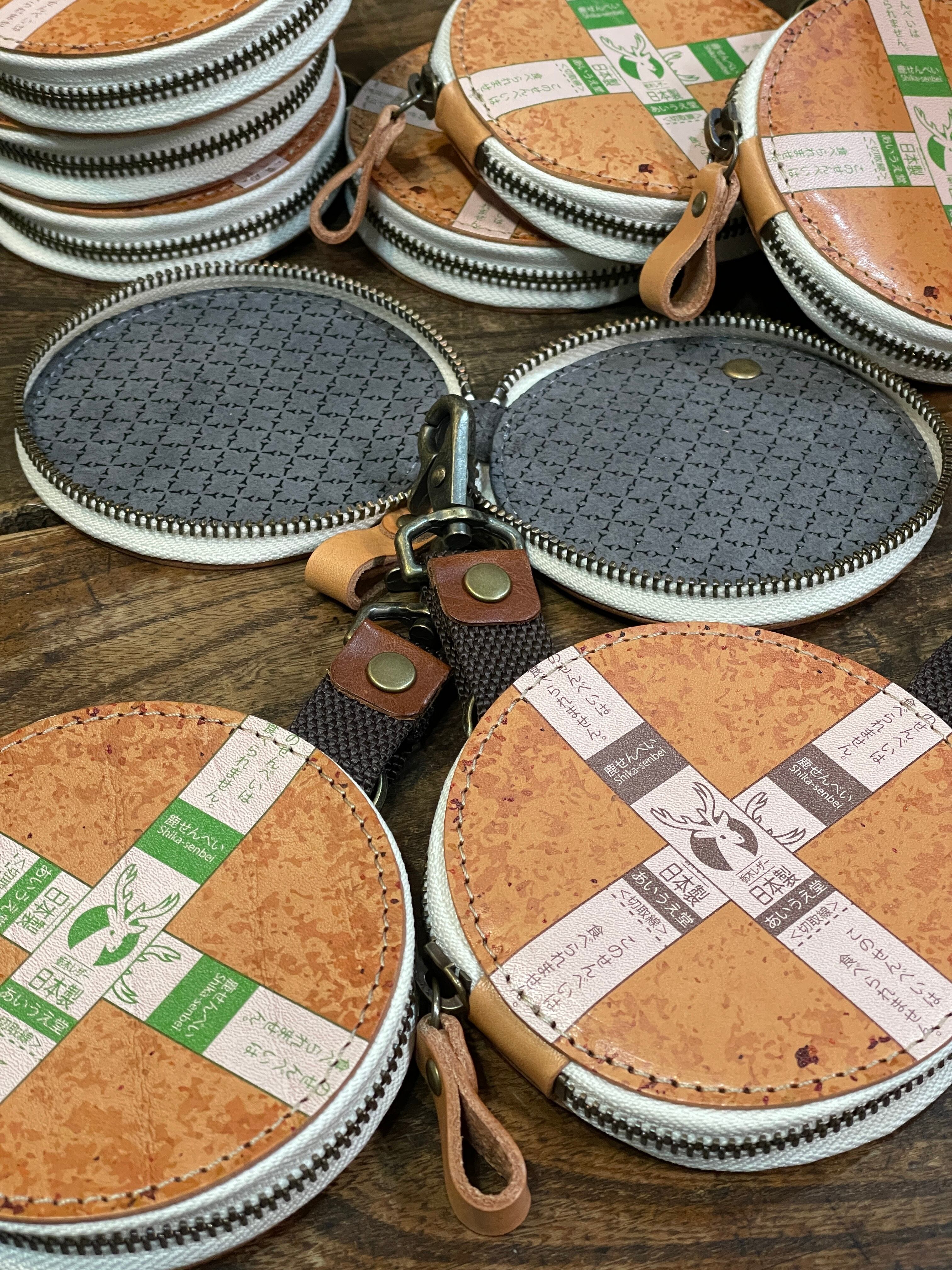 おせんべいの束感を出したくて、横から見た時にも煎餅が重なっているように、5枚の革を重ね合わせています。