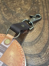 女性の手のひらにもおさまるサイズの、Φ60ミリのキーホルダー。