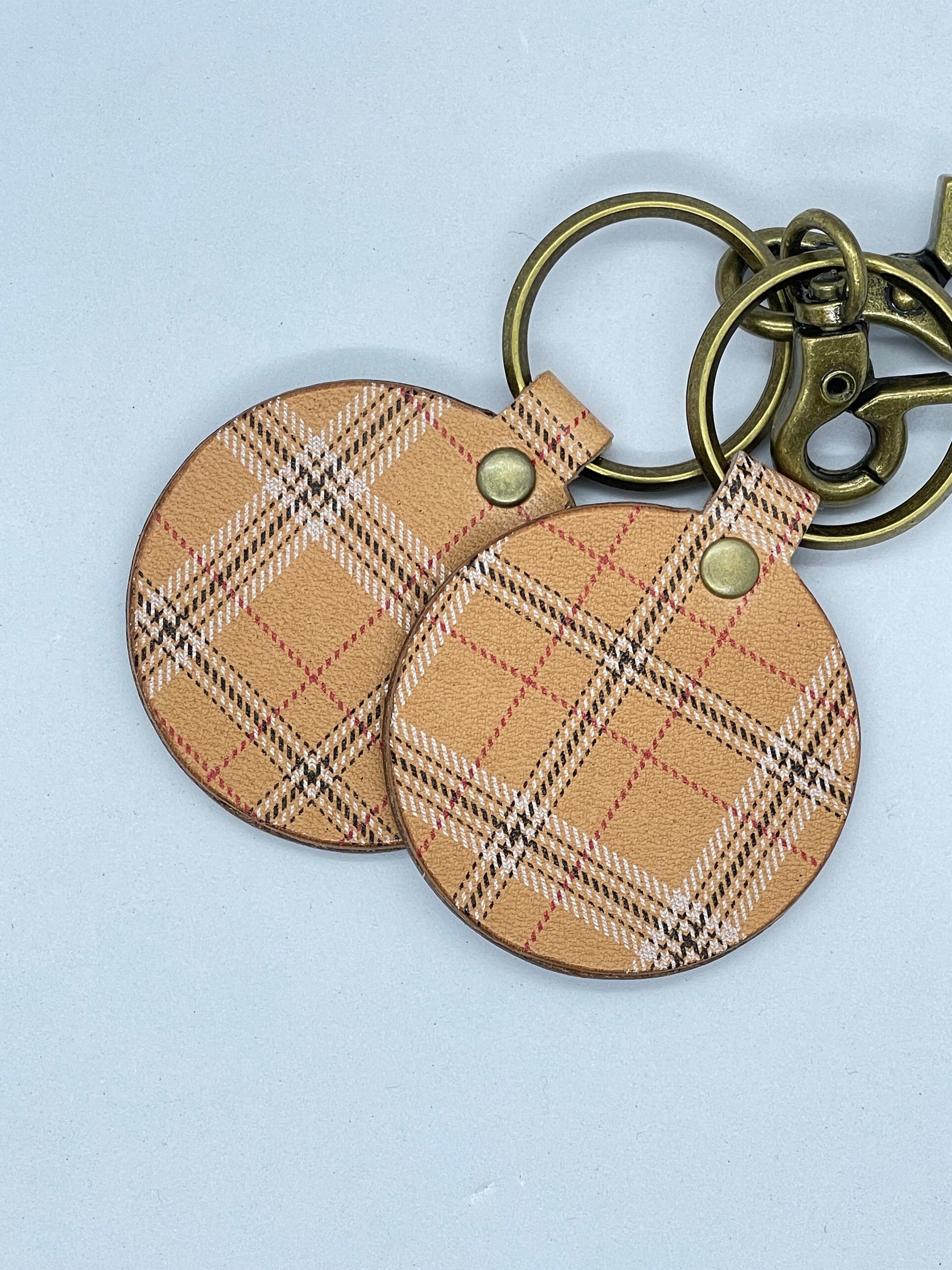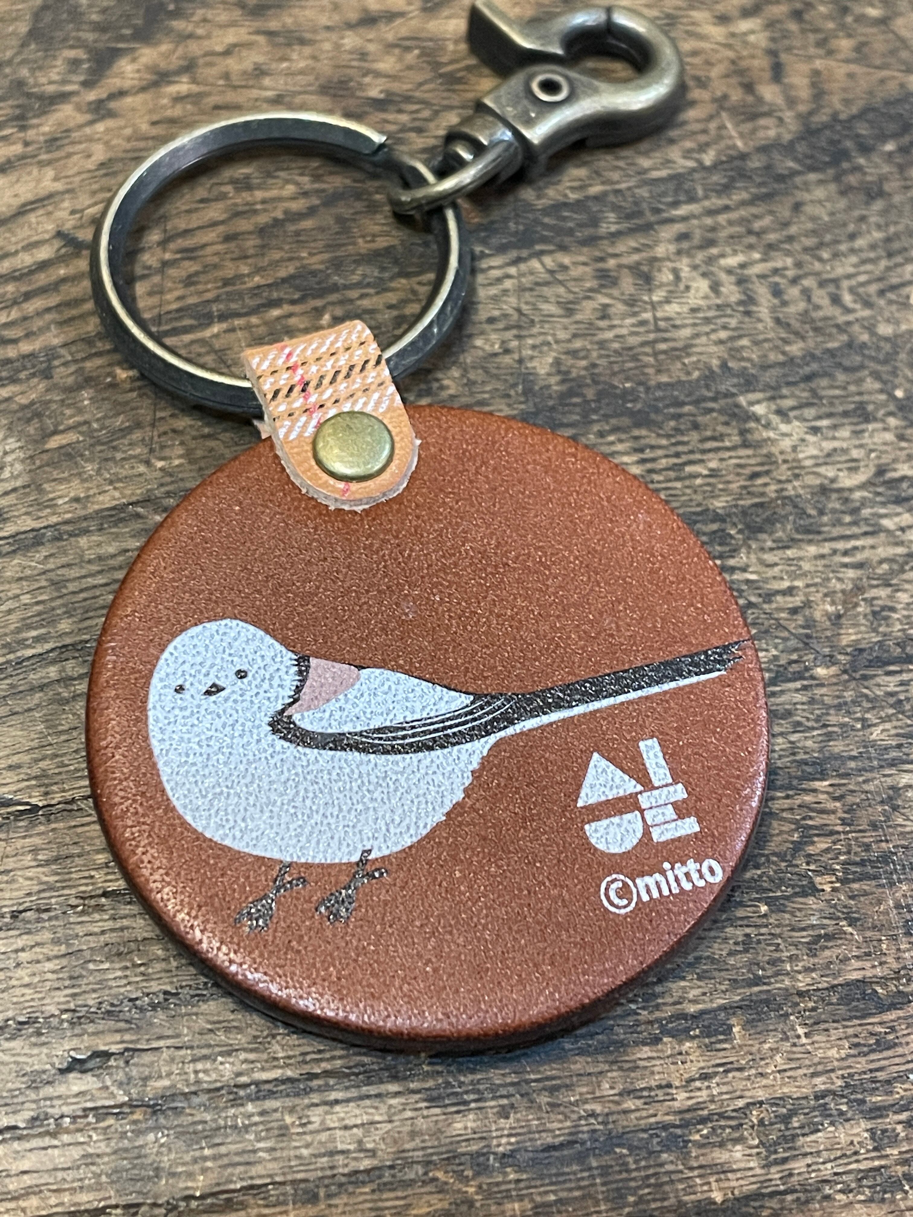 キーホルダー シマエナガ ブラウン ( ベージュ タータンチェック )栃木レザー しまえなが