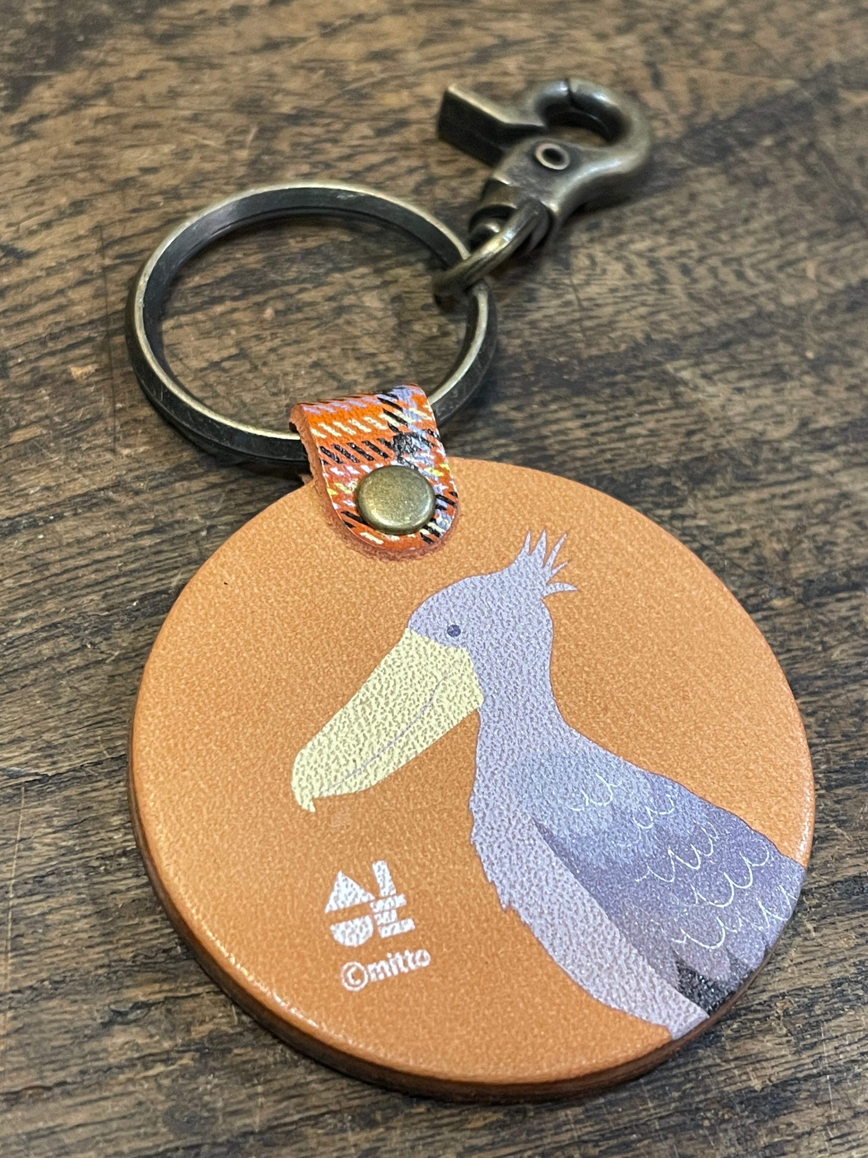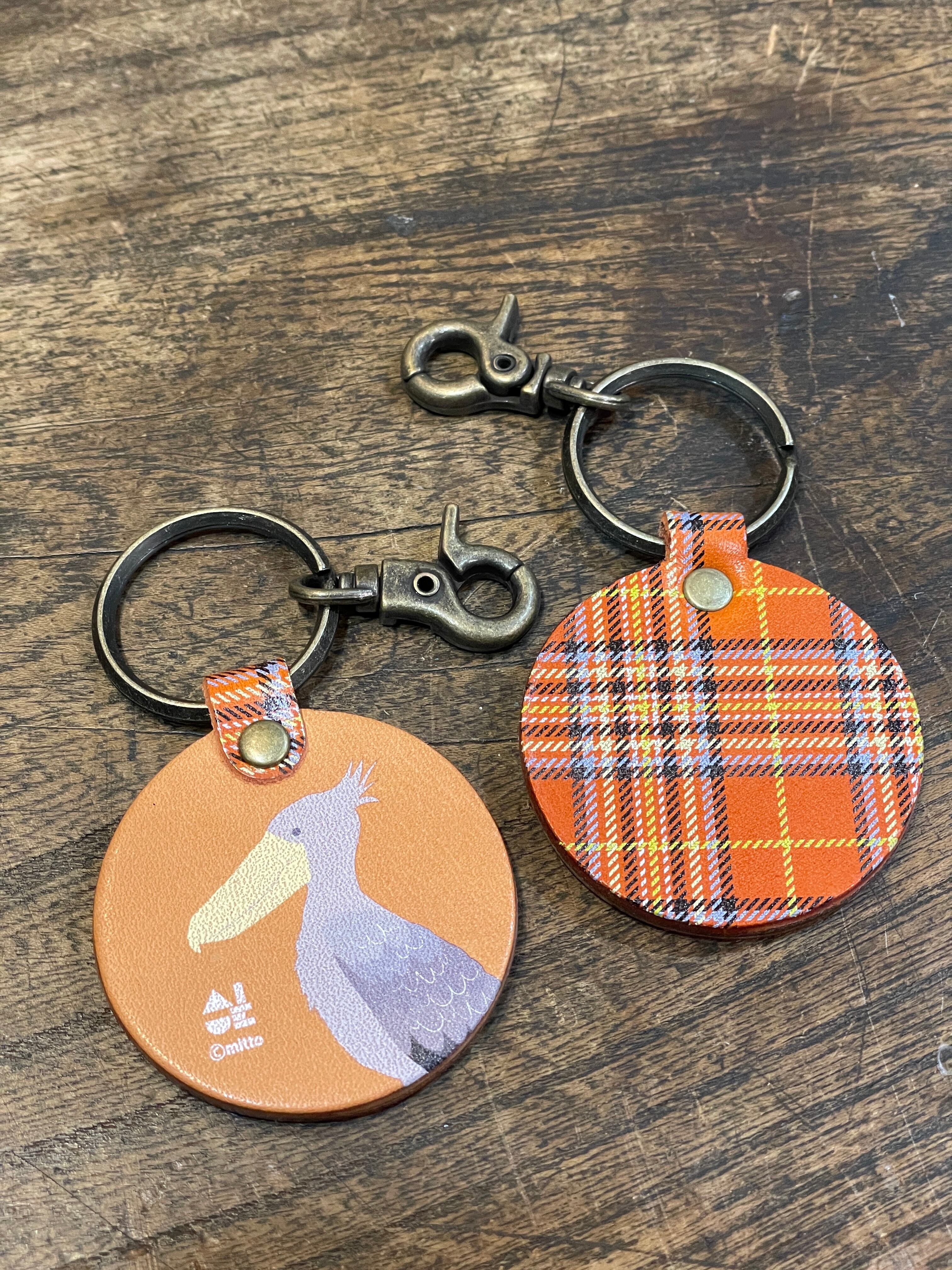 キーホルダー ハシビロコウ ベージュ ( レッドブラウン タータンチェック )栃木レザー はしびろこう