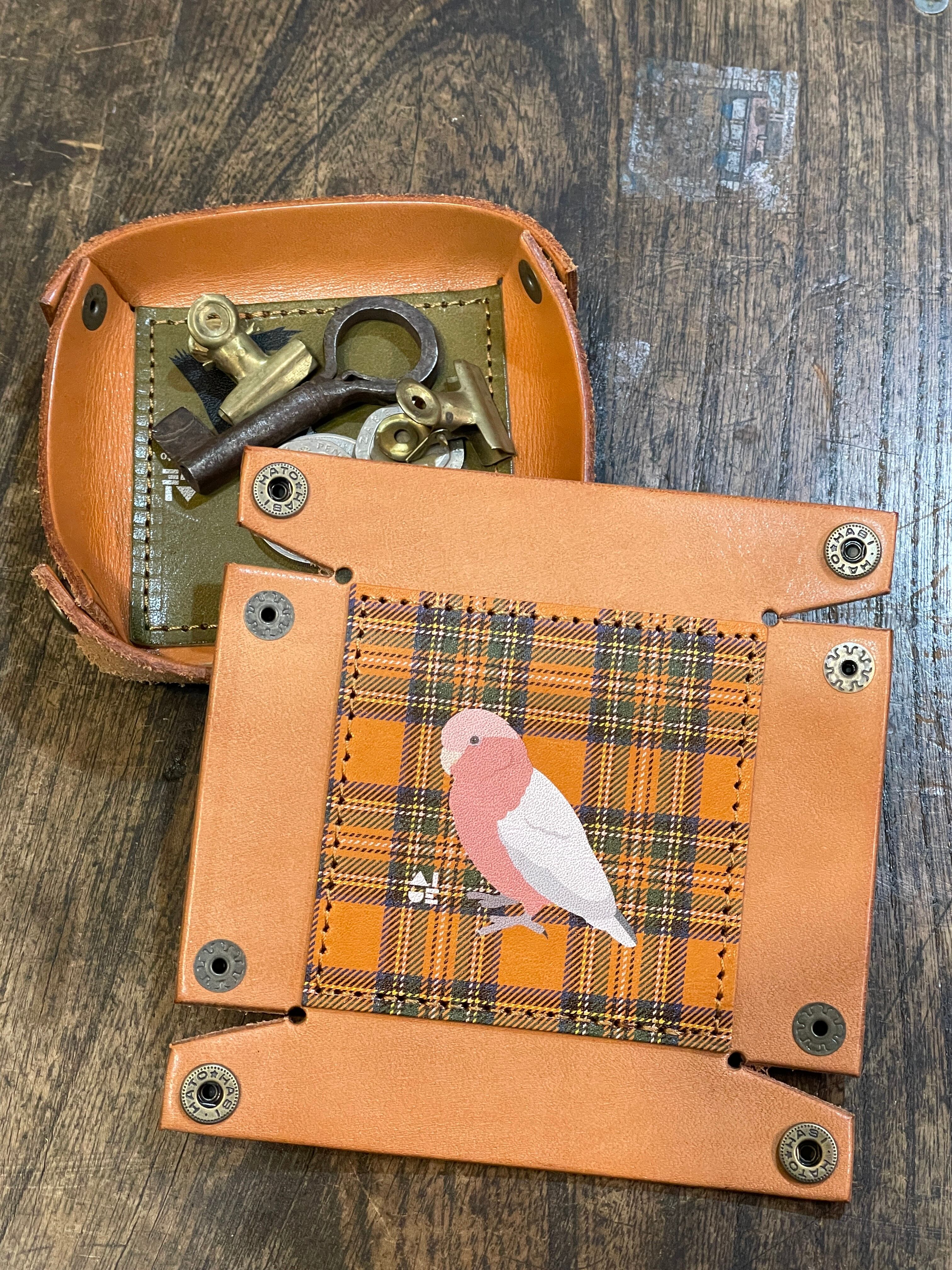 レザートレイ モモイロインコ キャメル タータンチェック 栃木レザー