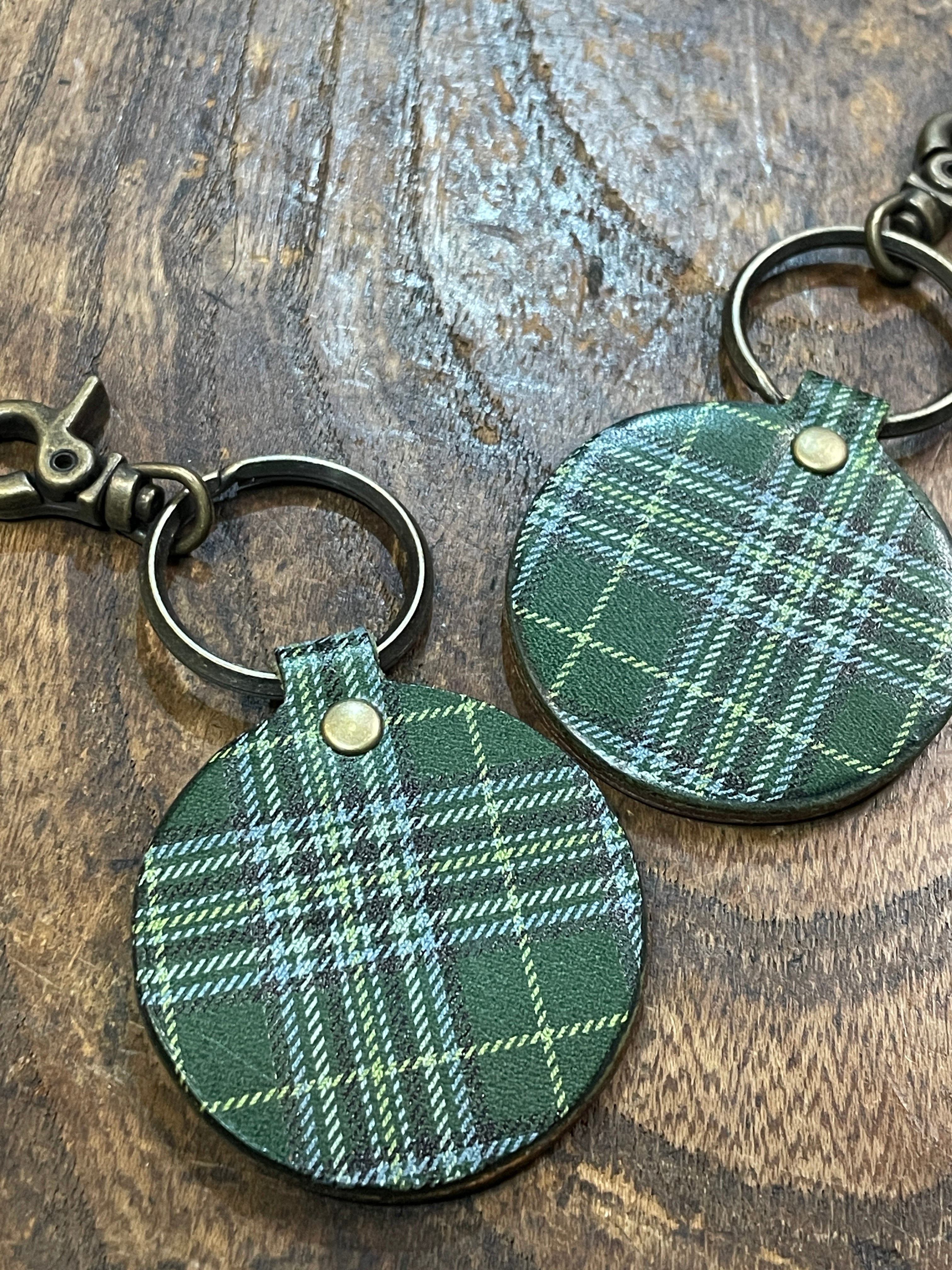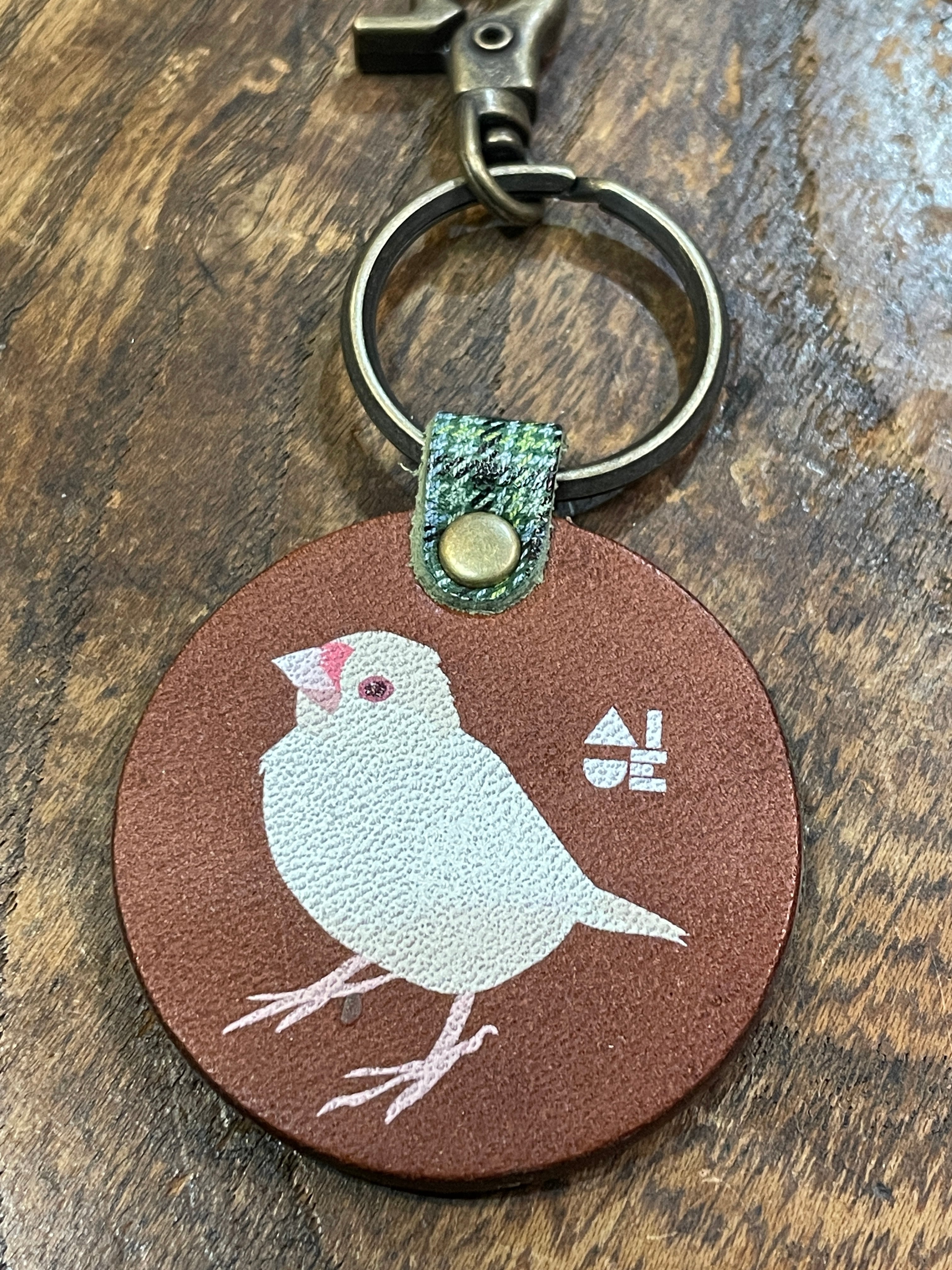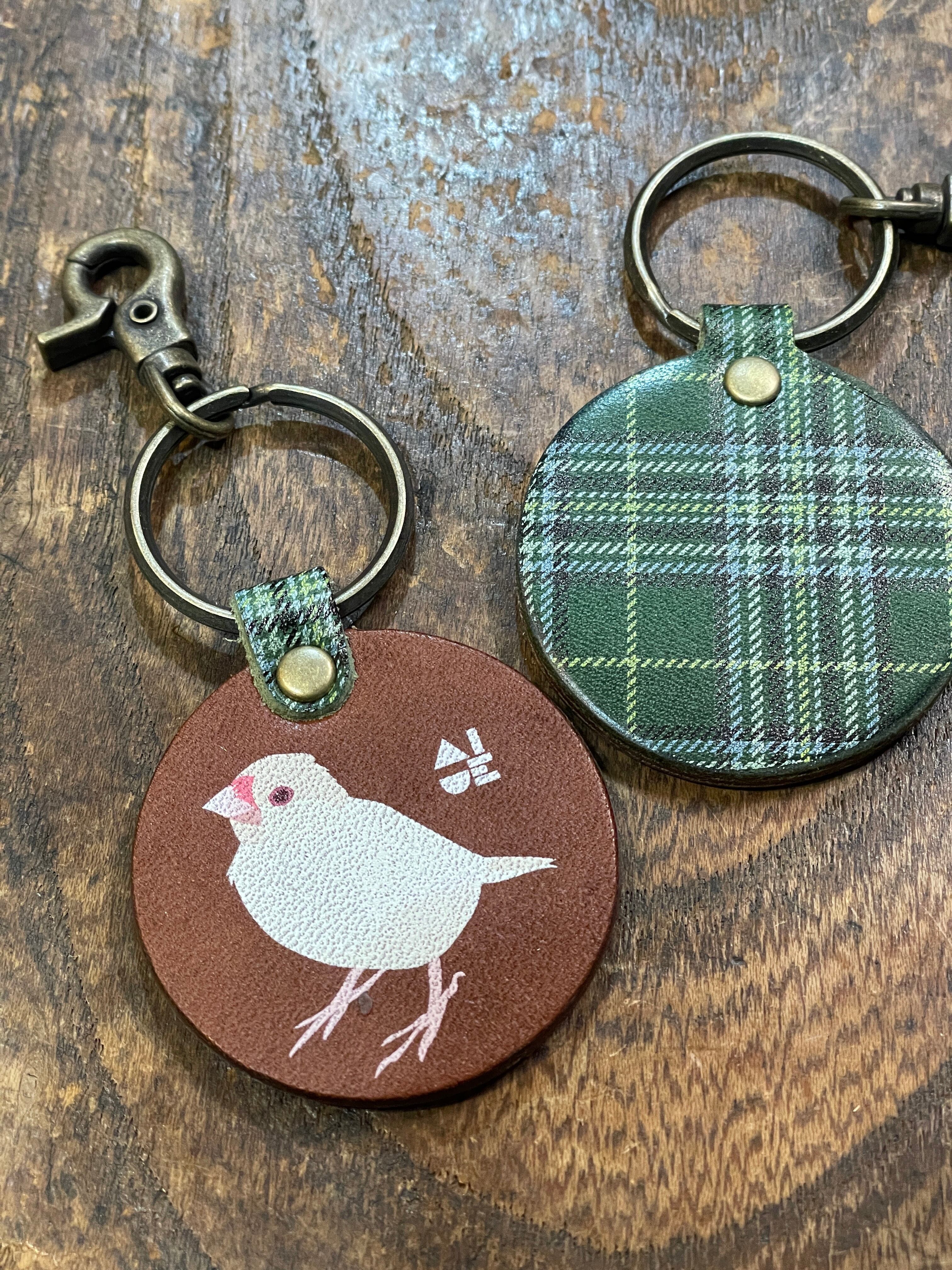 キーホルダー 文鳥 クリーム文鳥  ブラウン ( ダークグリーン タータンチェック )栃木レザー ぶんちょう