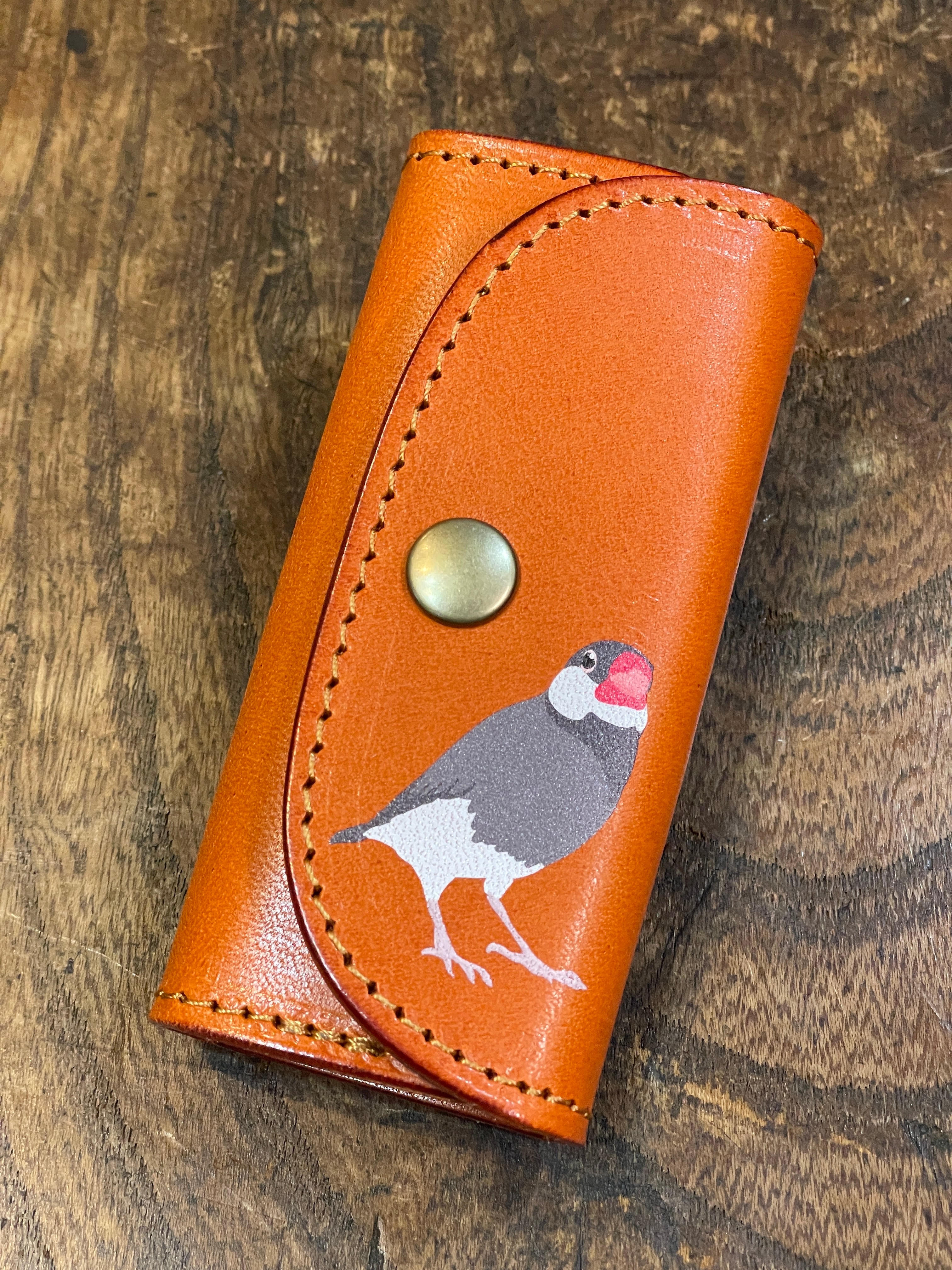 スリムキーケース 桜文鳥 & 白文鳥 レッドブラウン RedBrown ぶんちょう ブンチョウ