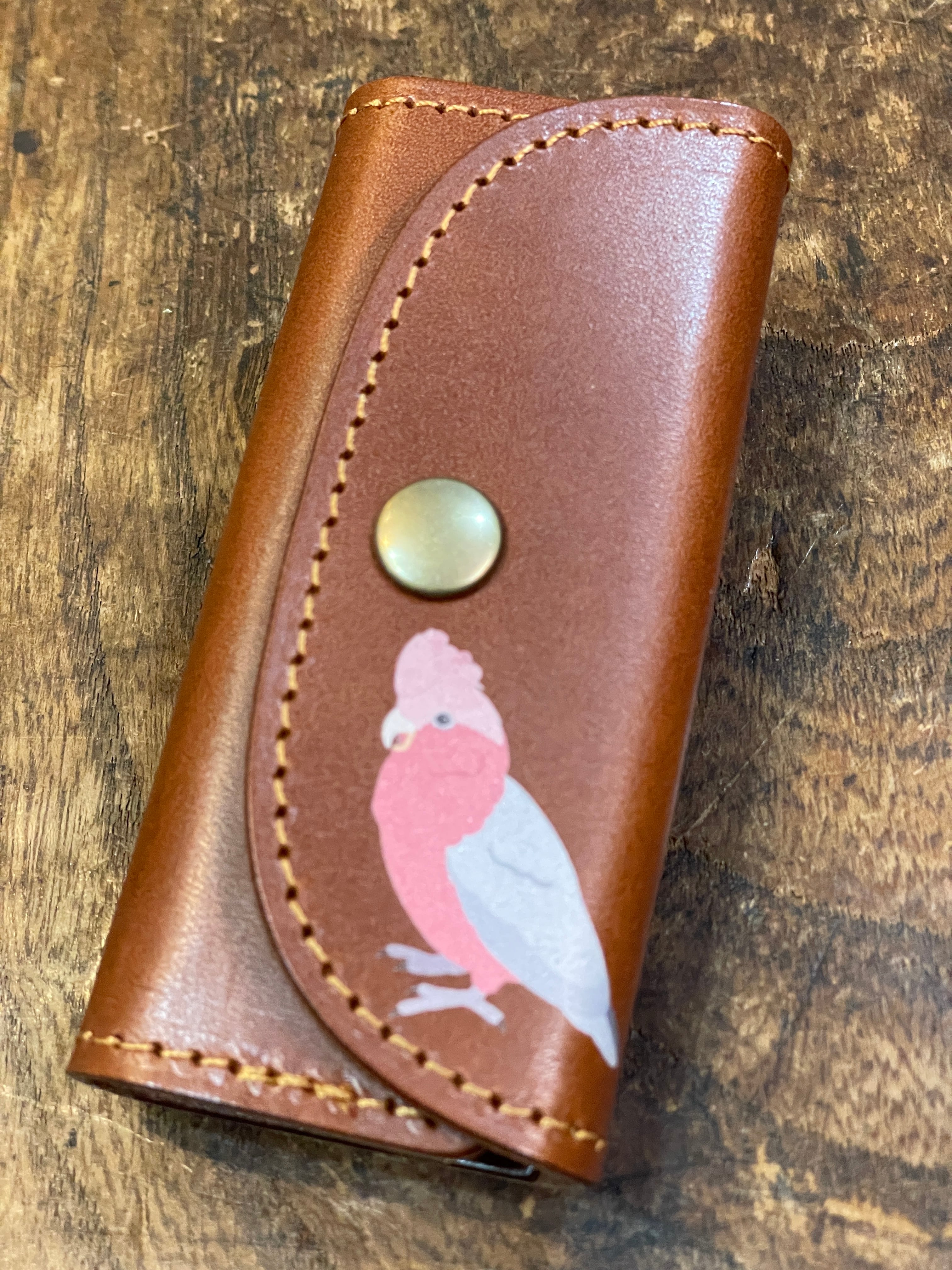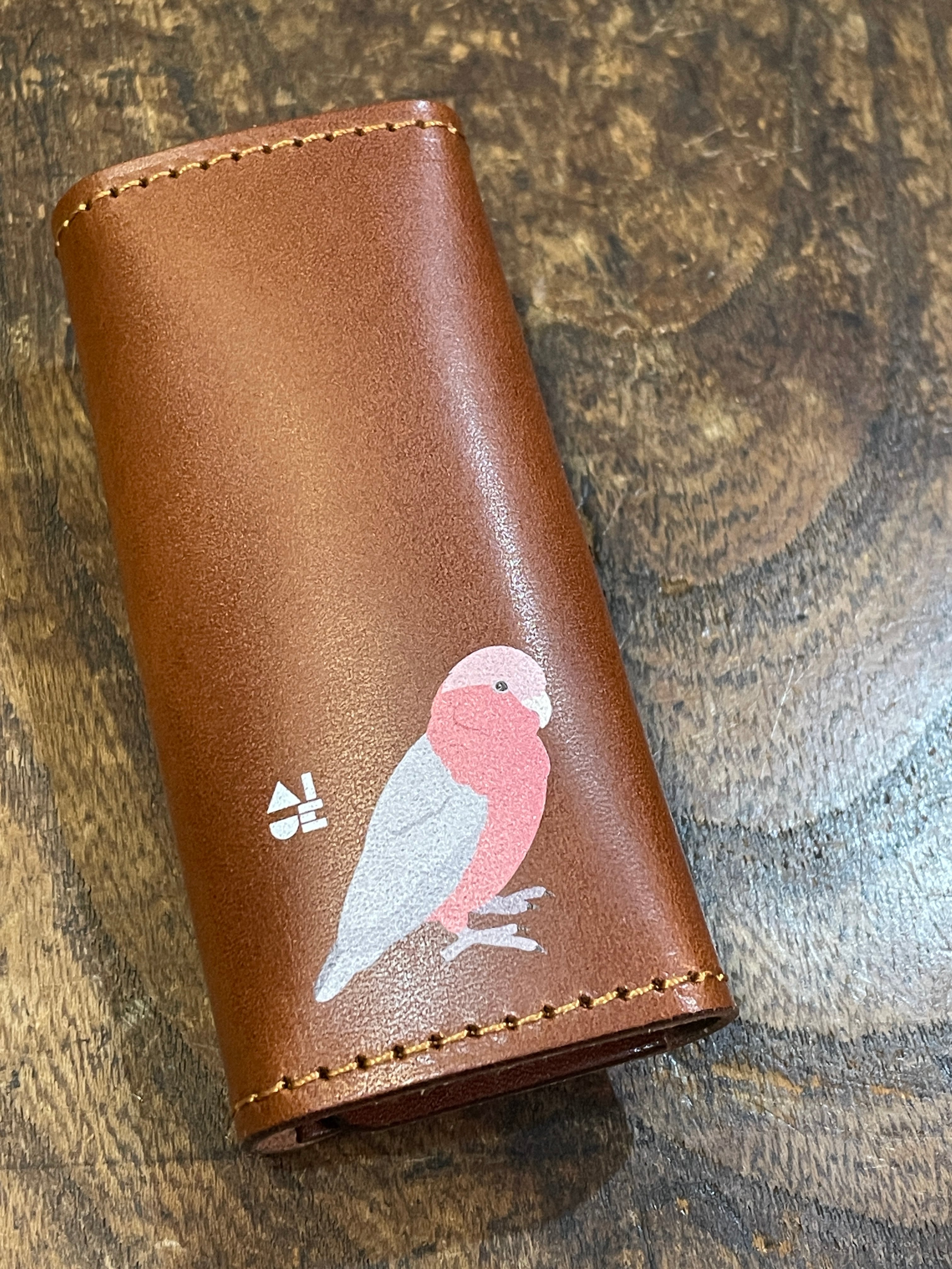 どうぞ可愛いイラストと同時に本革の経年変化をお愉しみください。