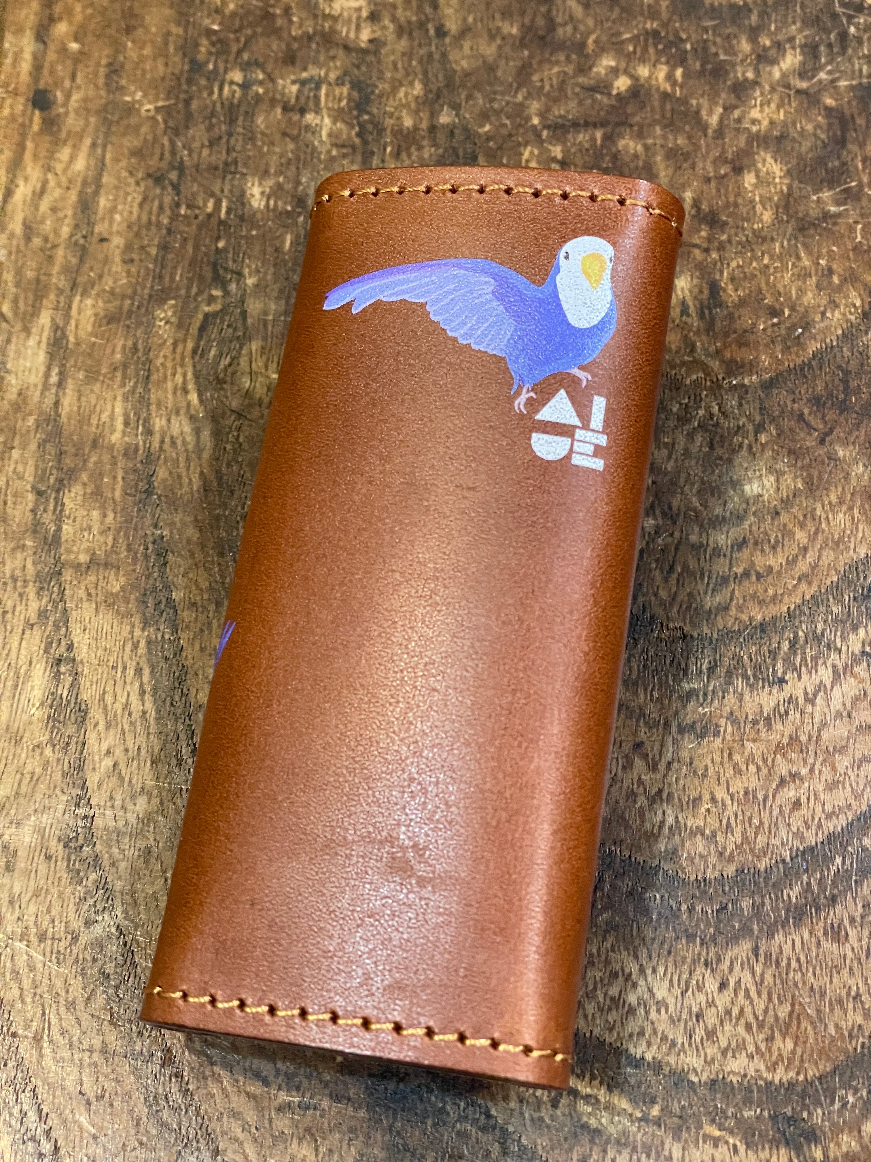 あいうえ堂オリジナルのイラストはインクのはがれにくいUV印刷にて印刷をしています。イラストの色は、何年もほぼ褪せることもなくそのままお愉しみいただきつつ、イラストの部分以外は本革の素材感をそのまま感じていただけます。