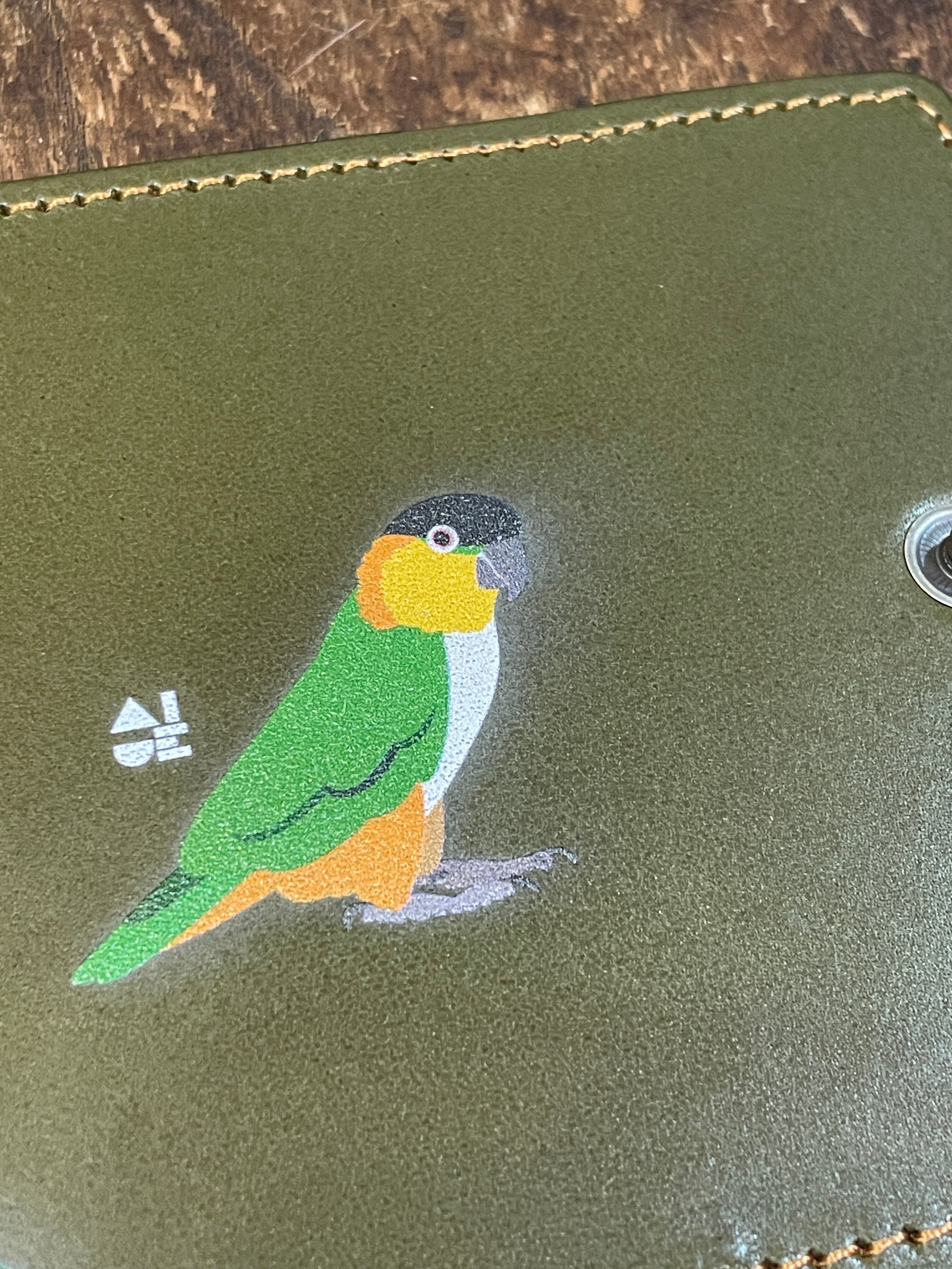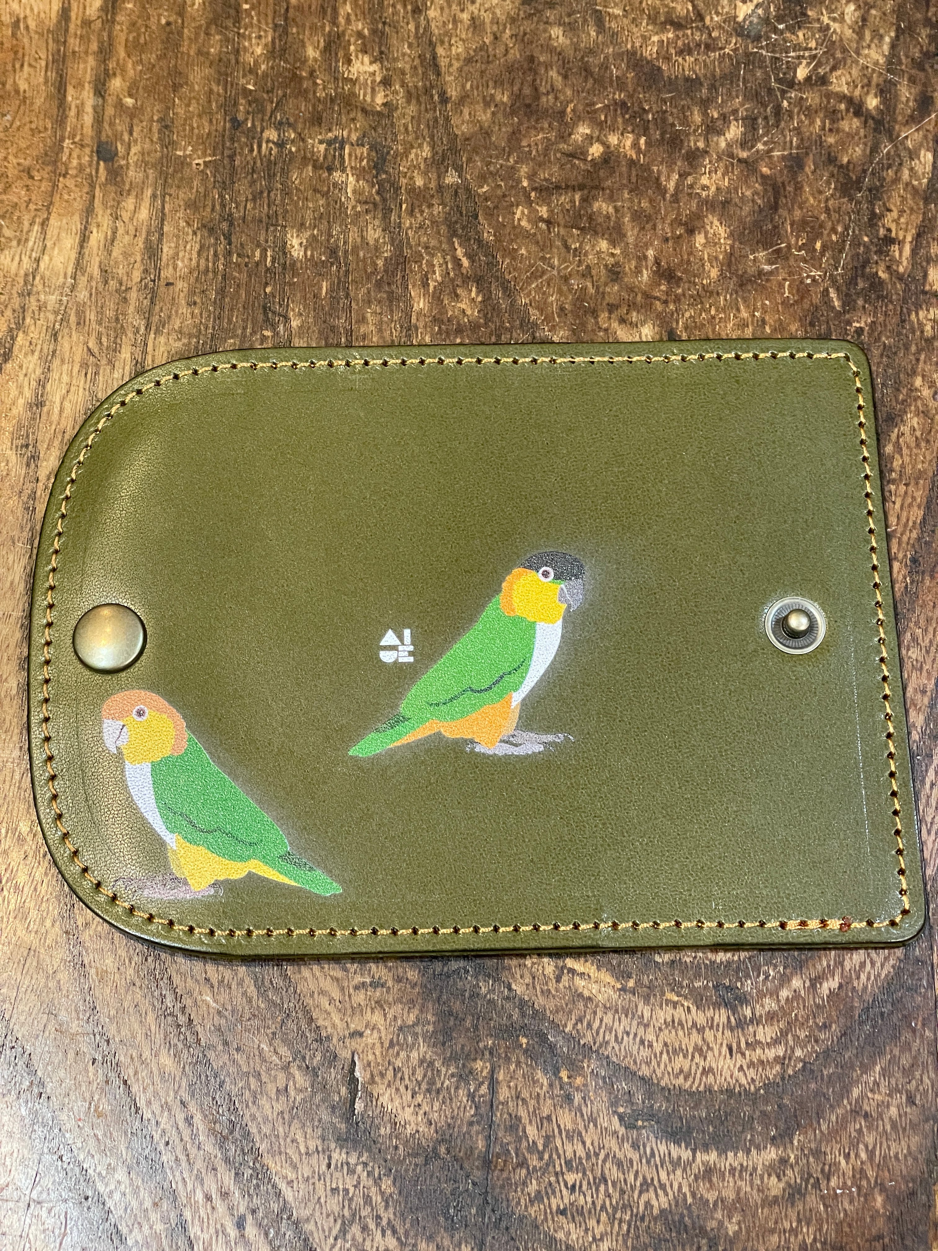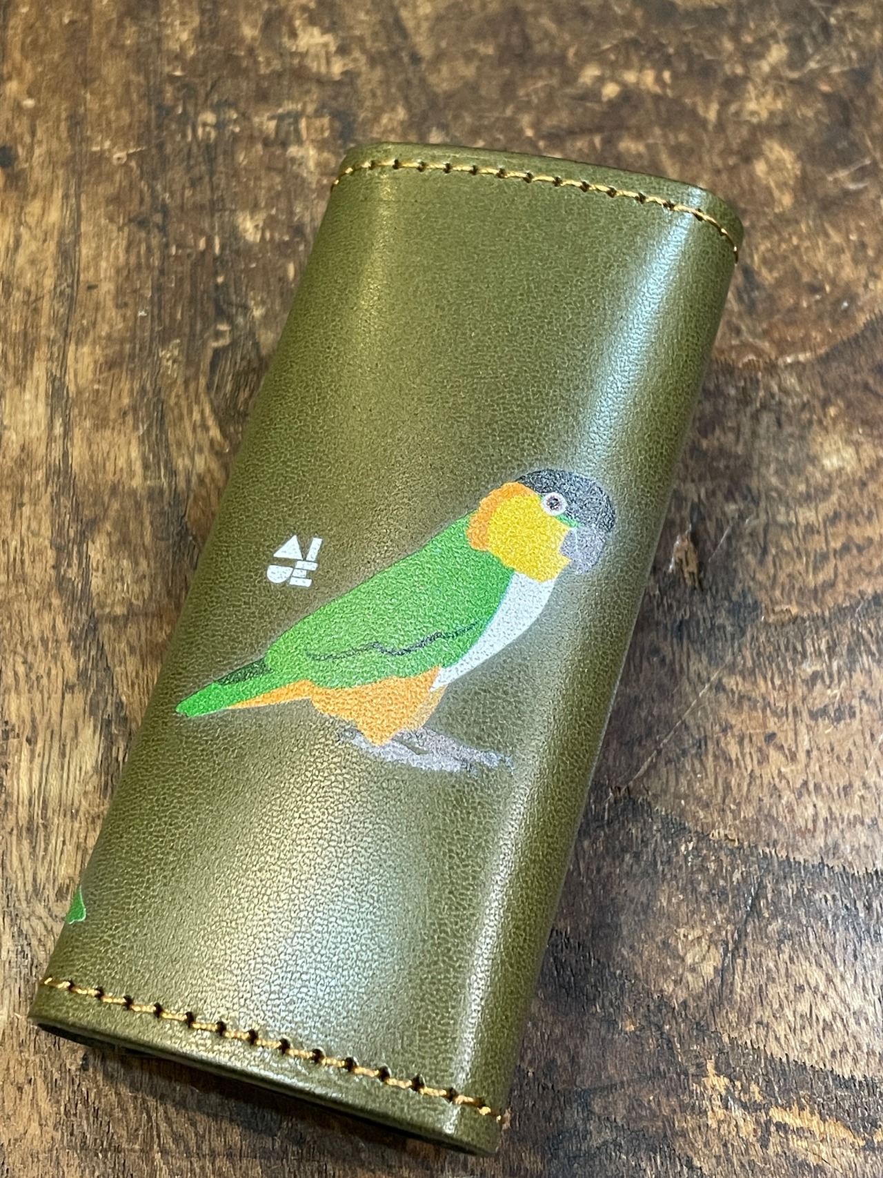 どうぞ可愛いイラストと同時に本革の経年変化をお愉しみください。