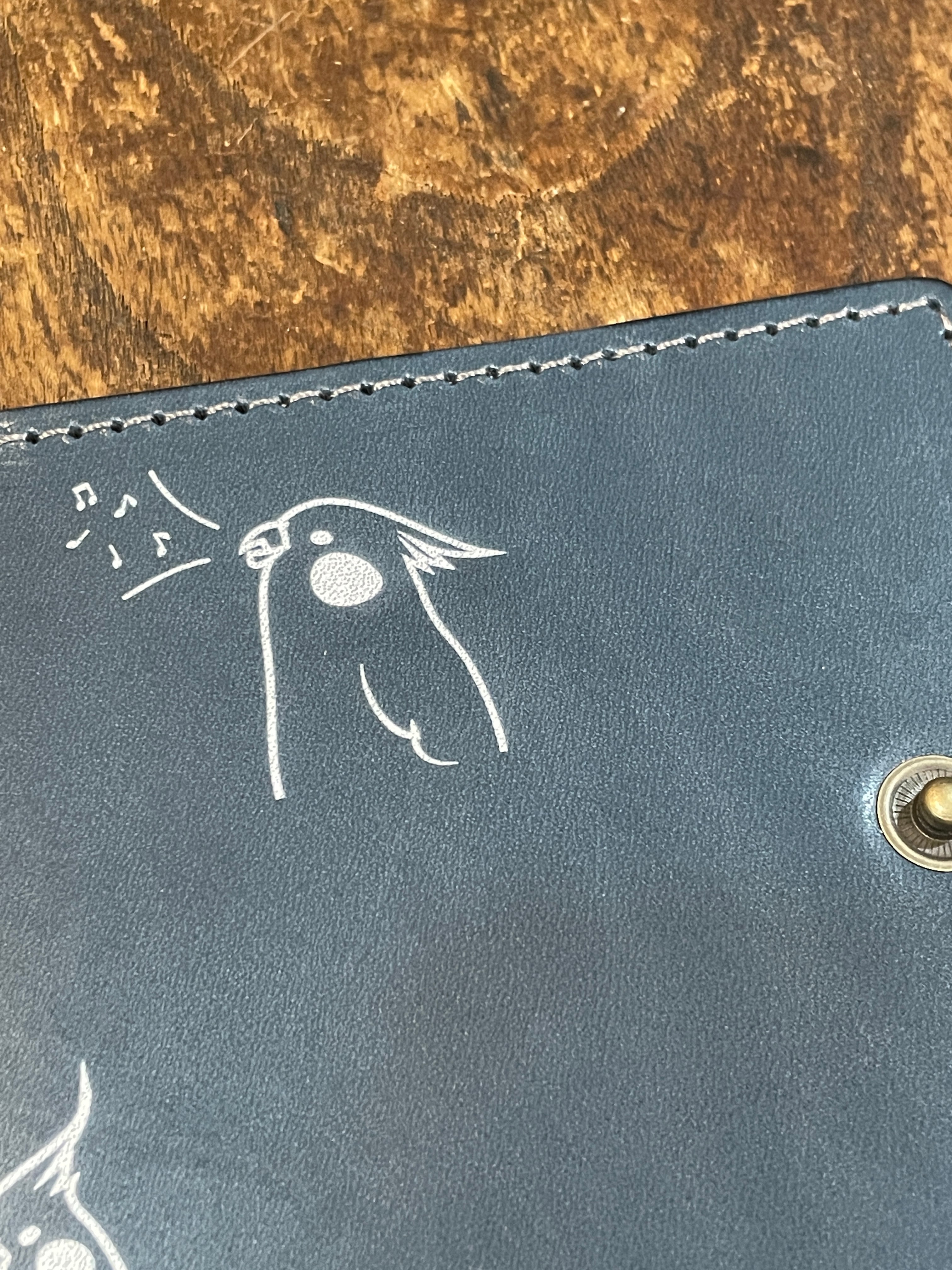 あいうえ堂オリジナルのイラストはインクのはがれにくいUV印刷にて印刷をしています。イラストの色は、何年もほぼ褪せることもなくそのままお愉しみいただきつつ、イラストの部分以外は本革の素材感をそのまま感じていただけます。
