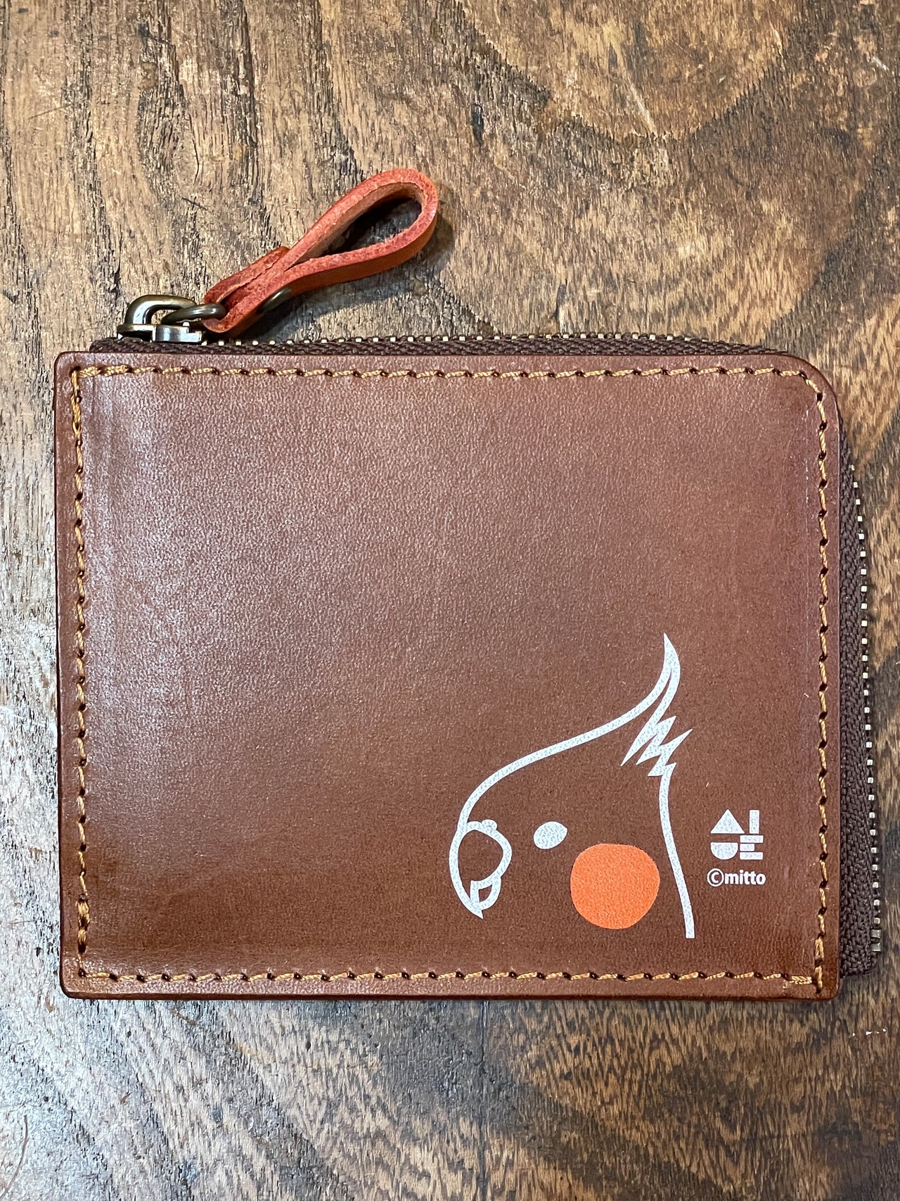 どうぞ可愛いイラストと同時に本革の経年変化をお愉しみください。