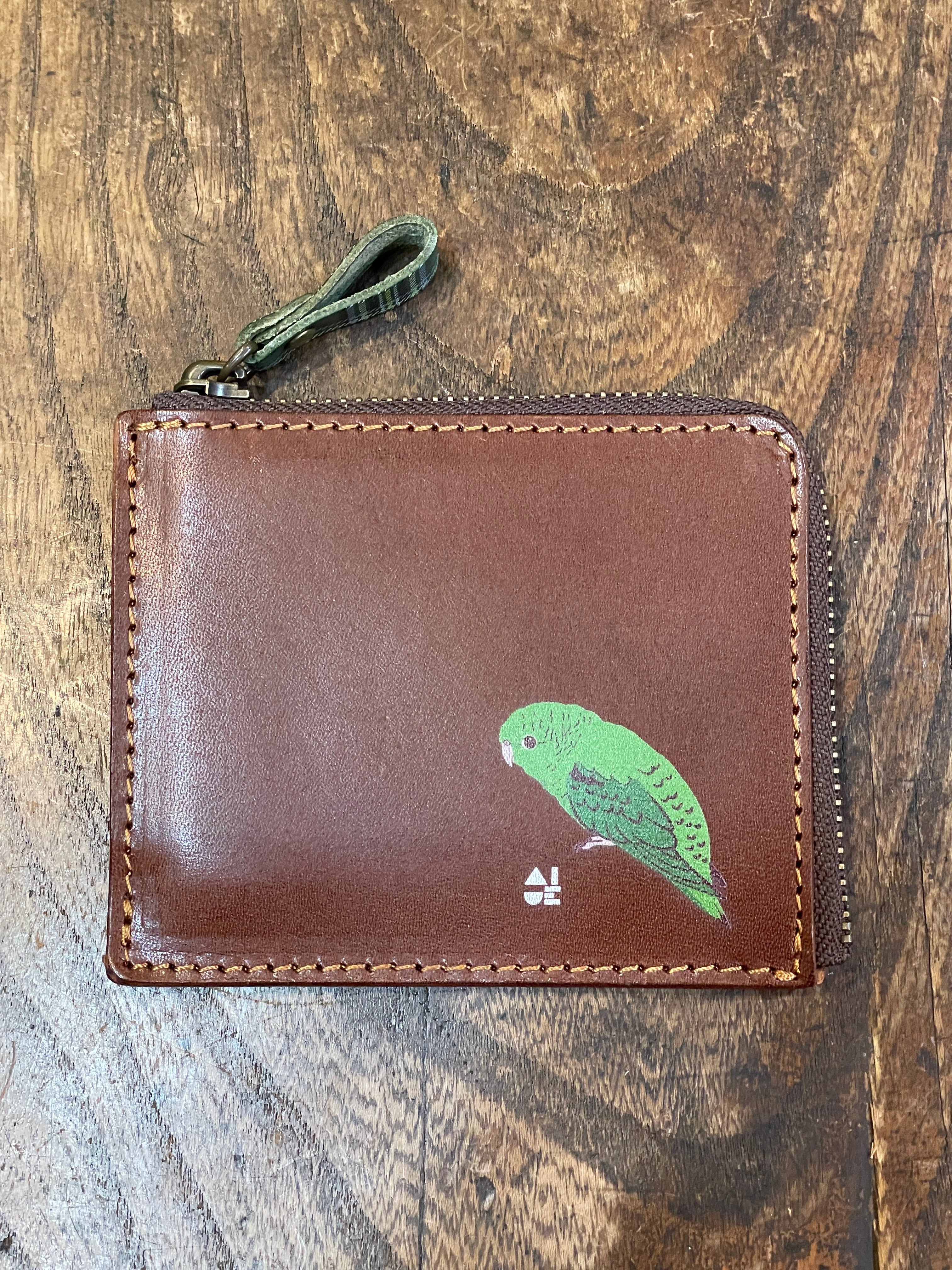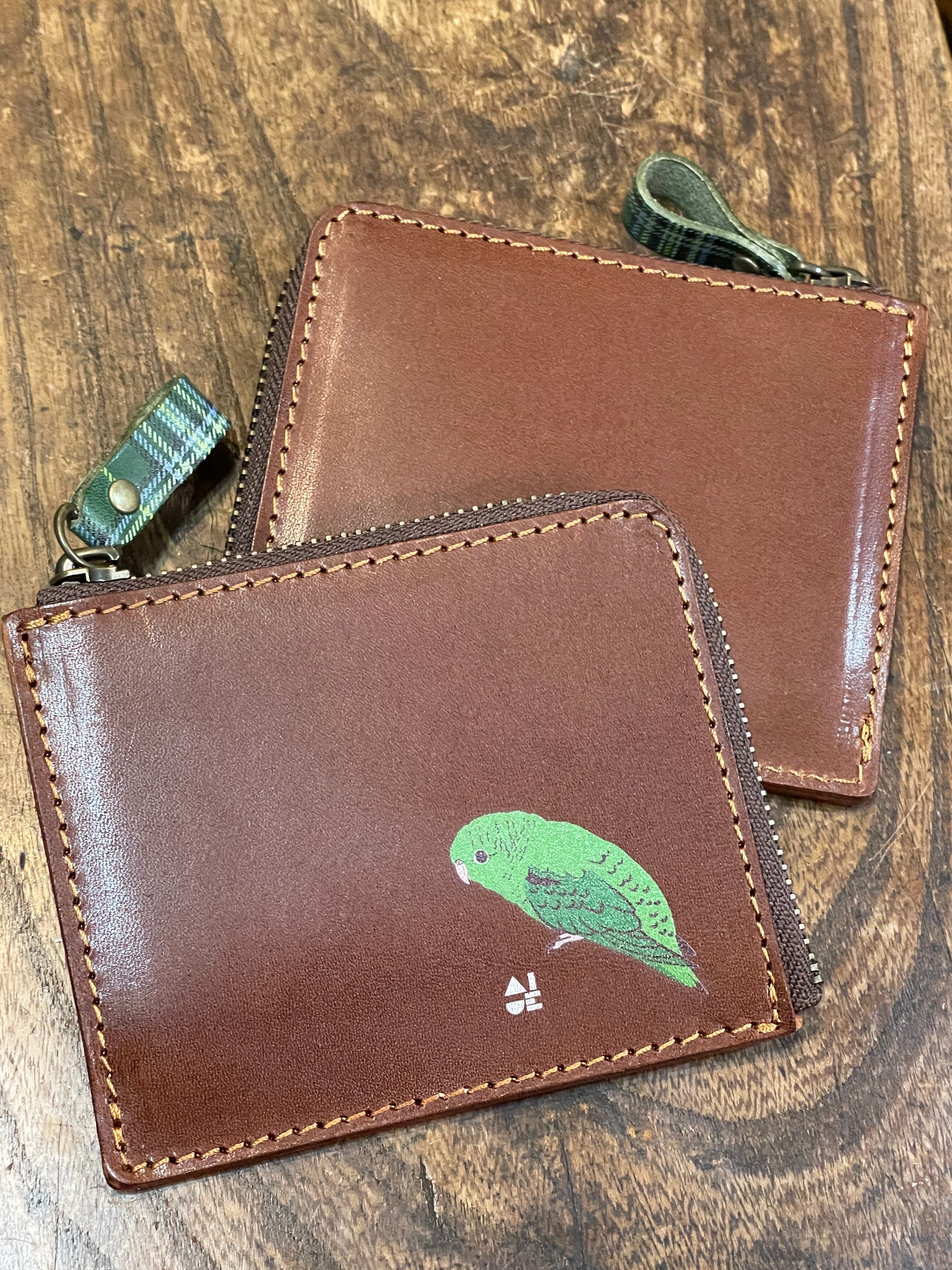 【送料無料】 L字ファスナー財布 ブラウン サザナミインコ ノーマル グリーン 財布 栃木レザー