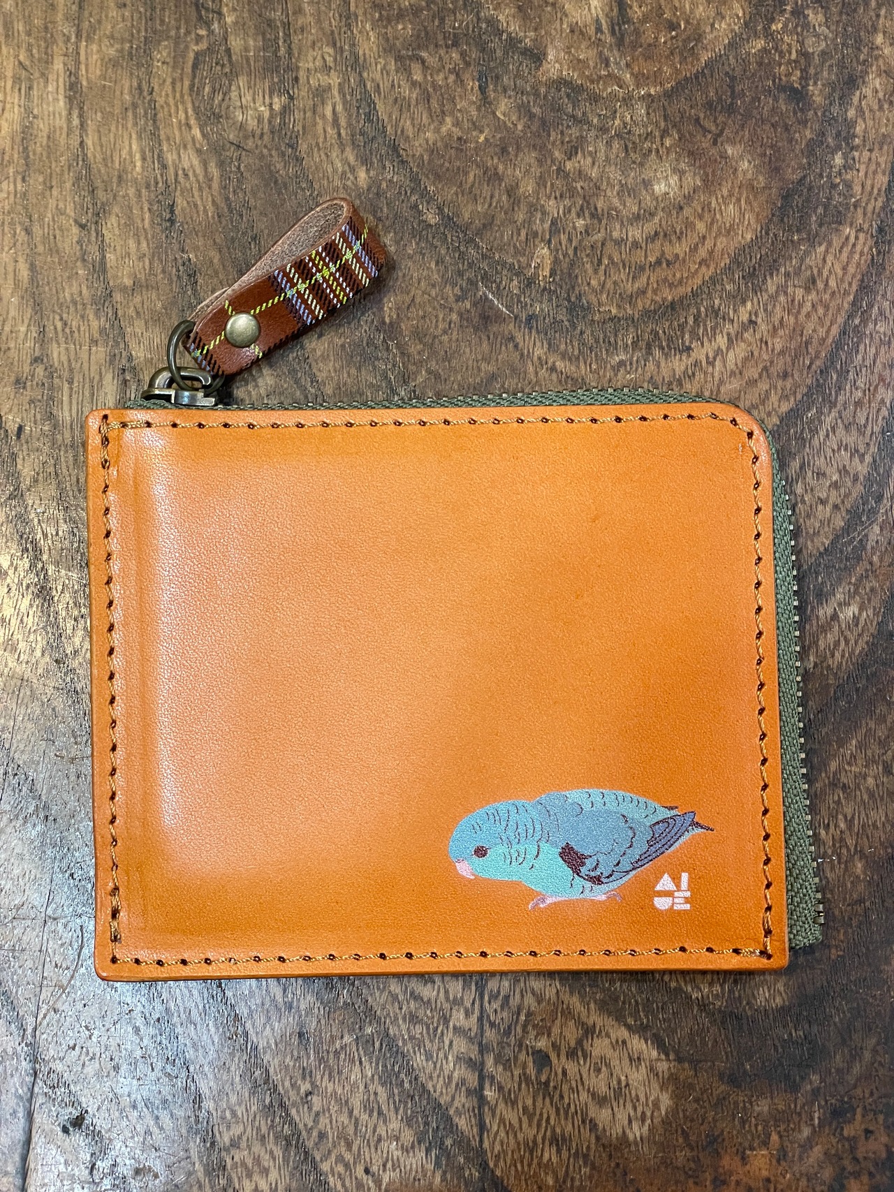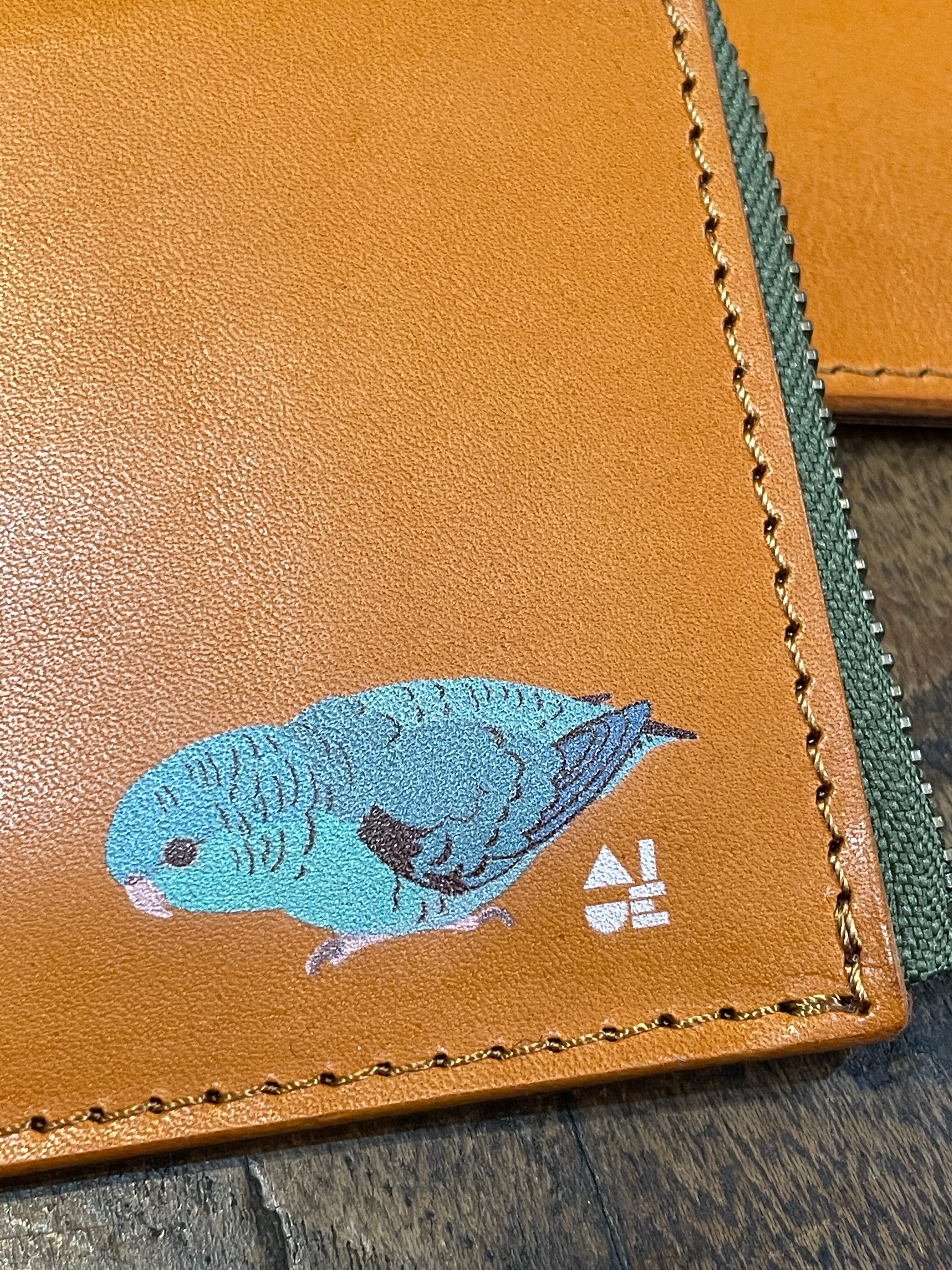 どうぞ可愛いイラストと同時に本革の経年変化をお愉しみください。