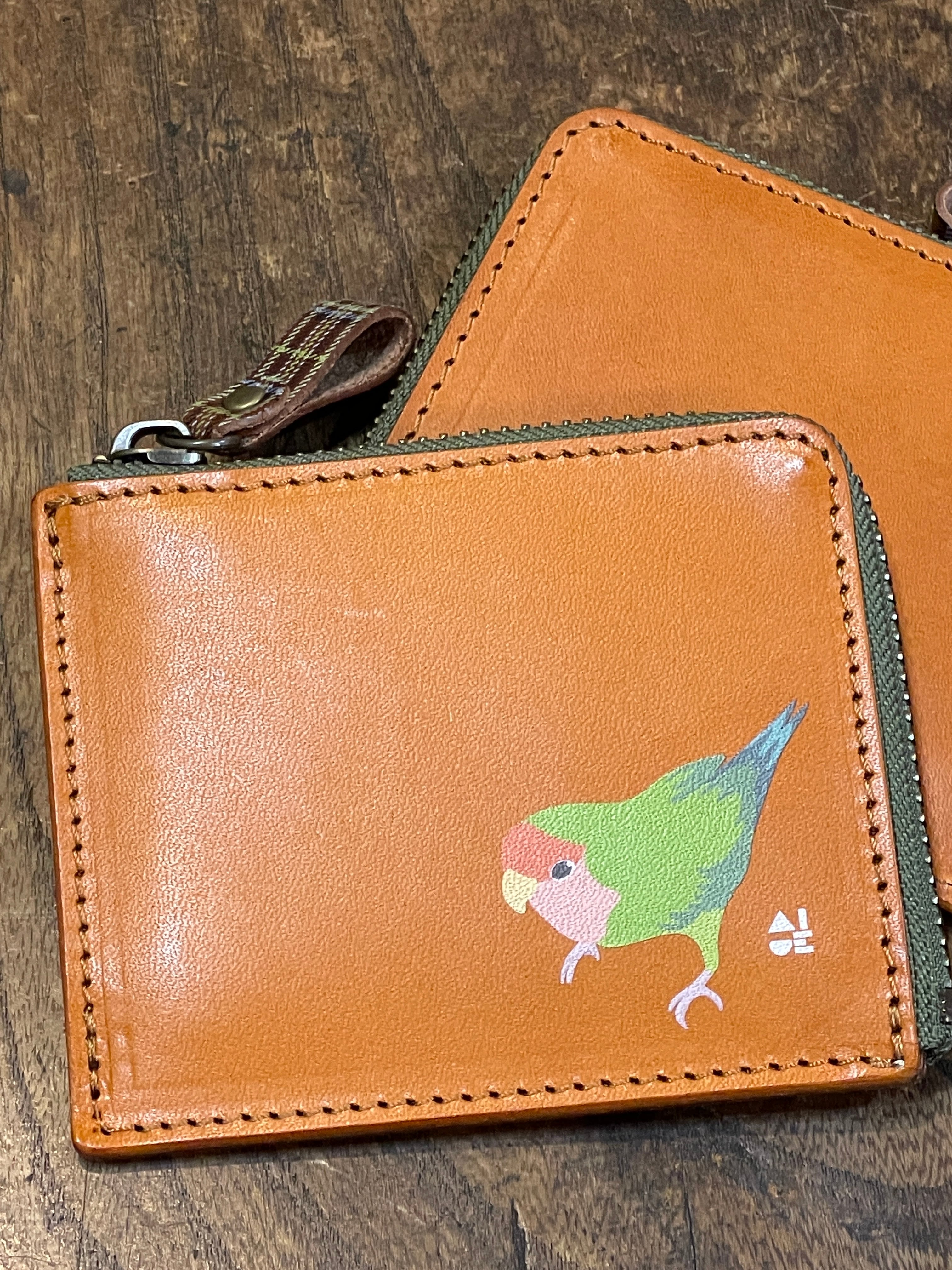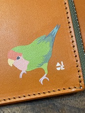 どうぞ可愛いイラストと同時に本革の経年変化をお愉しみください。