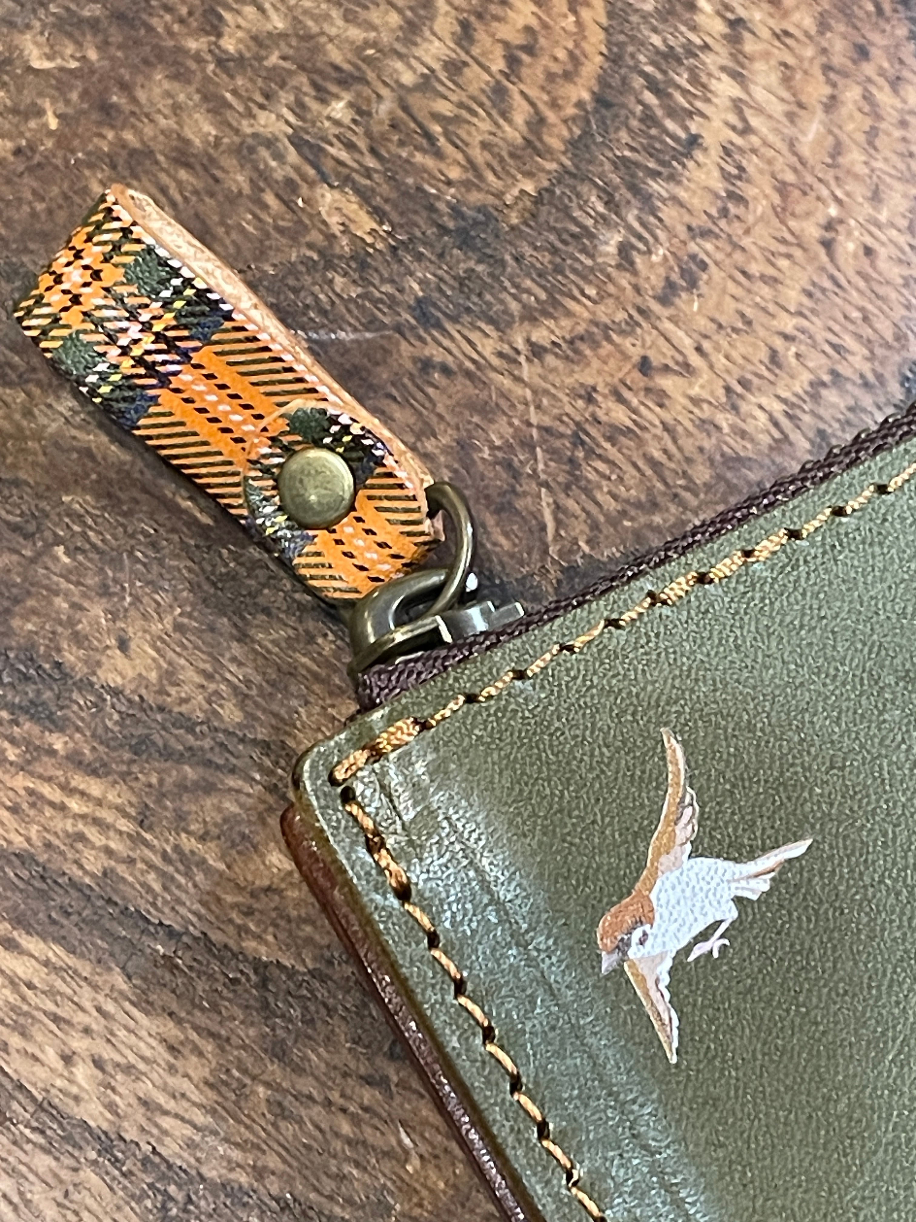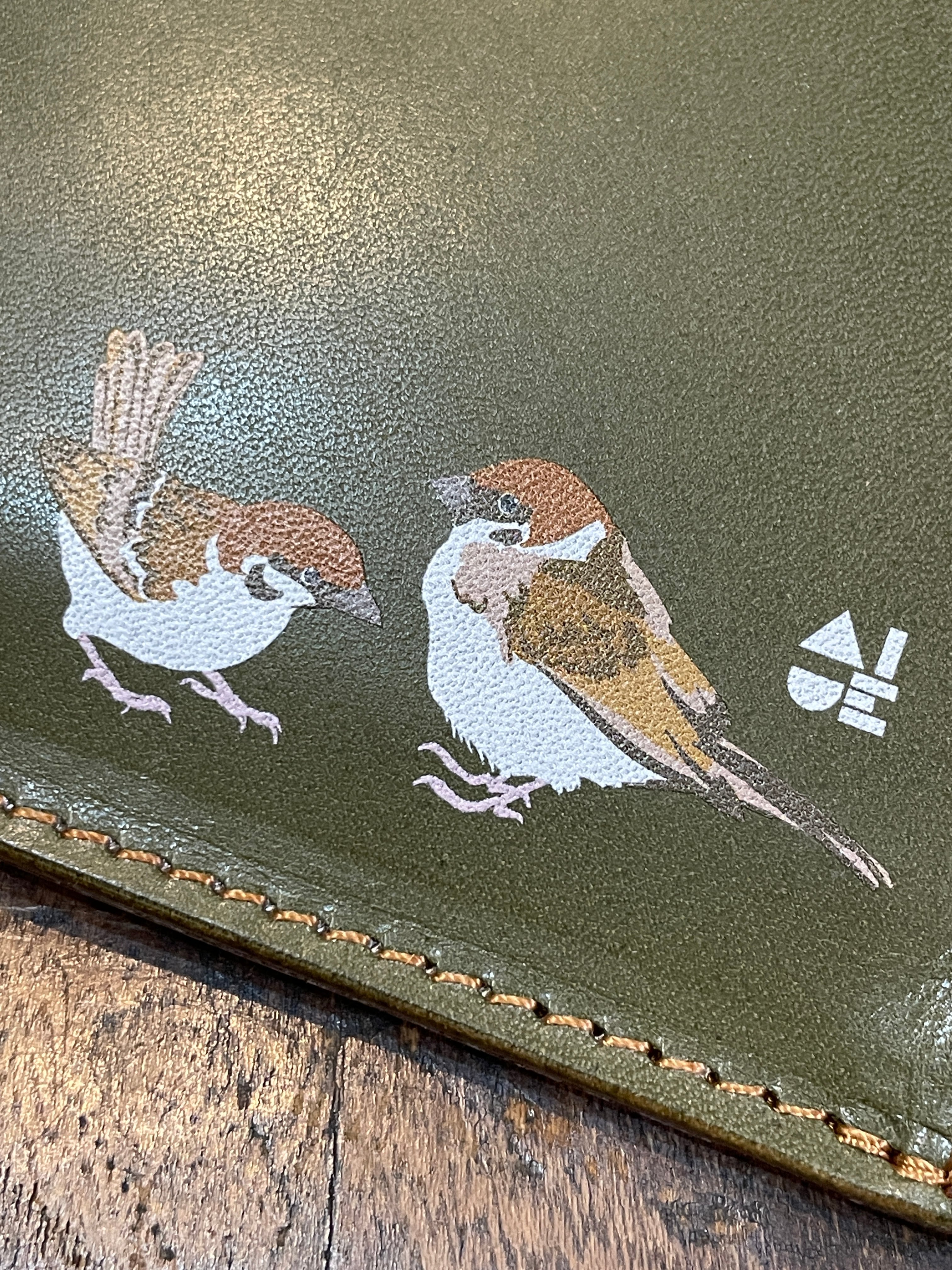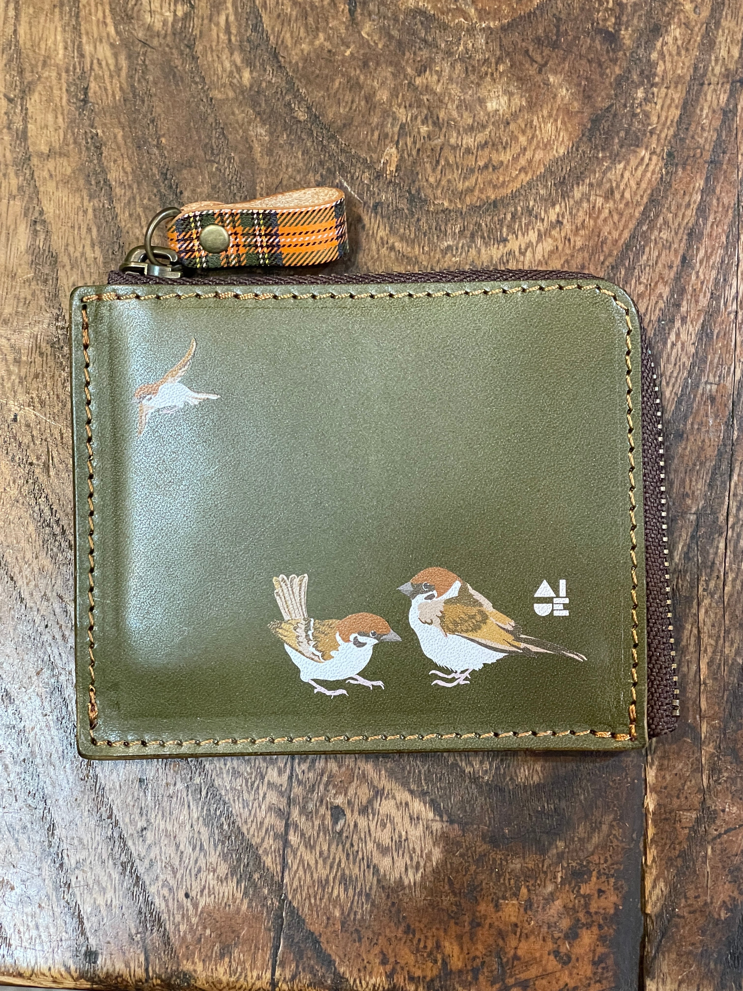 【送料無料】 L字ファスナー財布 グリーン スズメ  財布 すずめ 雀 栃木レザー