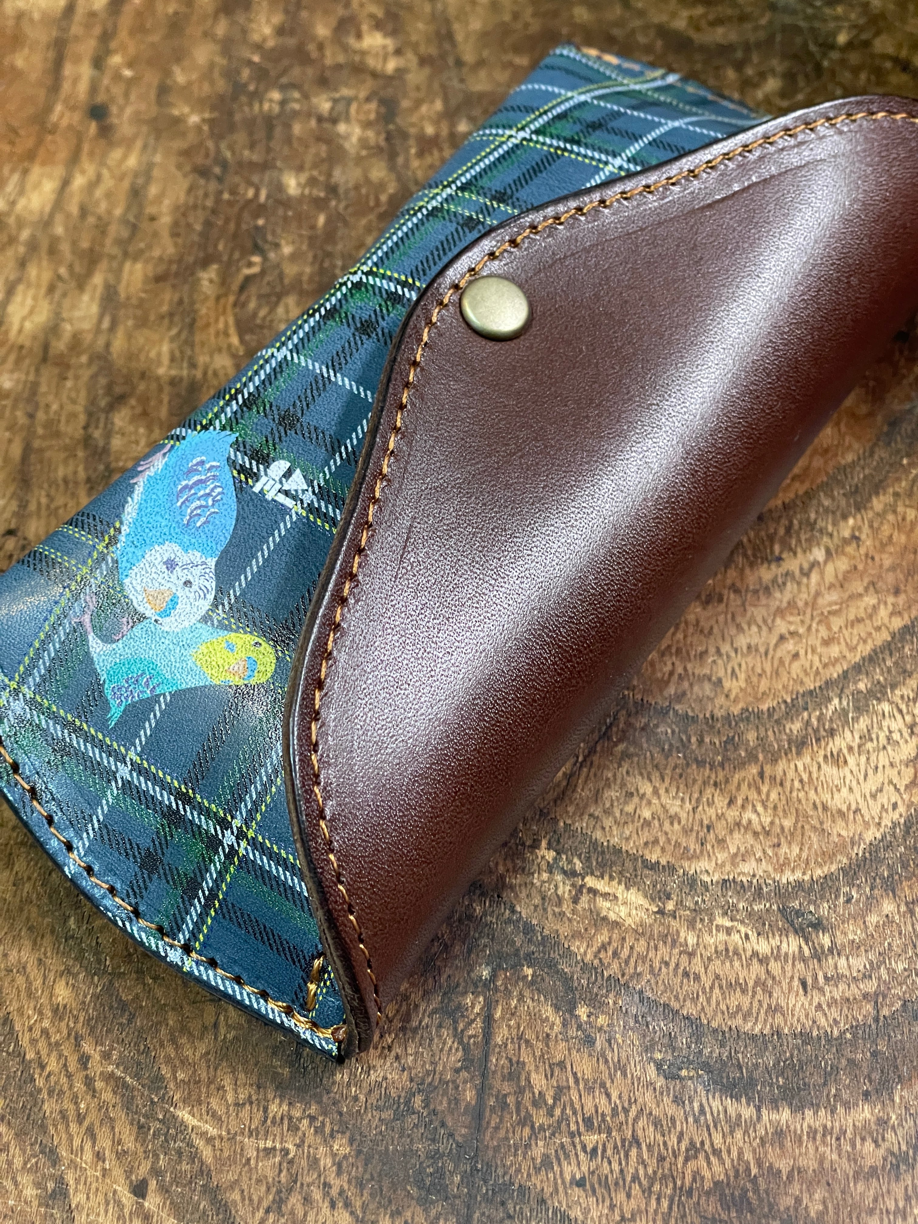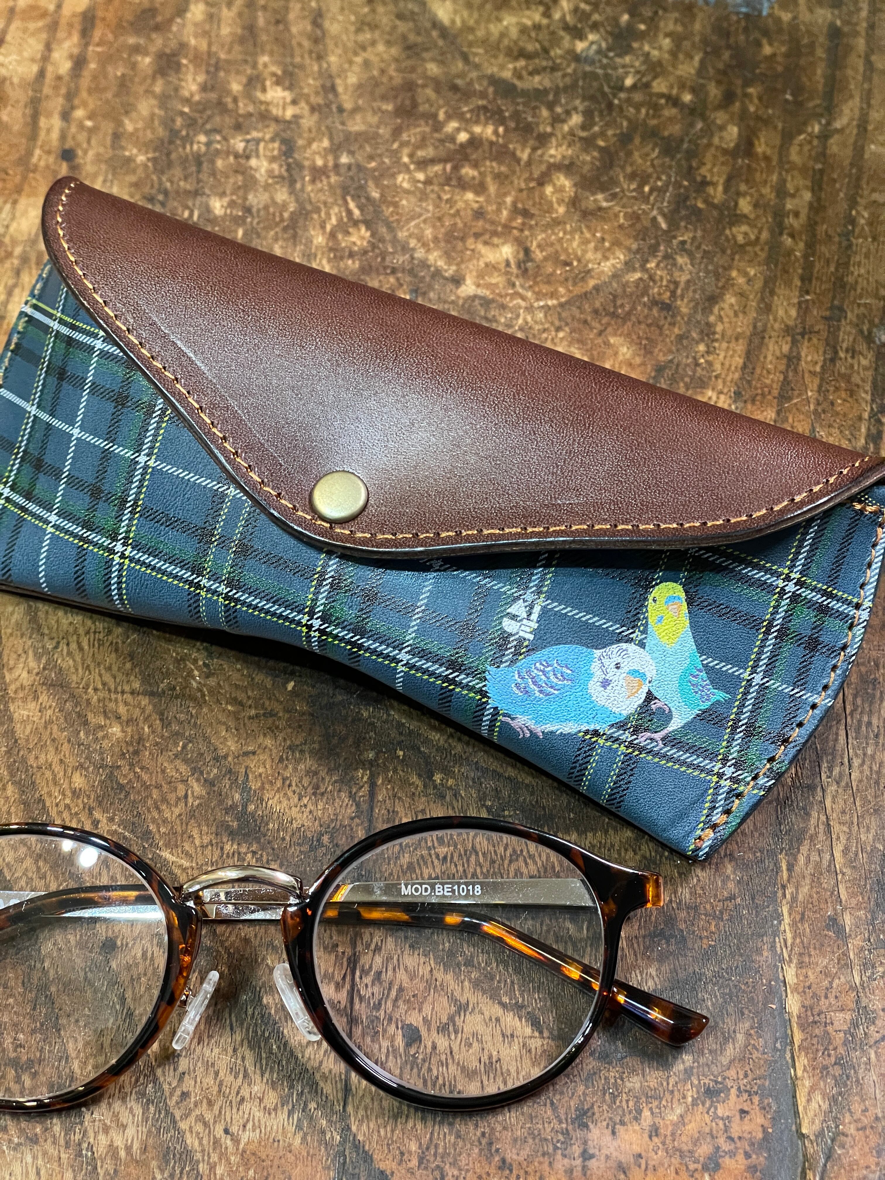 【送料無料】メガネケース セキセイインコ ノーマル レインボー ネイビー タータンチェック 栃木レザー