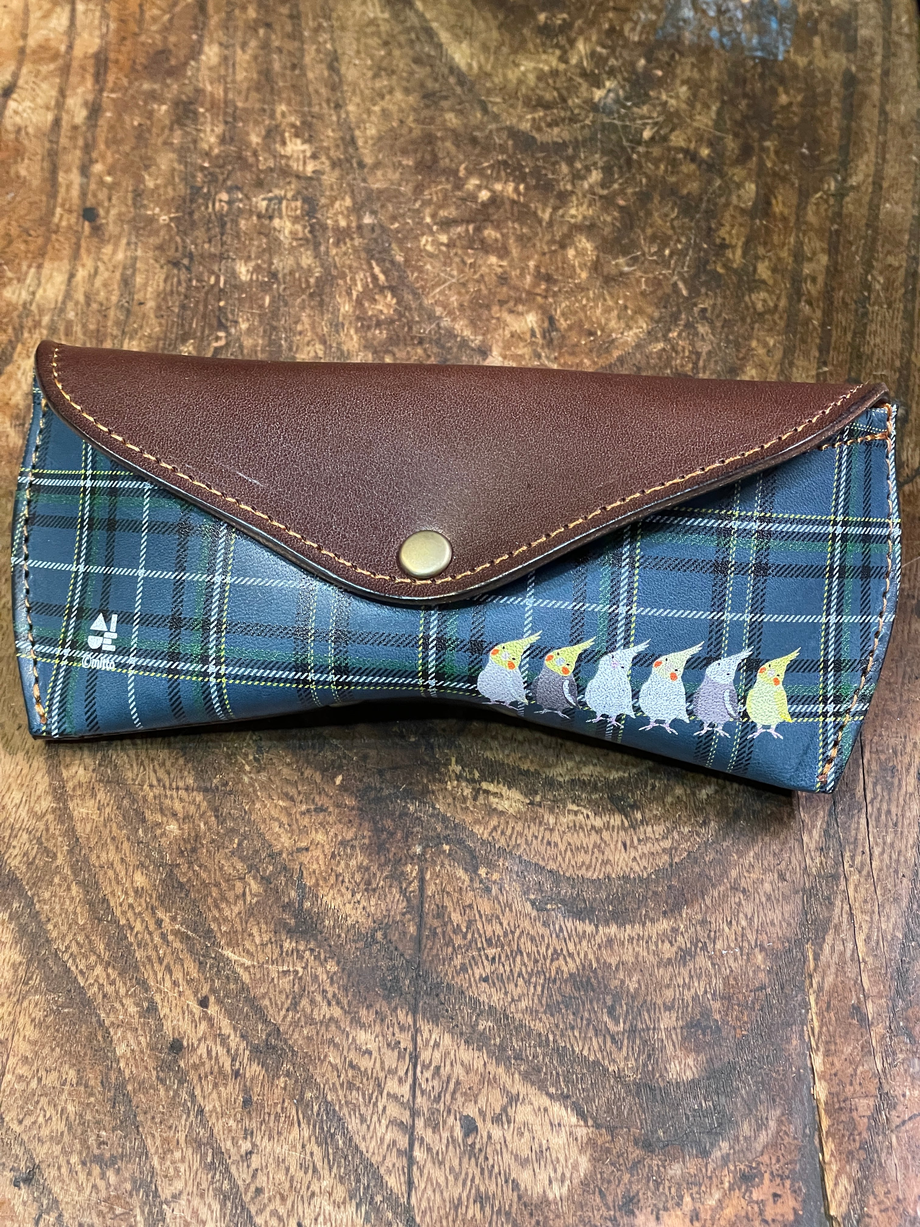 【送料無料】メガネケース オカメインコ ぽわん シリーズ ネイビー タータンチェック 栃木レザー